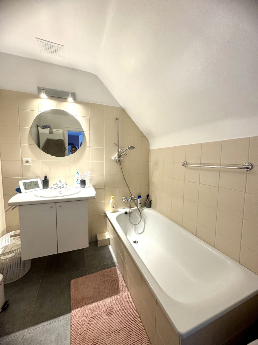 Victoire-Junot offers a 4-bedroom house ideally located, offering quick access to the Ring Road and the E19 motorway, close to Uccle Calvoet train station and the Velocity center. European schools and the Lycée Français, shops, the Globe shopping center, sports clubs, and Wolvendael Park (500 m) are all within walking distance or within a few minutes. This beautiful, recently built house (built in 2003) offers 205 m² of living space on a plot of 2 ares 45 ca. Perfectly maintained, it benefits from excellent natural light and a south-facing garden. On the ground floor, you will find an entrance hall with a cloakroom and WC, a garage (16.69 m²) with a laundry room, and a summer lounge or office (21 m²) with access to the fenced rear garden. The first floor comprises a spacious living and dining room (35.91 m²) and a fully equipped kitchen (15 m²). On the second floor, two bedrooms (18 m² and 16 m²) with built-in wardrobes share a bathroom. The third floor offers a large master bedroom (27 m²) with a wardrobe and private bathroom. At the front, a clinker-tiled parking space and a small garden complete the property. The house is equipped with a new gas condensing boiler and an alarm system. PEB: D
