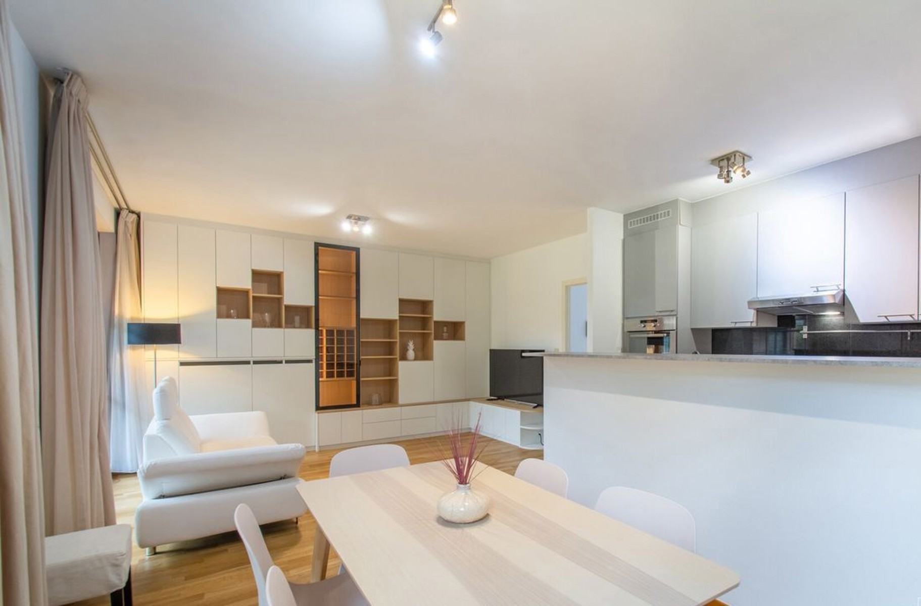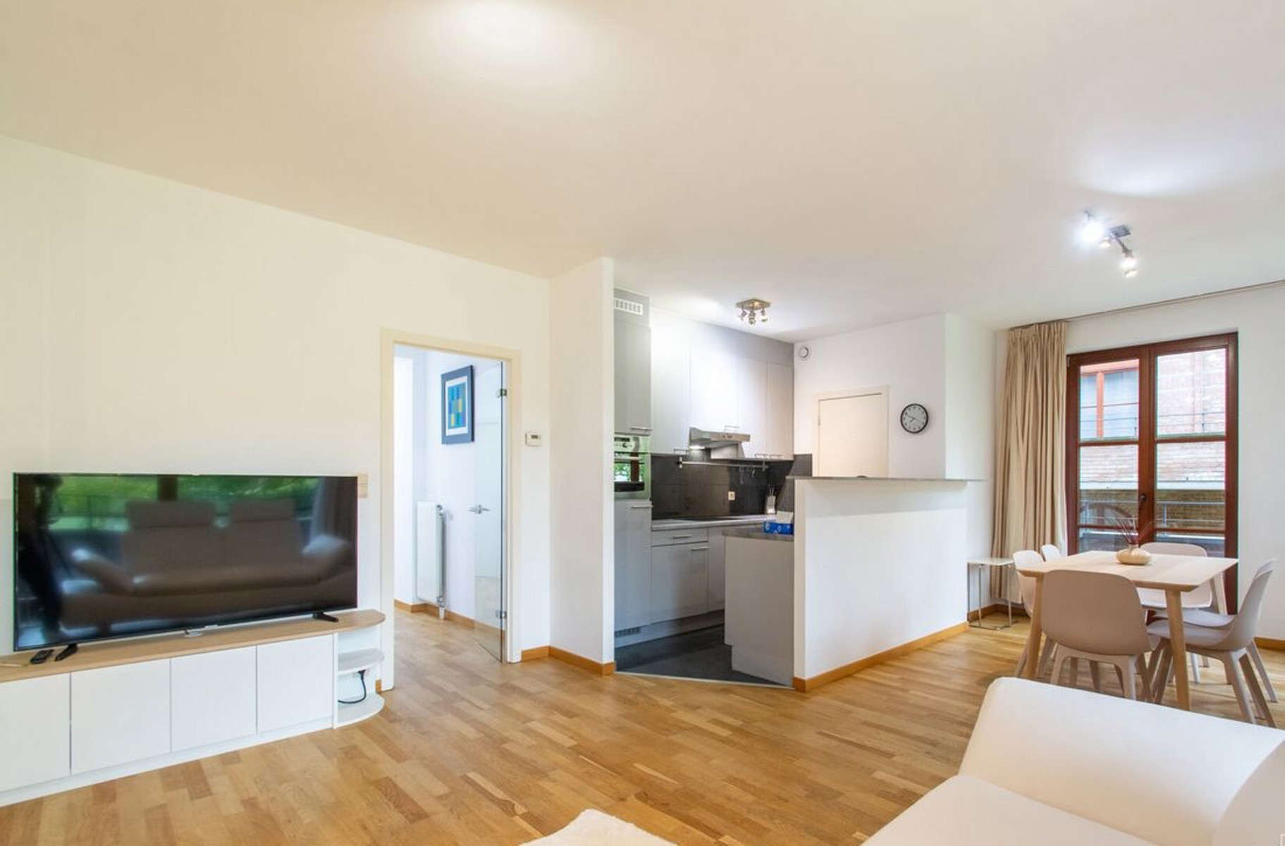 Victoire Junot offers you an elegant furnished apartment located in the prestigious Queens Park development, offering a green and perfectly connected living environment. Ideally located a stone's throw from the E411, shops, and public transportation, it faces Val Duchesse and is in close proximity to Woluwe Park, in a peaceful and sought-after environment. Located on the first floor of a recent (2008) five-story building, this bright apartment of approximately 1,140 square feet consists of a large entrance hall, a cozy living room extended by two superb terraces and two balconies, a modern fully equipped kitchen, a laundry room with washer and dryer, three bedrooms, including a master suite with private bathroom, as well as a second bathroom and two separate toilets. Comfort is guaranteed thanks to double glazing and the building's excellent insulation. A parking space in the building is available as an option for €110/month. The monthly charges of €275 cover common areas, cold water, hot water, and heating. To be discovered at Victoire - Junot - www.victoire.be - Tel: 02 375 10 00