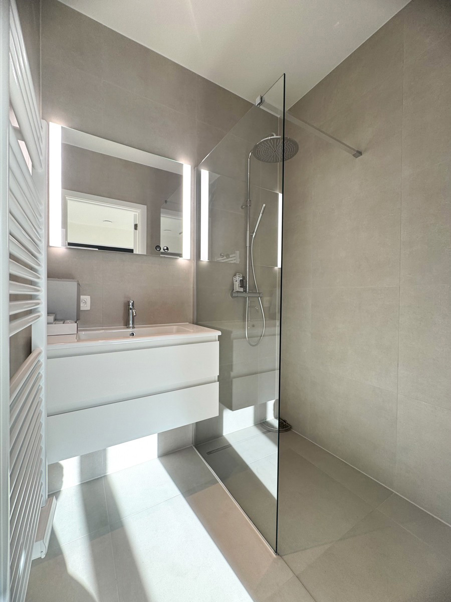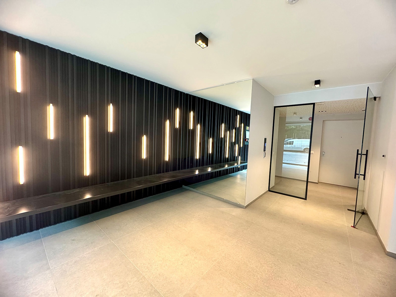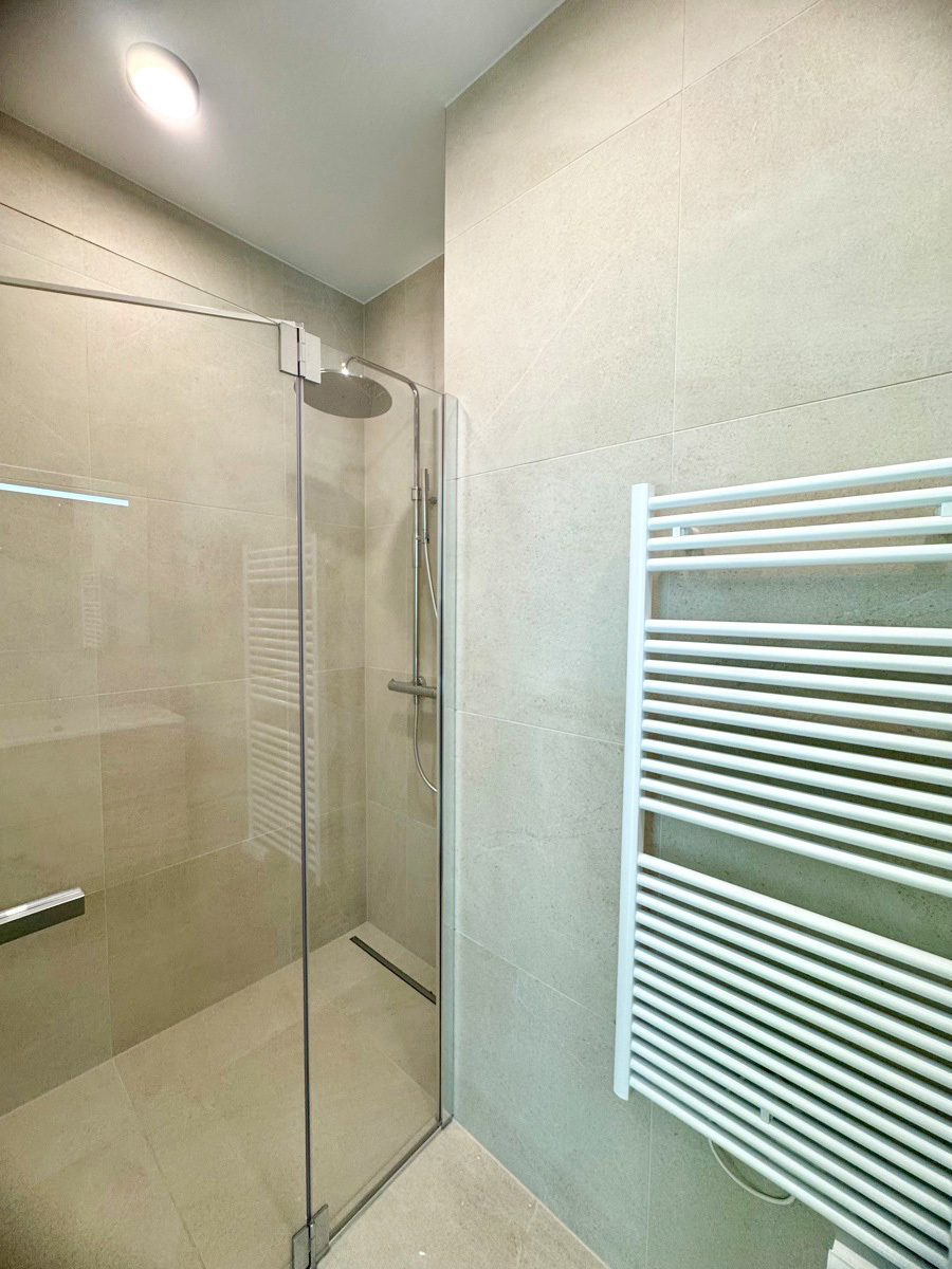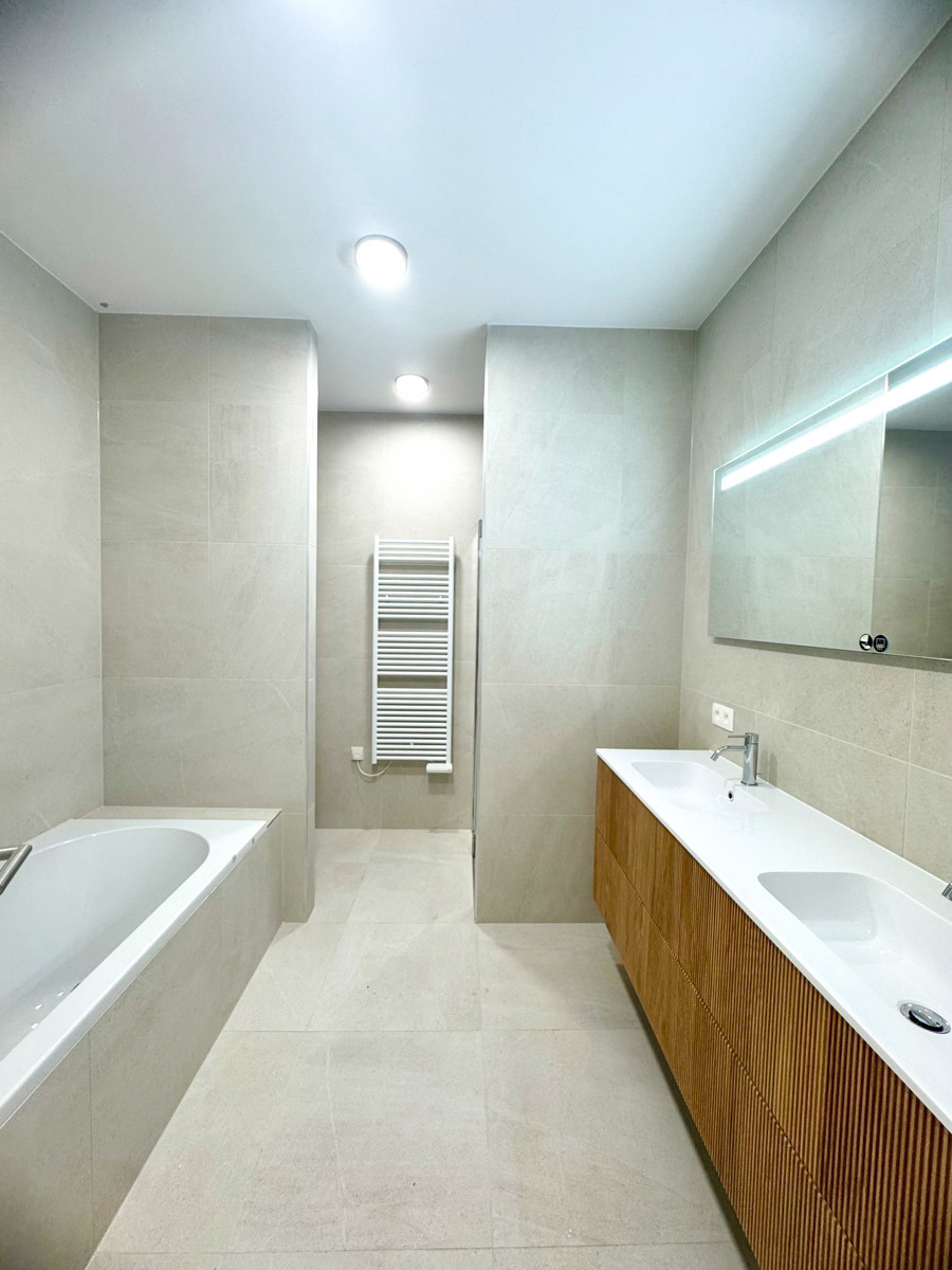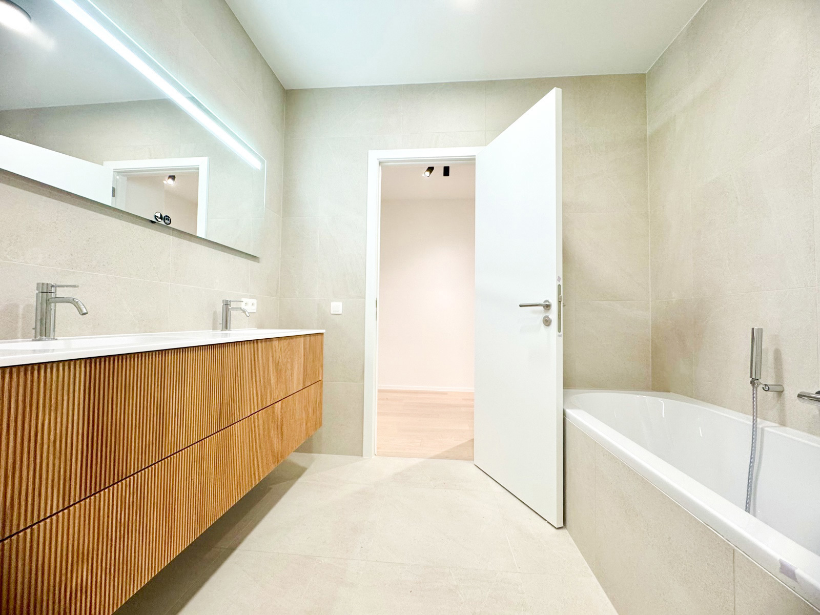 ictoire-Junot presents this beautiful 200 m² apartment with two terraces in the "METROPOLITAN" project, located opposite the splendid gardens of La Cambre Abbey. Situated on the 6th floor with a front balcony and magnificent views of Brussels, this apartment comprises a very spacious 63.4 m² living room with a fully equipped open-plan kitchen, a dining area, and a second lounge or office space of 18 m². The entrance hall, with a small cloakroom and access to the laundry room, leads to the private area at the back. The master bedroom with a dressing room (17.4 m²) features a large bathroom (with bath, shower, double sink, and separate toilet). The two other bedrooms (14 m² and 11 m²) each have an en-suite shower room (with single sink and shower). All three bedrooms have access to the south-facing and quiet terrace. A separate toilet, a storage room, and a technical room complete this splendid apartment. Features include communal heating (latest generation heat pump), solar panels, triple glazing, and a rainwater harvesting system. Intermediate energy performance rating A. For your well-being, the project offers a yoga and sauna area in the basement, perfect for relaxing, as well as a bicycle storage area on the ground floor. A cellar and a mandatory parking space with a charging station are also included (+ €150).