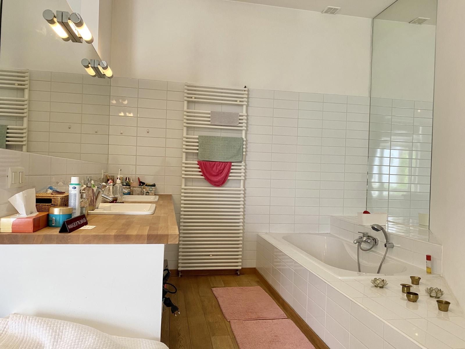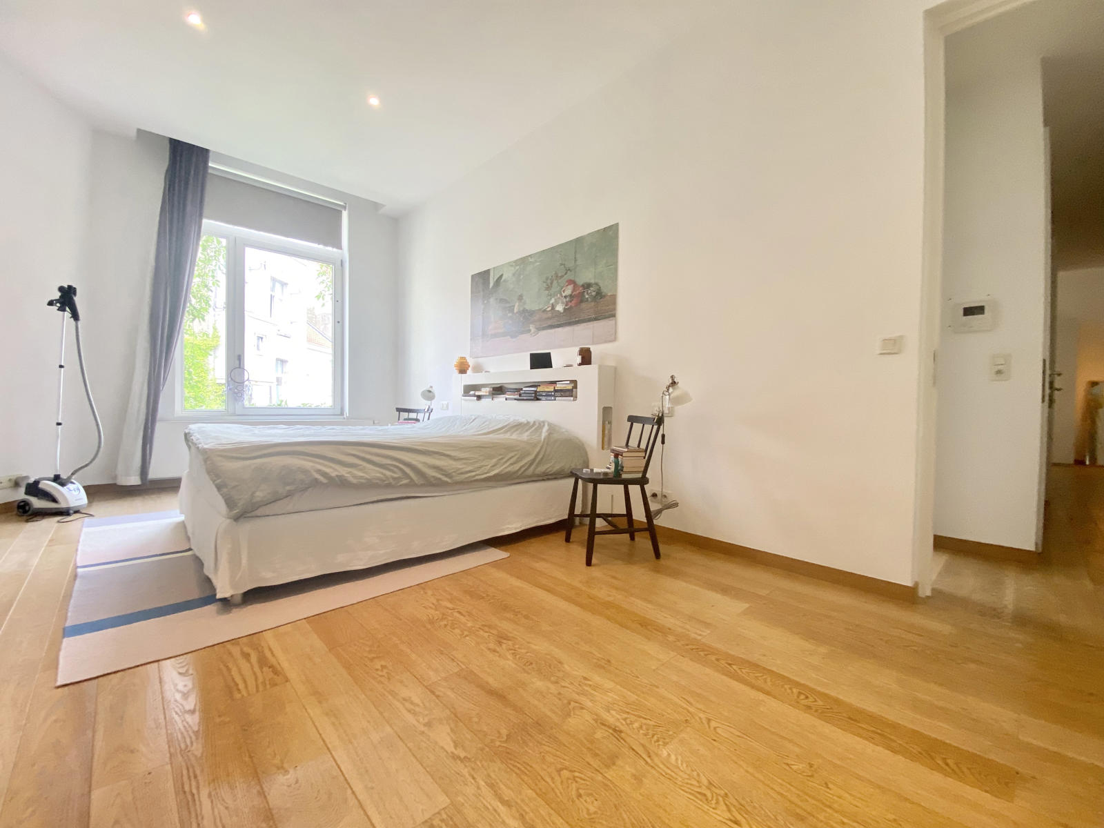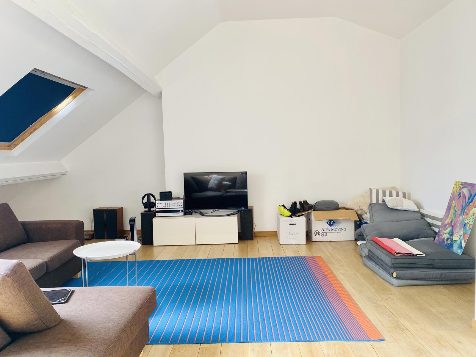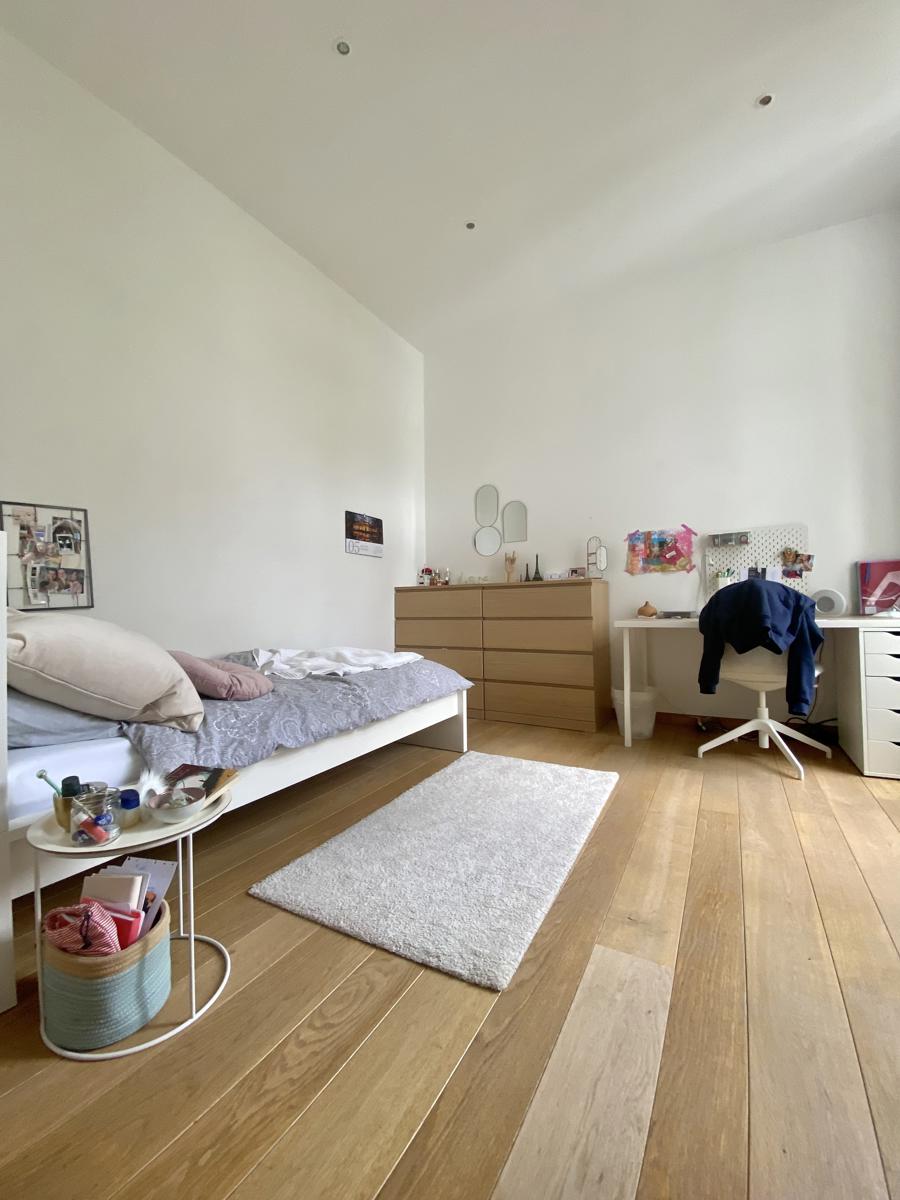 Victoire-Junot Presents : Saint-Gilles, in a mansion built in 1928, duplex apartment of 250 m² living space, located on the 2nd&3rd floor, completely renovated, including living room, open fire, parquet floor, TV room or library, super-equipped Smeg kitchen, separate laundry room, 3 bedrooms +office, bathroom, shower room, teak terrace (lighted) and bamboo plantation, embedded spotlights, double glazing everywhere, armored door, alarm, videophone, parking space : 150 euros, cellar