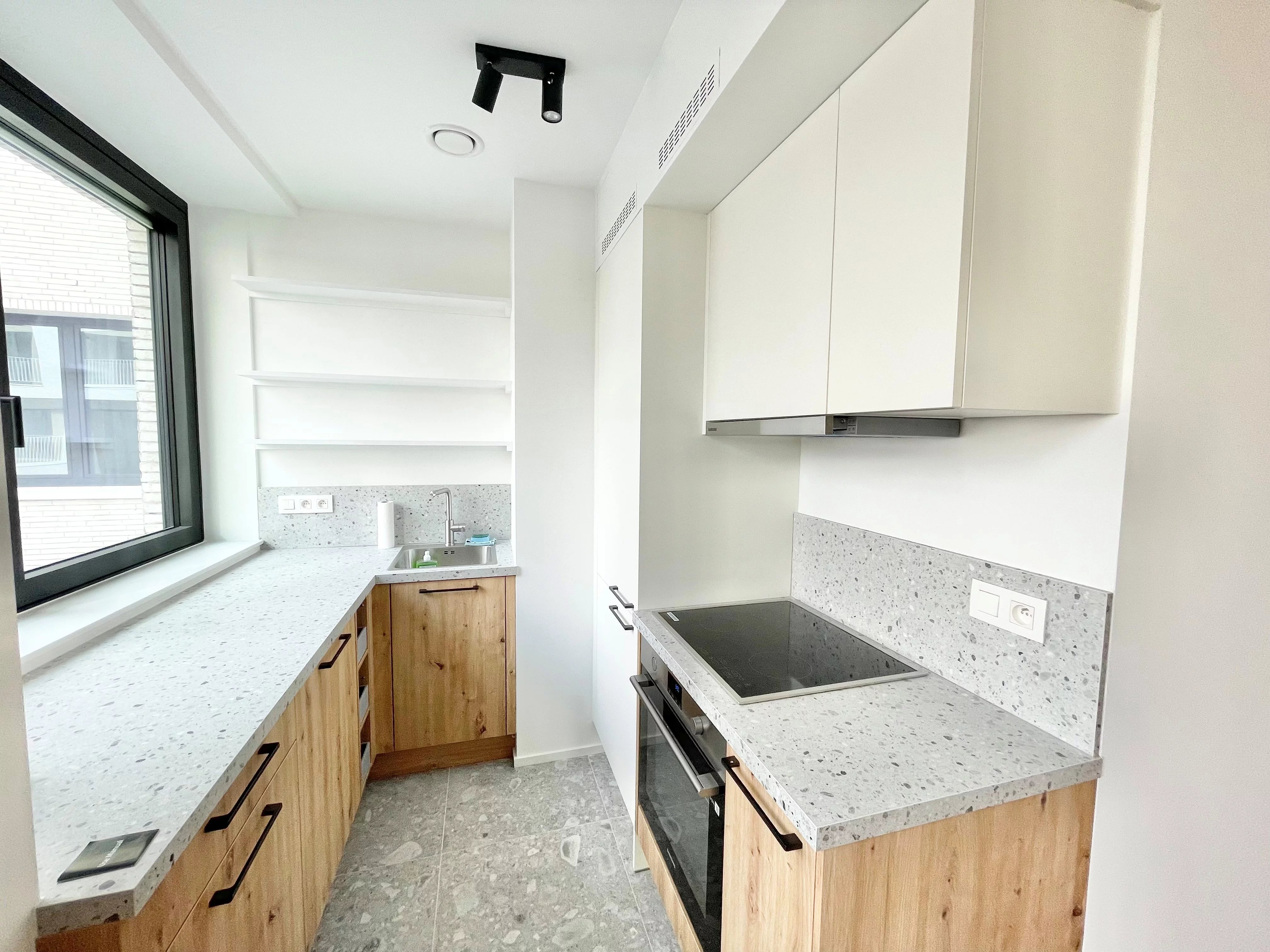 Well presented by Alexandra Dewitte Tel: 0473/84.61.61 or alexandra.dewitte@victoire.be Victoire Junot is proud to present this magnificent new studio apartment in "The W" project. With a surface area of 40m² offering an unobstructed view of the leafy driveway leading to the apartments. Located on the 1ᵉ floor, the apartment comprises an entrance hall, a spacious living room with hyper-equipped open kitchen, a shower room with toilet, a laundry room and a cellar. Premium finishes: solid parquet flooring throughout the apartment and high-quality kitchen countertops. The property is equipped with gas heating and a bicycle and stroller room. Excellent PEB B+ To discover at Victoire - Junot - www.victoire.be - Tel : 02 375 10 00