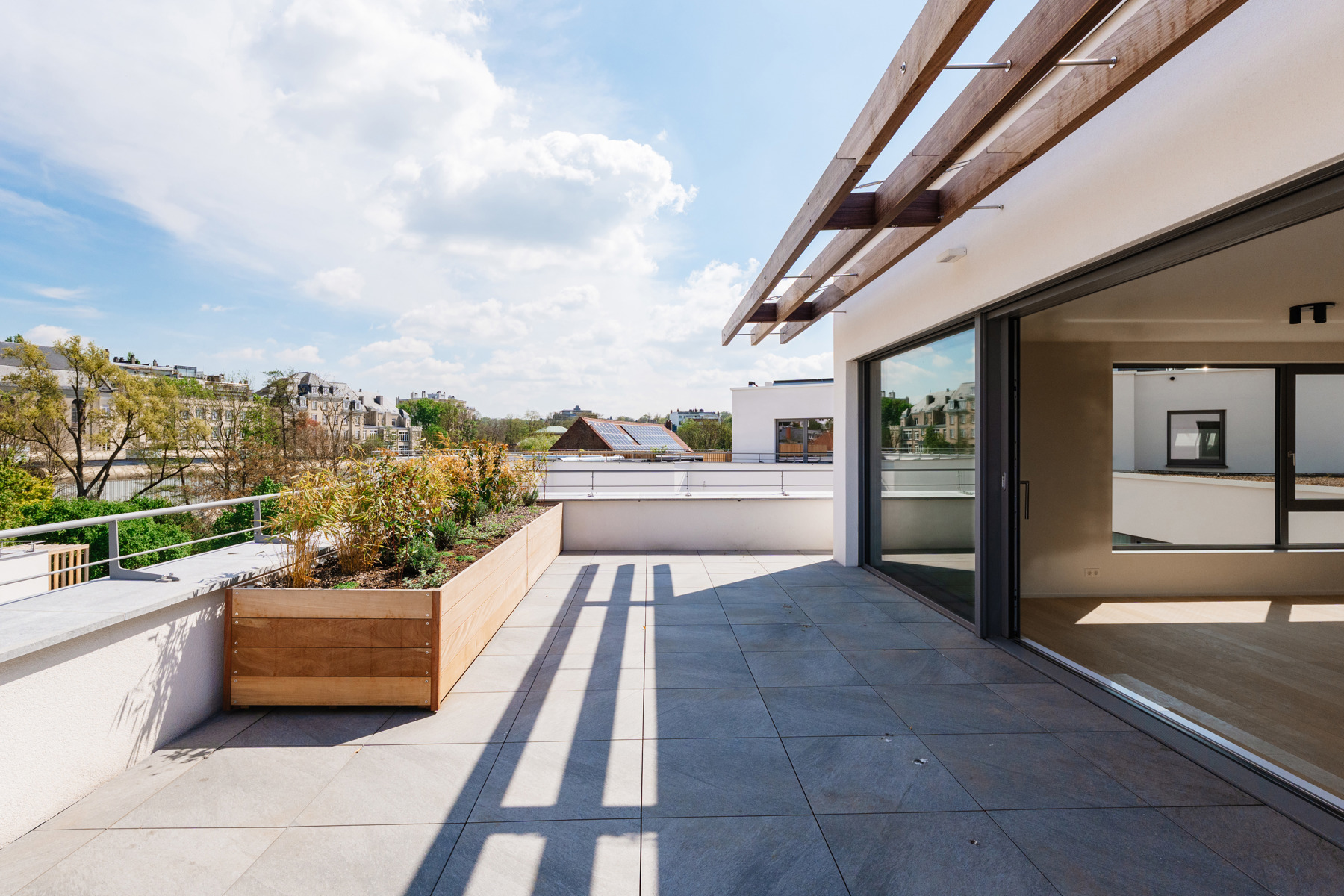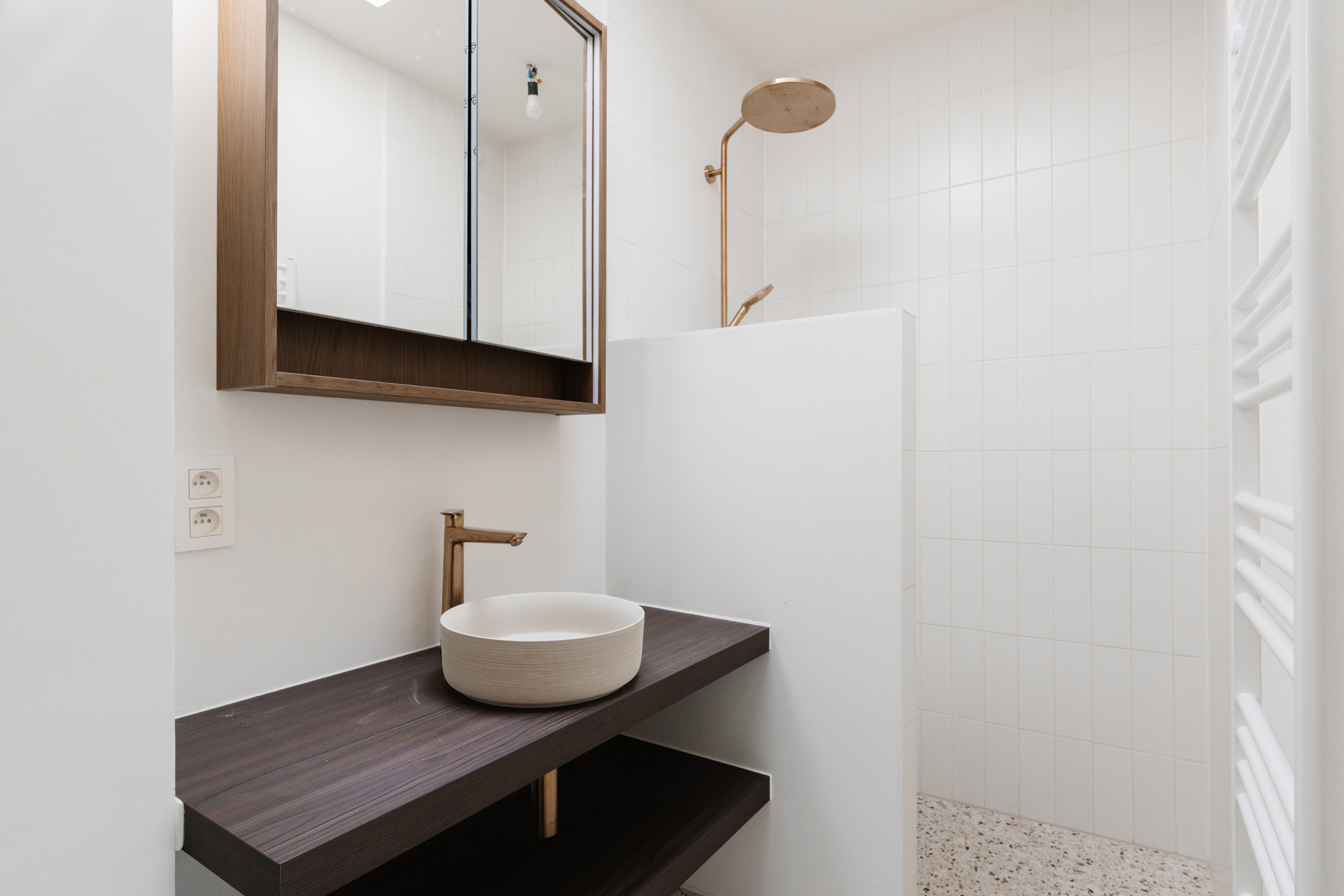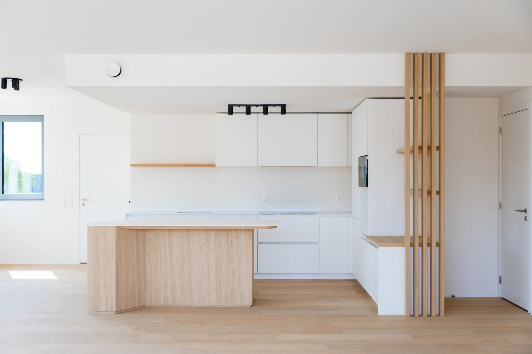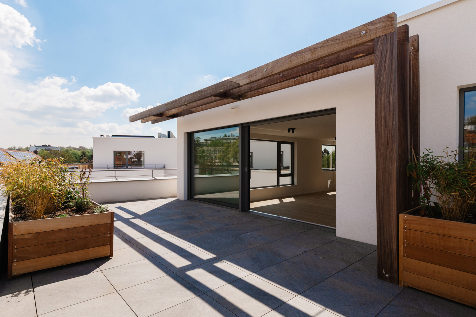 VICTOIRE Junot is pleased to present this splendid penthouse, spacious, bright, and uniquely designed, pleasantly overlooking the Carré Coghen development. Ideally located in the heart of Uccle, in a quiet yet urban environment, this property benefits from a beautiful inner garden and is within immediate reach of a wide range of urban amenities. The apartment is laid out as follows: A beautiful entrance hall, with space for a cloakroom and guest toilet, opens onto a large living area featuring a fully equipped open-plan kitchen, a dining area, and a living room. A lovely terrace, extended by a green roof, beautifully enhances this living space. The night area includes two bedrooms, one of which has an en-suite bathroom (with bathtub, washbasin, and toilet), as well as a second shower room with a walk-in shower and a washbasin. Bikestorage + basement included. 2 compulsory parking spaces at extra cost ( + 2 x €40,000 ) Sale subject to 21% VAT – Possibility of reduced 6% VAT, subject to conditions.