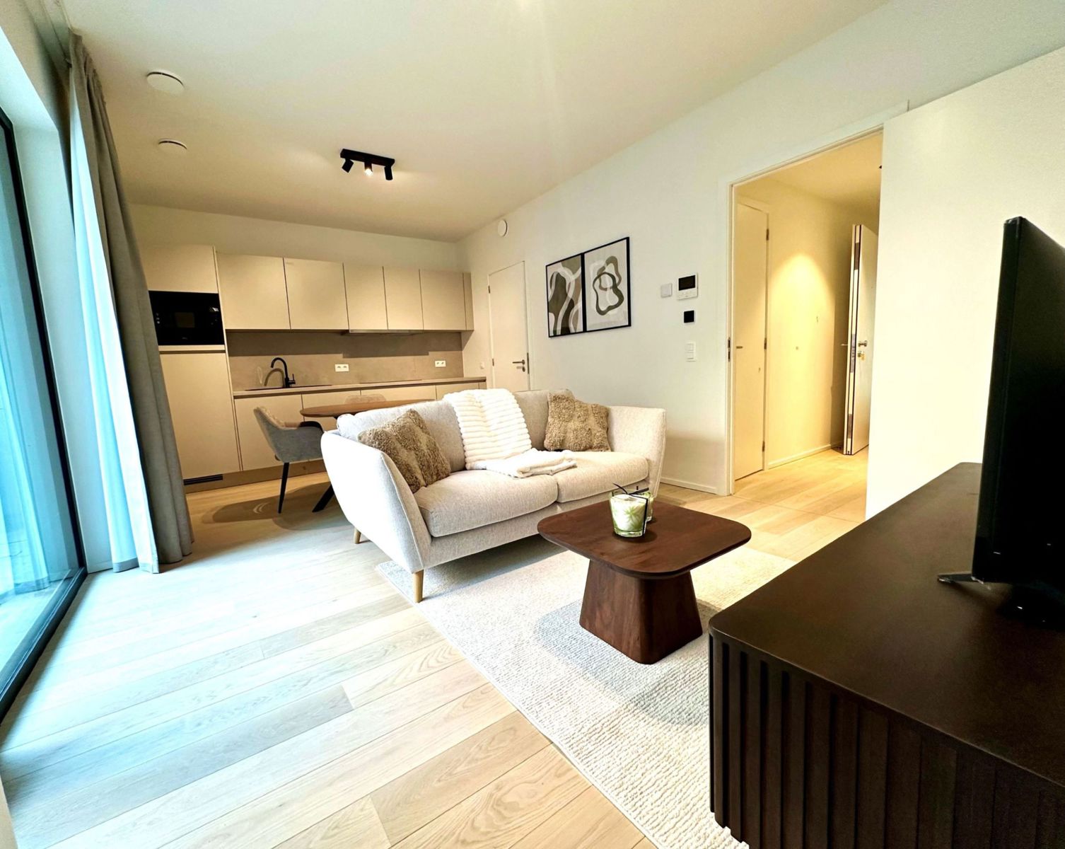 Victoire-Junot invites you to discover this beautiful 56,8 sqm² FURNISHED STUDIO Fwith large terraces in the “METROPOLITAN” project, located opposite the splendid gardens of the Abbey of La Cambre. It is provided with curtain rails, curtains and lighting accessories. Located at the rear of the project, in the inner courtyard and the ground floor, it features a hall with checkroom, followed by a beautiful living room with a super-equipped, open-plan kitchen, and a separate sleeping corner opening onto the large, quiet terrace. This studio is completed by a large shower room (with a shower, and a single washbasin), a separate toilet, a storage area and a laundry/technical room. Designed with quality materials and equipment, each apartment guarantees optimum comfort (and sold furnished) while reducing the energy footprint with installations such as heatpumpsenergy, solar panels, triple glazing and a rainwater tank. Intermediate PEB A-. Sale of the land subject to 12.5% registration tax and of the buildings subject to 21% VAT. For your well-being, the project provides a yoga and sauna area on -1, perfect for relaxing. There will also be a bicycle storage area on the first floor. Cellars and parking spaces are also available at extra costs.