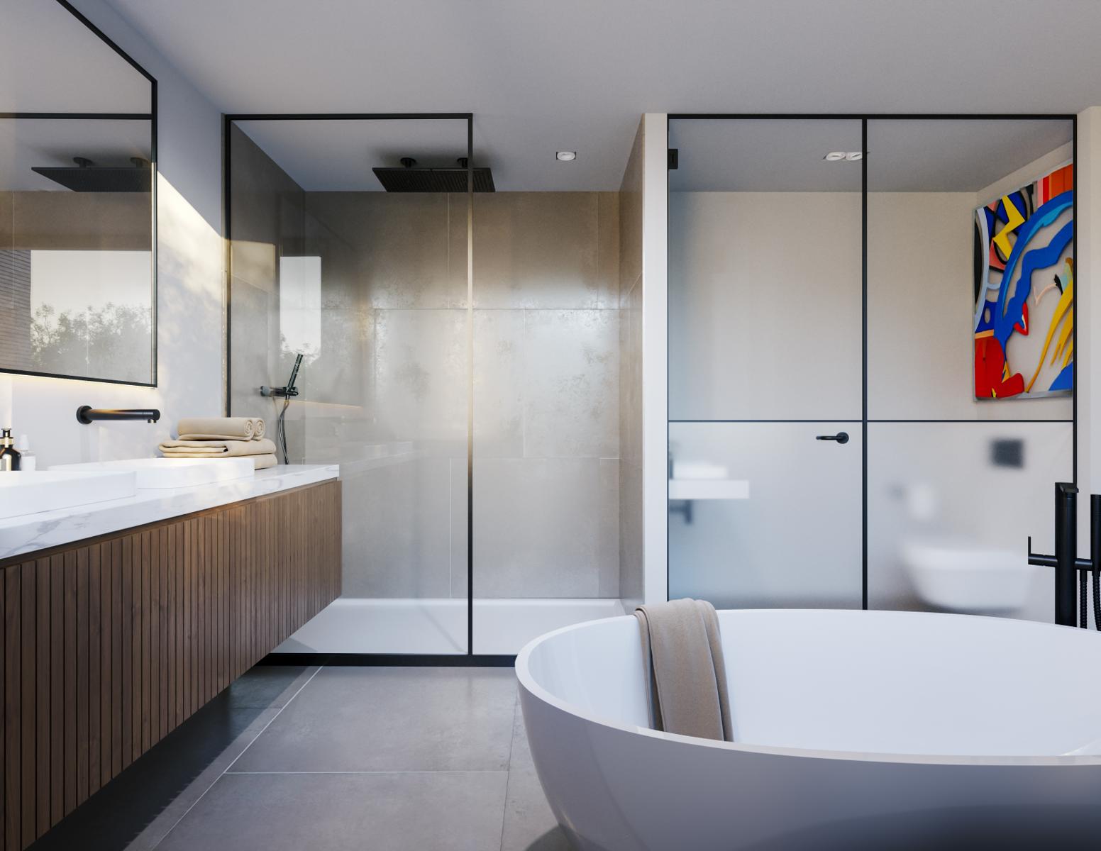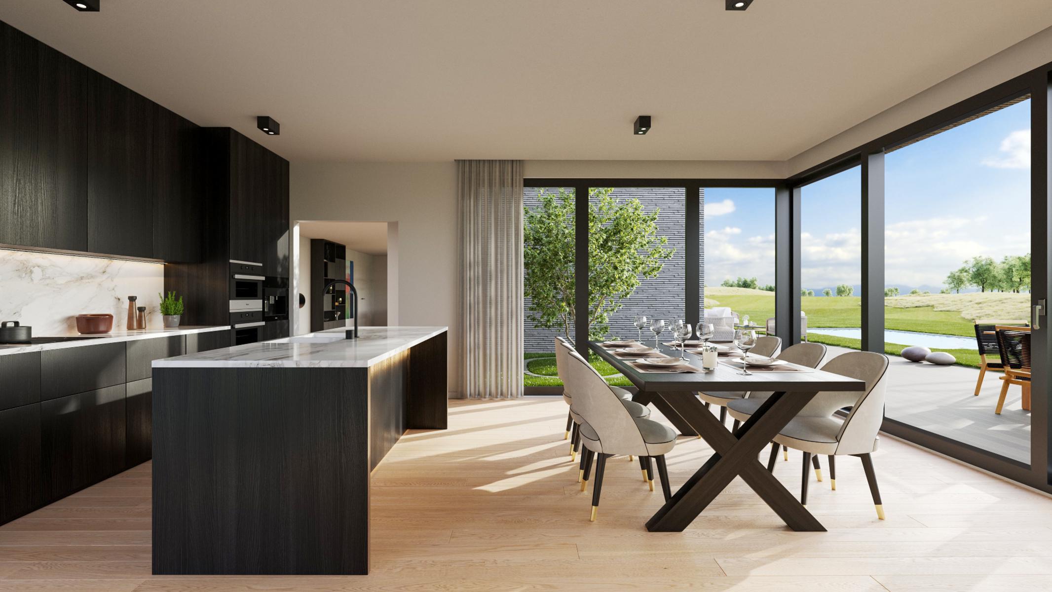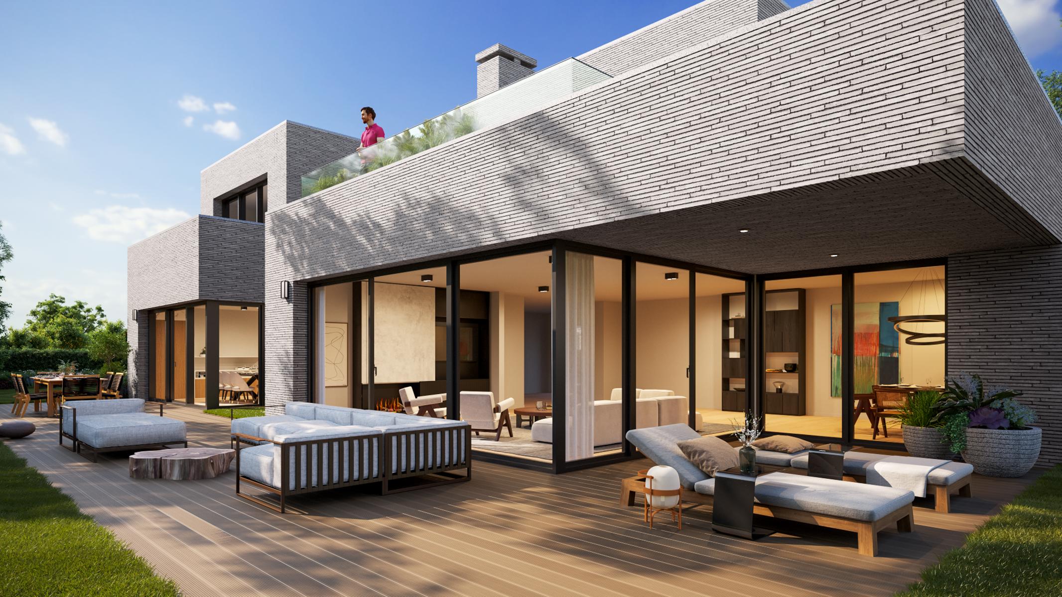 The last part of this project development on the magnificent STEREA site, has been launched. Victoire offers 3 villas style « CUBES » which are developed on 2 levels + the basement. The groundfloor welcomes a beautiful entrance hall, with checkroom, a guest toilet , an office and the staircase leading to the first floor. It opens on the front onto a green patio, then on one side towards the kitchen, the breakfast room and the pantry and on the other side towards the wide and luminous living spaces. The south-facing terraces extend the house nicely and offer an unobstructed view of the golf course, the green spaces and the ponds . The first floor includes 4 bedrooms. The master bedroom and a second one with bathrooms en suite, both have a direct access to separate back terraces. The two other bedrooms share a shower room. The basement welcomes 2 cellars and a large technical room. This faboulous project, nestled in nature, is designed to provide an excellent living environment full of serenety, with high quality architecture and sober and “green-minded” finishes. The "ideal heat" comfort throughout the seasons will be provided by the brand-new geothermal technology. The site, which extends over 80 ha, is located on the eastern side of Brussels, near Wezembeek-Oppem, the Tervuren park and international schools. Last but not least, the exceptional advantage is that you'll enjoy the immediate vicinity of the golf course “The National” and the future David Lloyd's fitness club. Stores and restaurants will complete the perfect convenience of this new complex guarantying well-being and individual and collective comfort adapted to nowadays' family or leisure lifestyle. Sale under VAT and registration. A visit is essential to feel the project. For more information, contact us at 02/375 1010 / new@victoire.be.