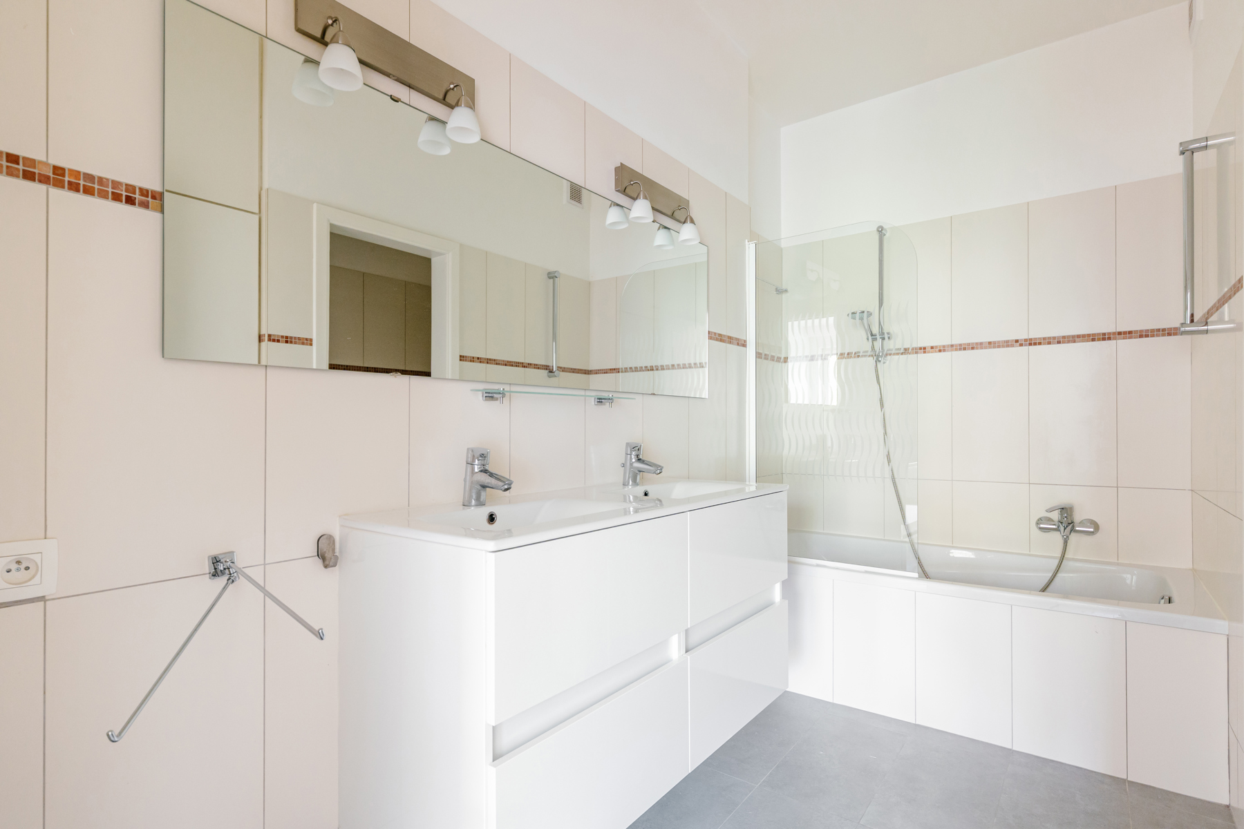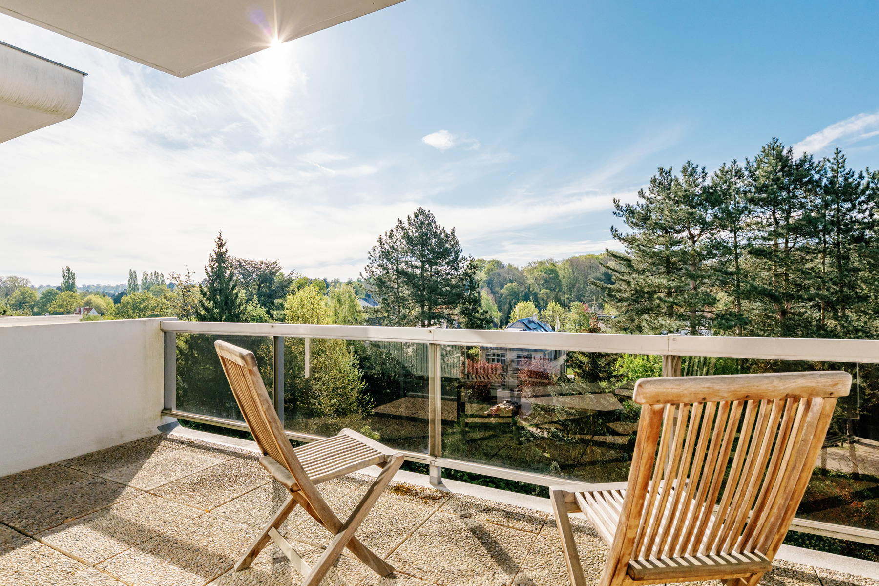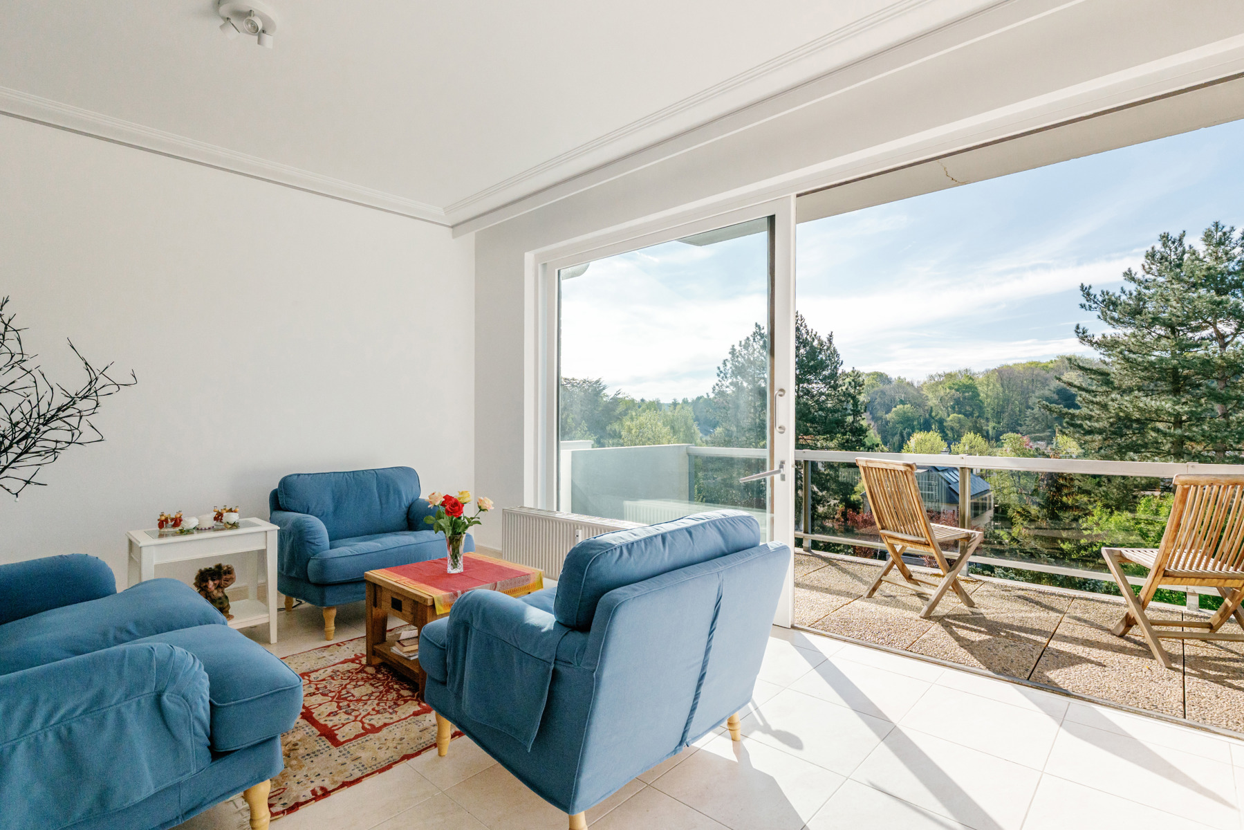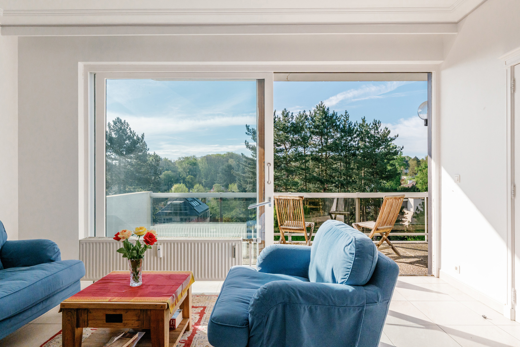 Nestled in greenery, this bright apartment offers a surface area of ±130m² + 2 terraces. Its convivial living room with open kitchen opens onto a large south-facing terrace. To the rear, two comfortable bedrooms, each with its own shower room, give access to a second terrace. A third bedroom (formerly the kitchen), with shower room, completes this property in perfect condition. Electricity compliant, PEB D, no private parking but easy parking in front of the building. The quiet, leafy surroundings make this apartment a rare and sought-after place to live. The apartment is legally a two-bedroom unit, but moving the kitchen has made it possible to create a third bedroom.