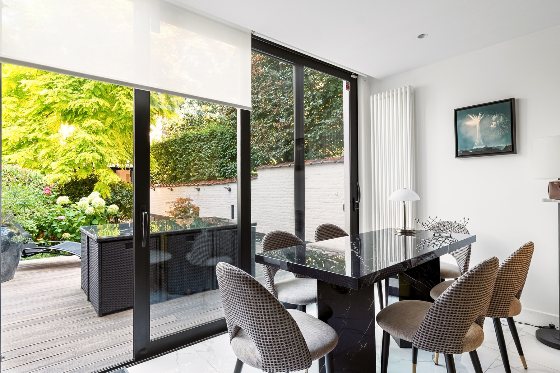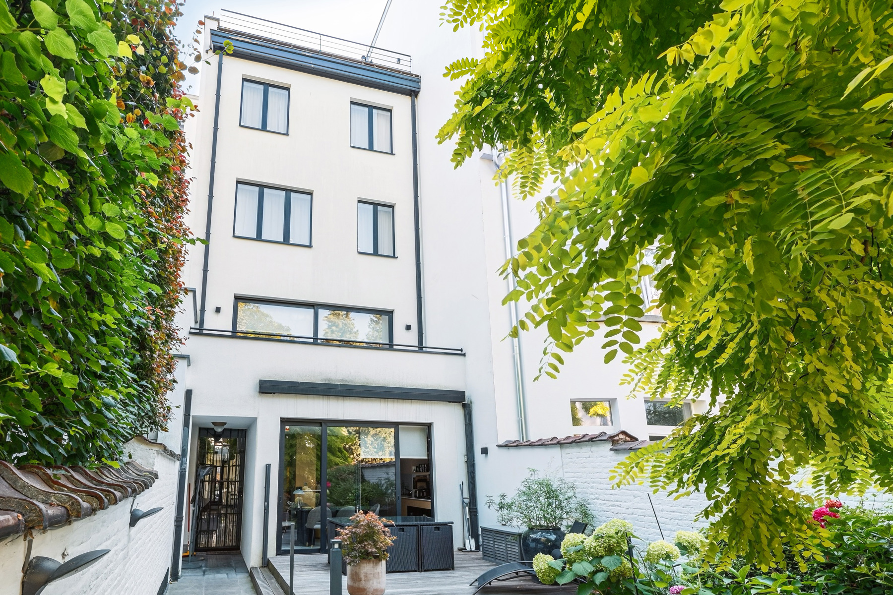 Victoire - Junot presents a truly exceptional mansion, built in 1926 and completely redesigned in 2018 with an elegant, timeless Art Deco spirit. Spread over five levels and serviced by an elevator, this unique property seamlessly blends historic charm with top-of-the-line amenities. From the entrance, a spacious hall, refined office, and kitchen opening onto a terrace set the tone. The landscaped garden leads to a separate 100 m² guest house — ideal for visitors, staff, or a private workspace. The first floor features three bright and generous reception rooms: a grand living room, a dining room with terrace, and a cosy TV lounge — perfect for entertaining. The upper floors host five luxurious suites (30–45 m²), each with en-suite bathroom, toilet, and custom dressing room. High-end features include a rooftop with bar and open views, multiple terraces, gas heating, double-flow ventilation, excellent insulation, noble materials (wood, marble, original terrazzo), skylights, full basement, water softener, and outdoor parking. A rare and versatile property (EPC: D), ideal as a prestigious family home or luxury guesthouse. Sale possible through share transfer. Registered in the cadastre of Forest.