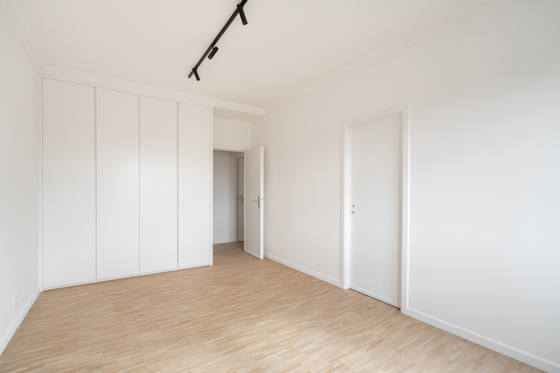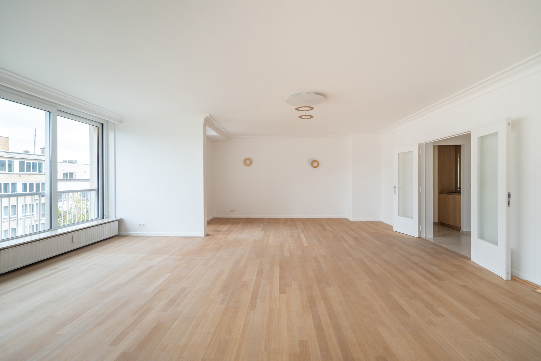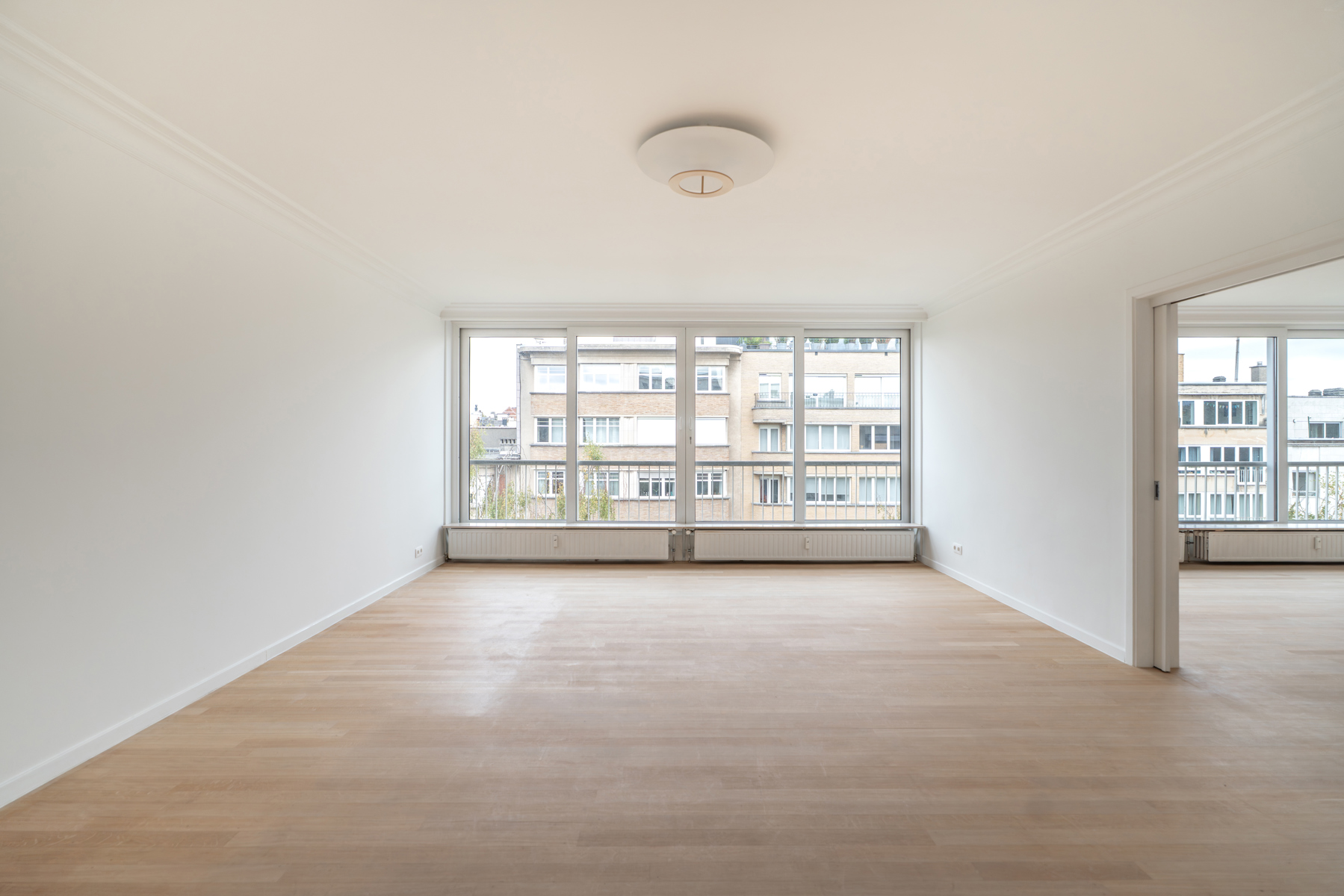 Ideally located in the prestigious Roosevelt district, just a few steps from the Bois de la Cambre, Victoire-Junot is delighted to present exclusively this superb, fully renovated reception apartment of ± 240 m², complemented by a staff room and two indoor parking spaces. The apartment is composed as follows: An elegant entrance hall with cloakroom and guest toilet, spacious en-suite reception rooms of approximately 70 m², a custom-made, fully equipped kitchen with ATAG appliances, extended by a pantry with bespoke cabinetry. The night hall leads to four beautiful bedrooms (± 14 m², 15 m², 15 m², and 20 m²), each fitted with custom-made wardrobes, as well as two bathrooms. A staff room on the ground floor, a cellar, and two indoor parking spaces complete this exceptional property. EPC: D