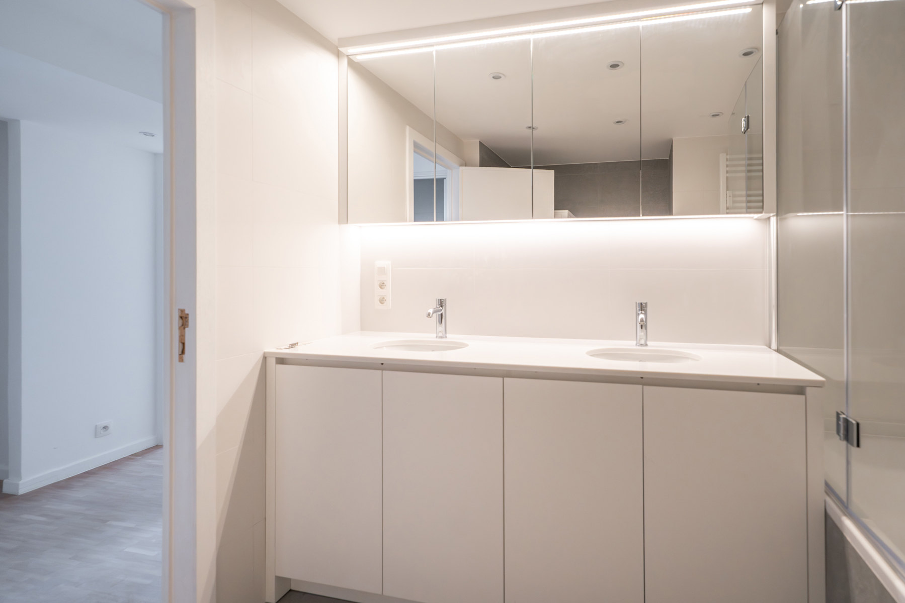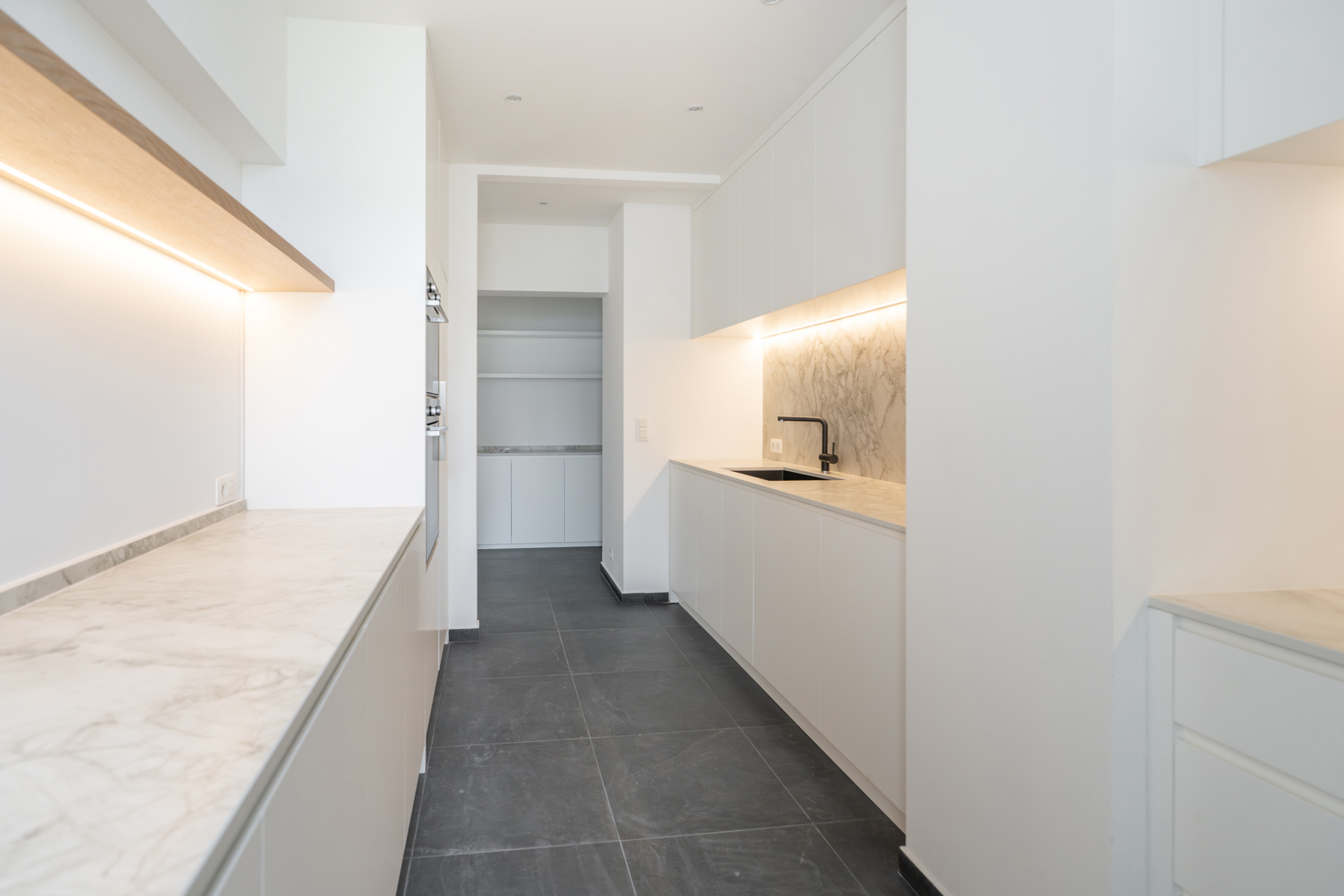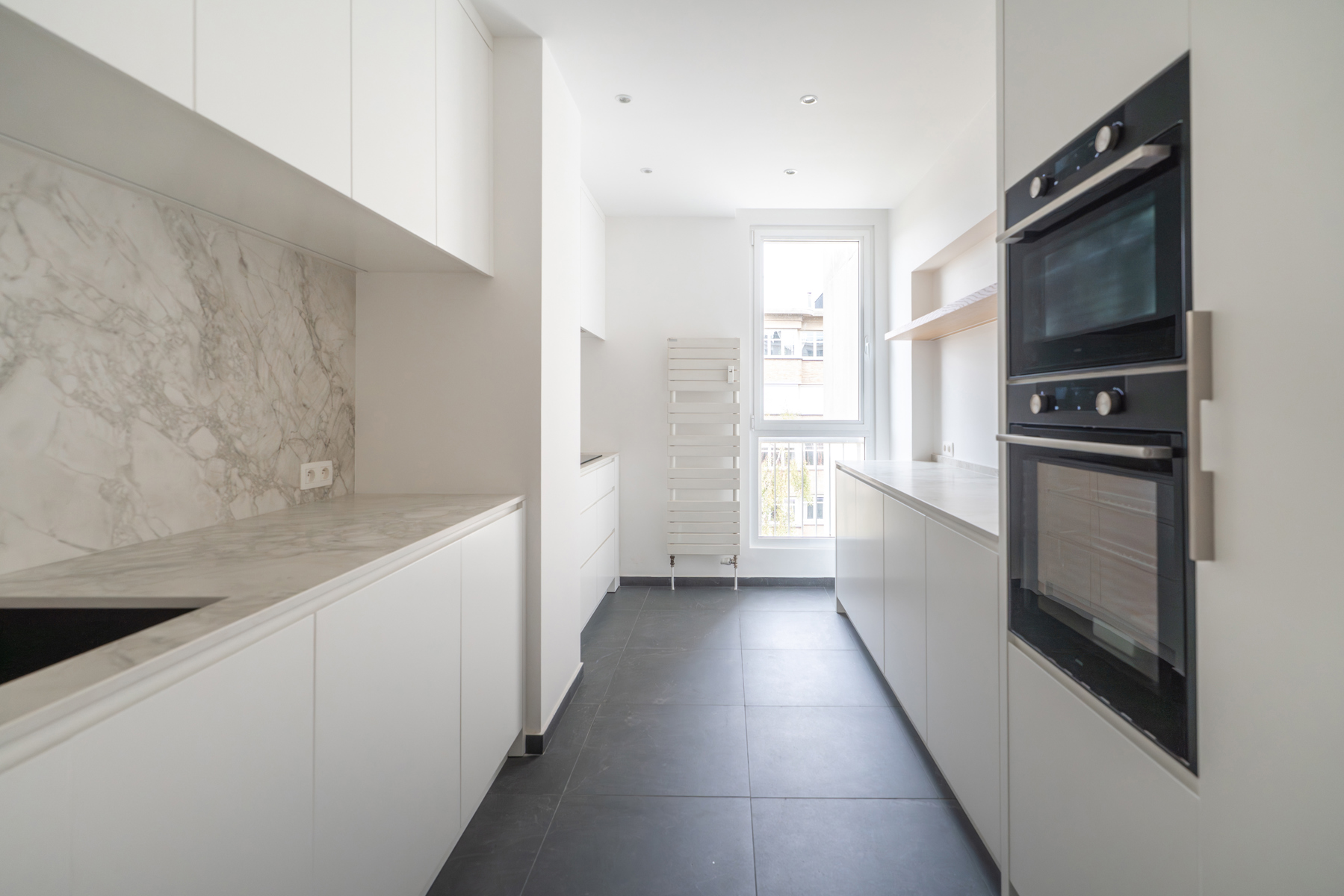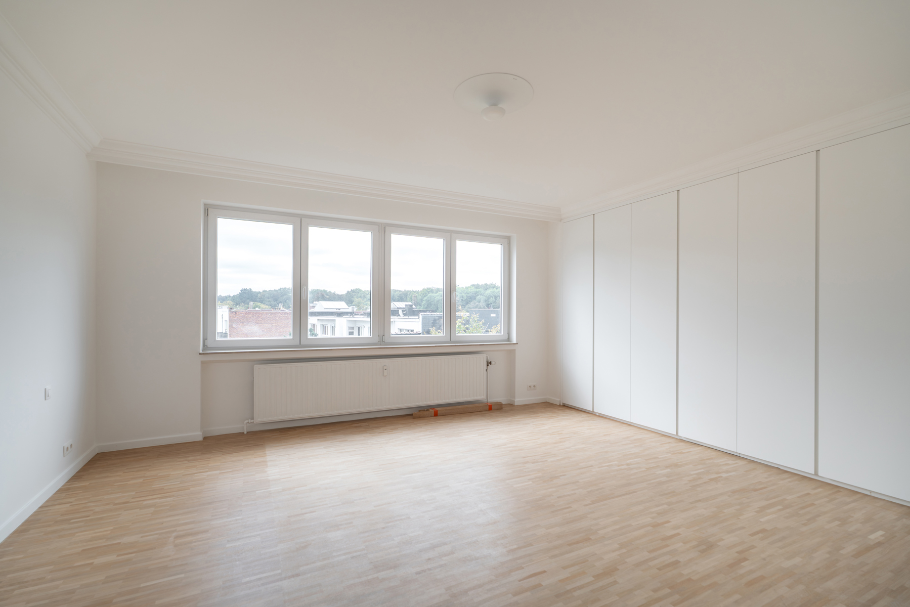 Ideally located in the prestigious Roosevelt district, just a few steps from the Bois de la Cambre, Victoire-Junot is delighted to present exclusively this superb, fully renovated reception apartment of ± 240 m², complemented by a staff room and two indoor parking spaces. The apartment is composed as follows: An elegant entrance hall with cloakroom and guest toilet, spacious en-suite reception rooms of approximately 70 m², a custom-made, fully equipped kitchen with ATAG appliances, extended by a pantry with bespoke cabinetry. The night hall leads to four beautiful bedrooms (± 14 m², 15 m², 15 m², and 20 m²), each fitted with custom-made wardrobes, as well as two bathrooms. A staff room on the ground floor, a cellar, and two indoor parking spaces complete this exceptional property. EPC: D