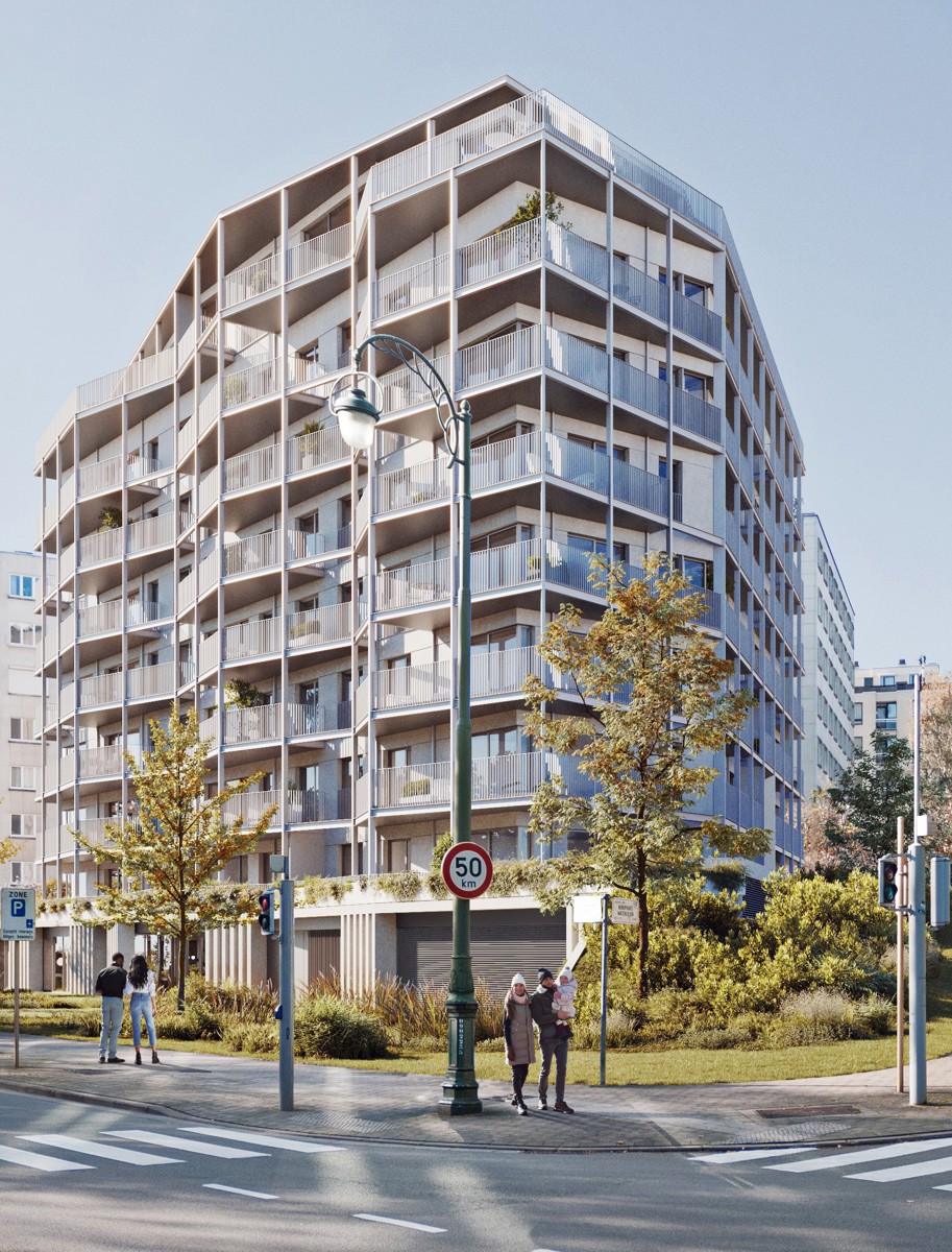 This luxurious new development, surrounded by greenery, is located on Boulevard du Souverain, opposite Parc de Val Duchesse, and comprises 48 units. Victoire-JUNOT proposes you 2-bedroom 3rd floor flat, overlooking the inside gardencourtyard. Large South-West facing terrace. Beautiful entrance hall with checkroom - Living room with open-plan fitted kitchen 36,4 sq.m. 2 bedroom, 1 with access to the terrace - 1 bathroom with toilet. 1 separate WC - 1 utility/laundry room - Cellar included. Bright building, tree-lined gardens - superbly finished - luxurious interior fittings - minimal construction and consumption carbon footprint (solar panels will ensure electricity for the common areas, rainwater will be recovered for the common areas too). 1 large office space will be available on the first floor, while the basement includes 51 parking spaces (with charging station if required) and bicycle storage. A sought-after, residential neighborhood with all the urban amenities you'd expect from your neighborhood within walking distance. Sale under registration rights(12.5%) for the land part and under VAT for the construction part. Contact Victoire for details: 02 375 1010 - new@victoire.be.