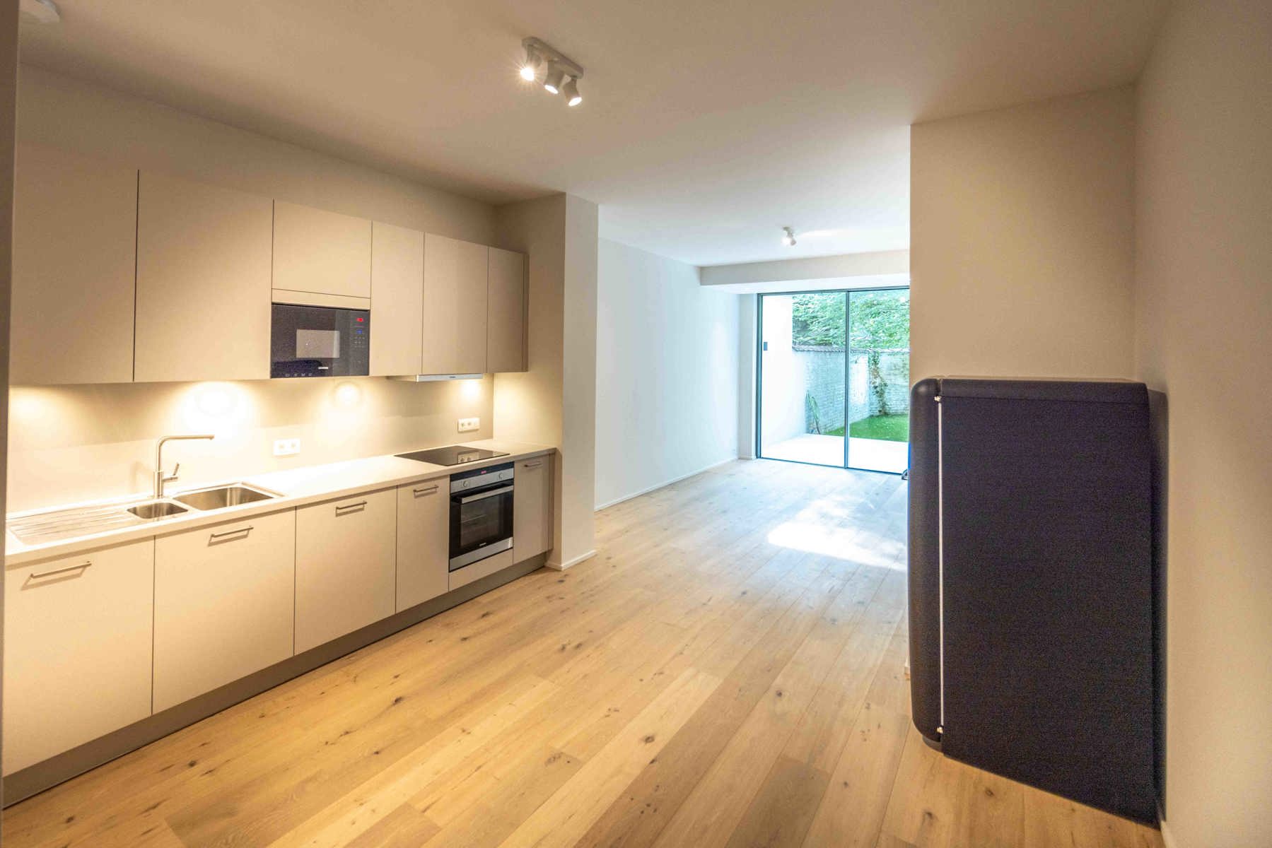 Etterbeek Thieffry - Montgomery — In a small, fully renovated condominium, Victoire - Junot presents this superb ground-floor apartment of approximately 75 m² with a southwest-facing terrace (20 m²) and garden. It offers beautiful living spaces, including a living room with access to the 20 m² terrace and southwest-facing garden. Fully equipped open-plan kitchen, one bedroom (14 m²) with parquet flooring, an office or second bedroom, a shower room, separate toilet, individual gas boiler, and laundry room. In the basement: a cellar (8,000 euros).This apartment will charm you with the quality of its renovations and its prime location. Possibility to rent a covered parking space. EPC rating: C