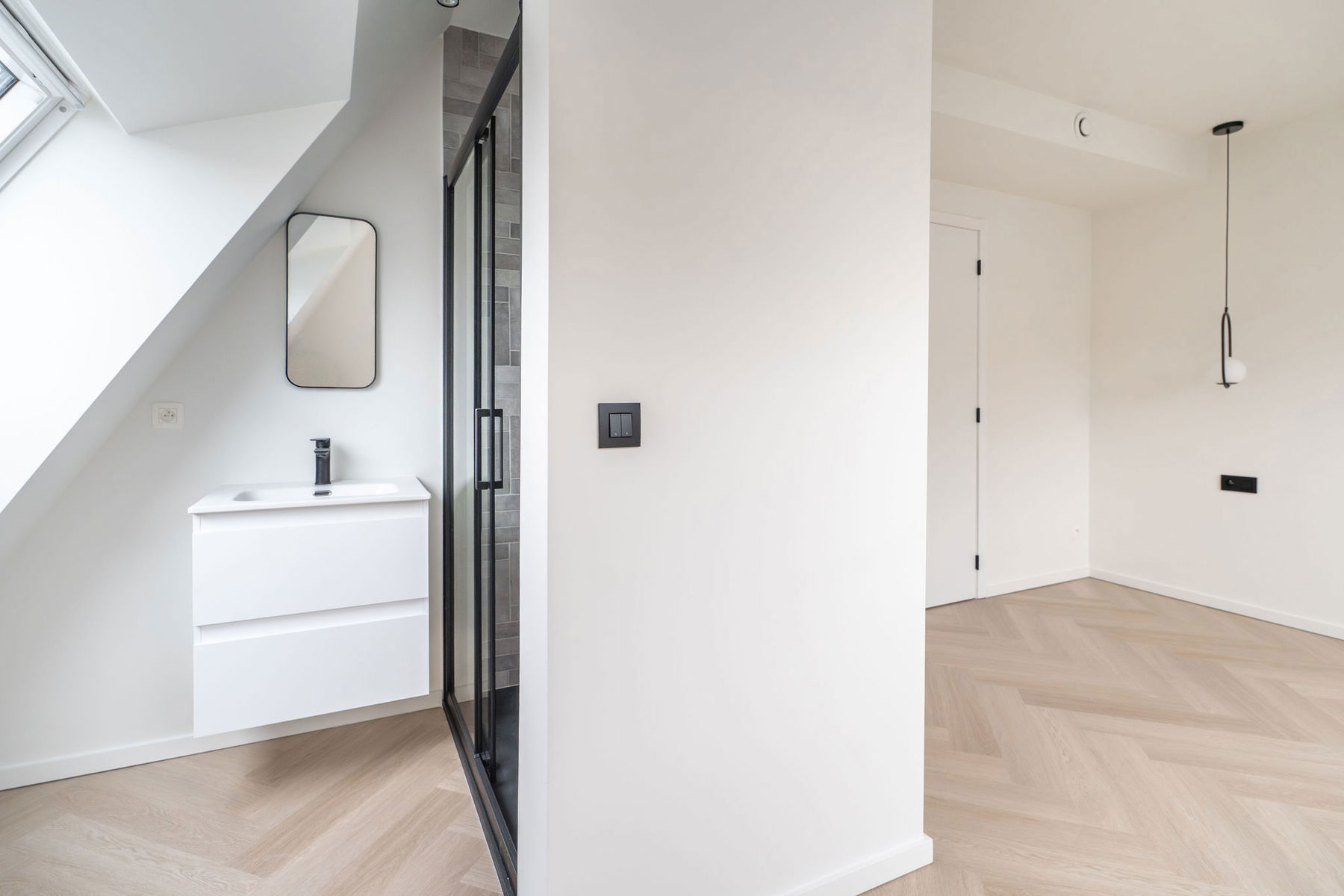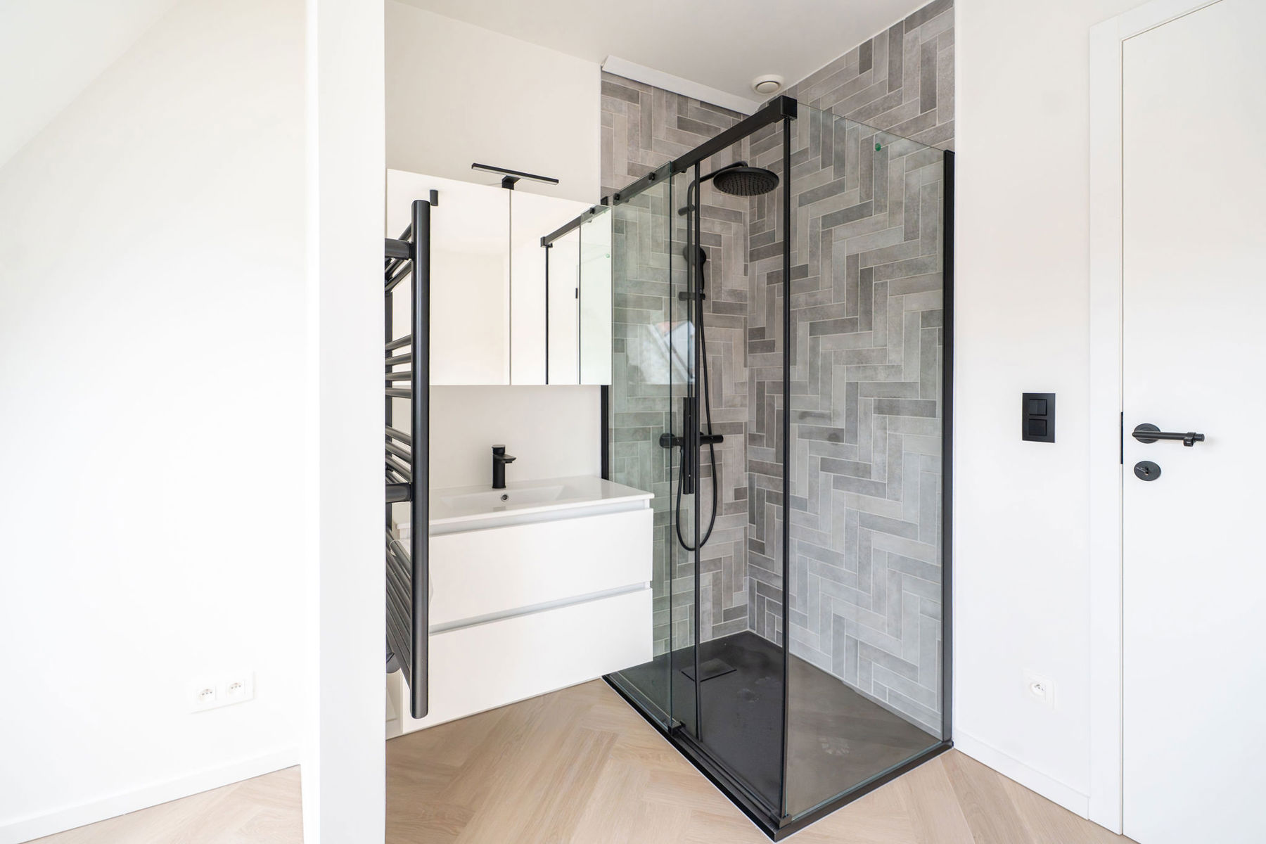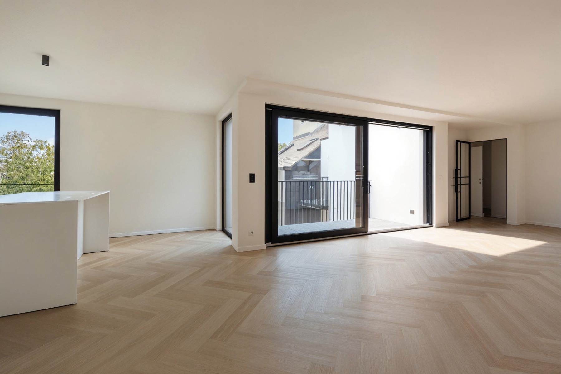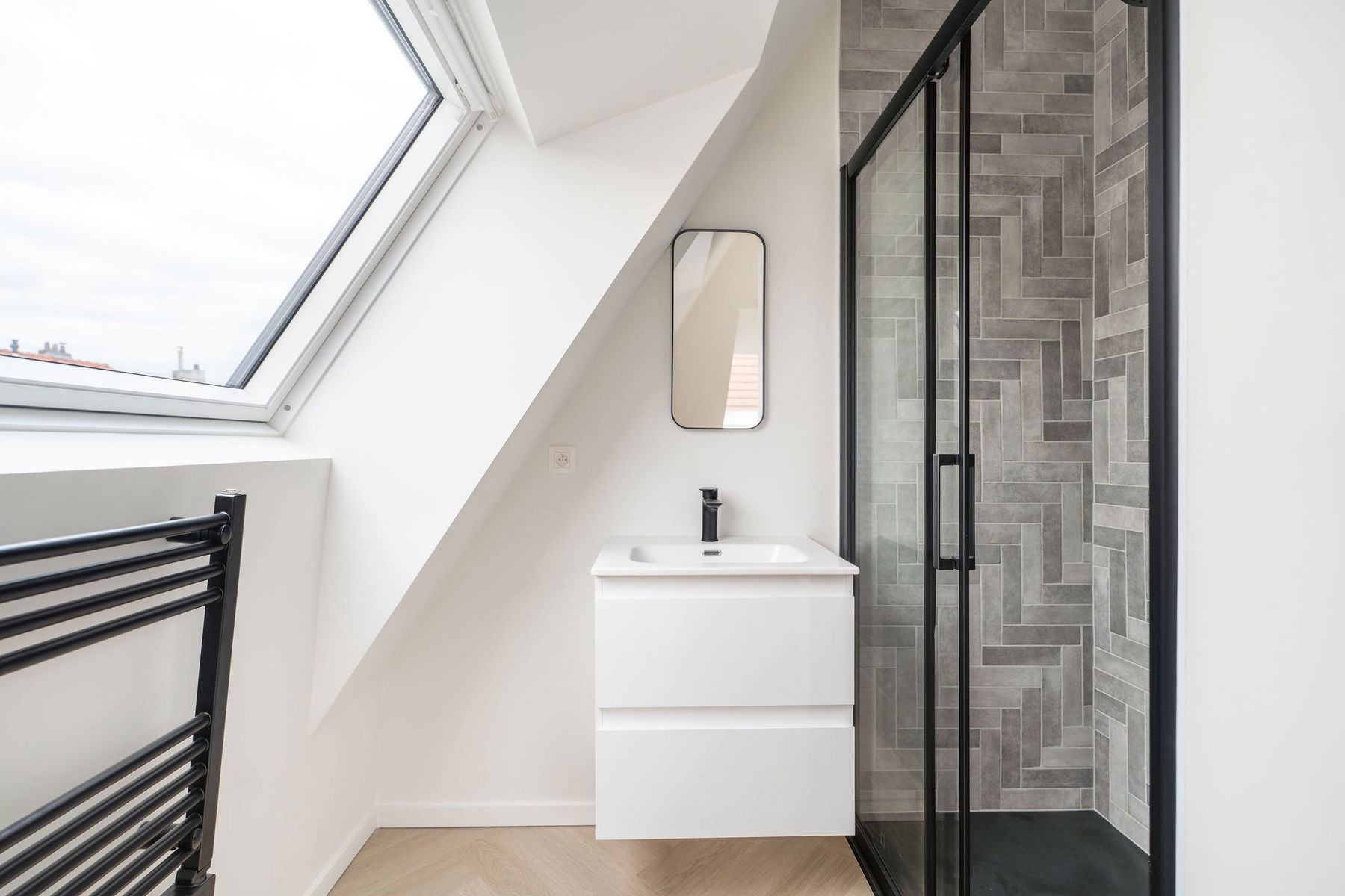 In the “EUROCROWN” project - a fantastic metamorphosis of a beautiful old building, Victoire-JUNOT proposes this beautiful penthouse with a surface area of ± 107 sq.m. + 7 sq.m. terrace. Located on the top floor, the apartment is composed as follows: Entrance hall with guest toilet, spacious bright reception room giving access to the terrace with a beautiful unobstructed view, fully-equipped open kitchen, 2 bedrooms, each with its own shower room, laundry/utility room. The complex is a highly successful blend of contemporary architecture and the latest construction techniques, in compliance with 2025 energy standards. Your daily comfort will be assured by underfloor heating, heat pumps powered by photovoltaic panels, and ultra-efficient “ENERGY” windows. The kitchen and bathroom fittings have been carefully selected in an elegant, “urban chic” style. The building has no parking facilities, but each apartment has a cellar and one or two bicycle parking spaces. You'll enjoy an ideal location, between Luxembourg Square and the lively Place Flagey district. Sale subject to VAT (21%) as this is a new additional floor.