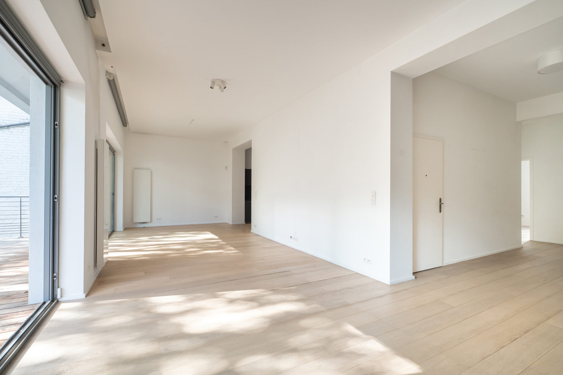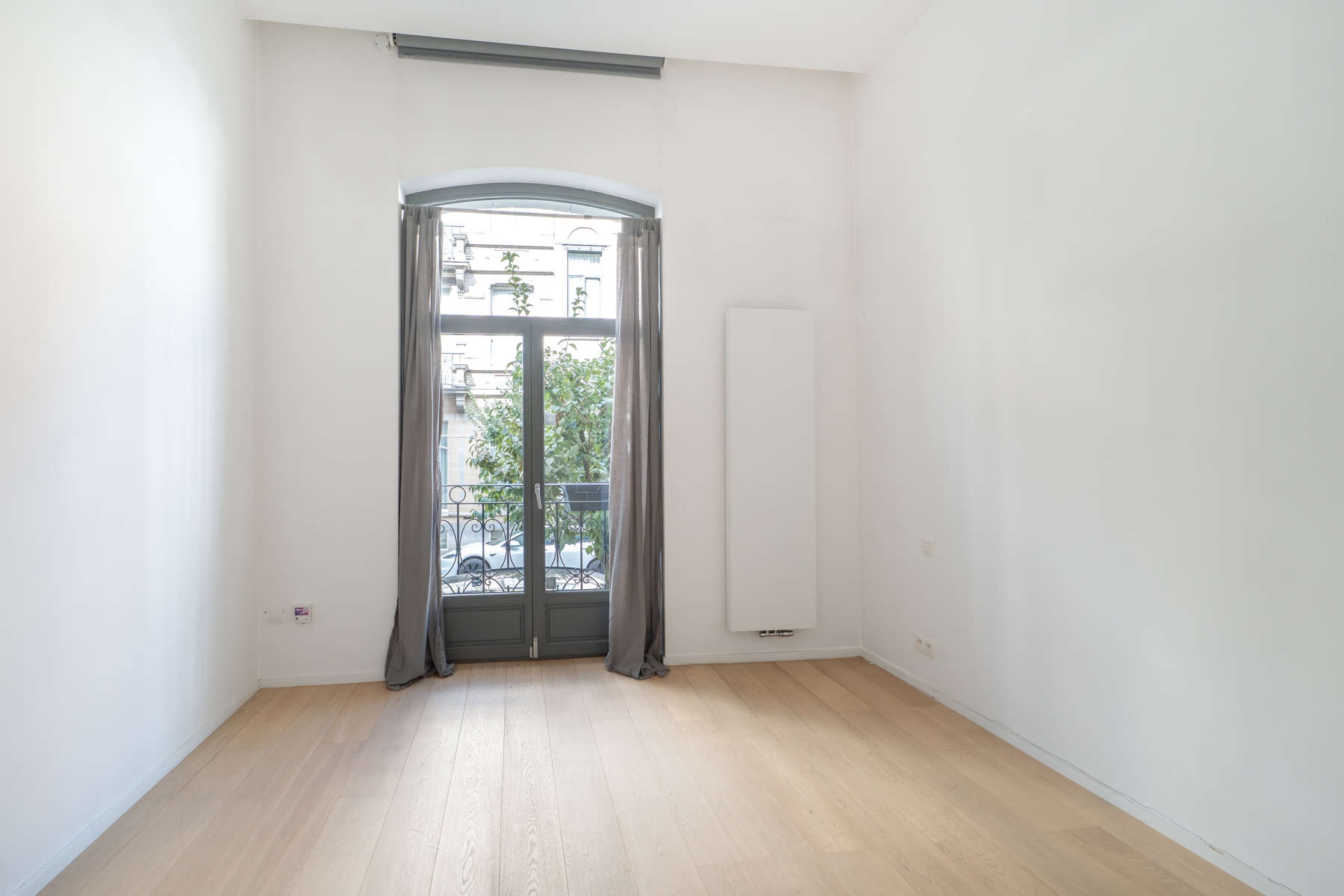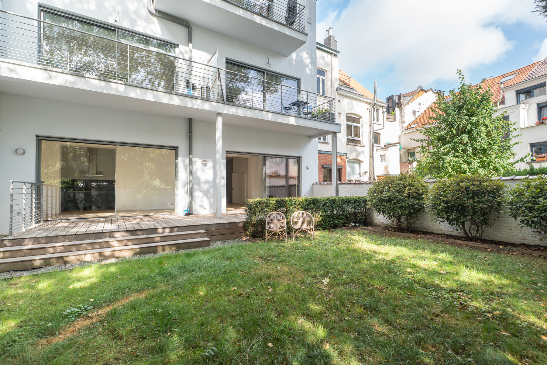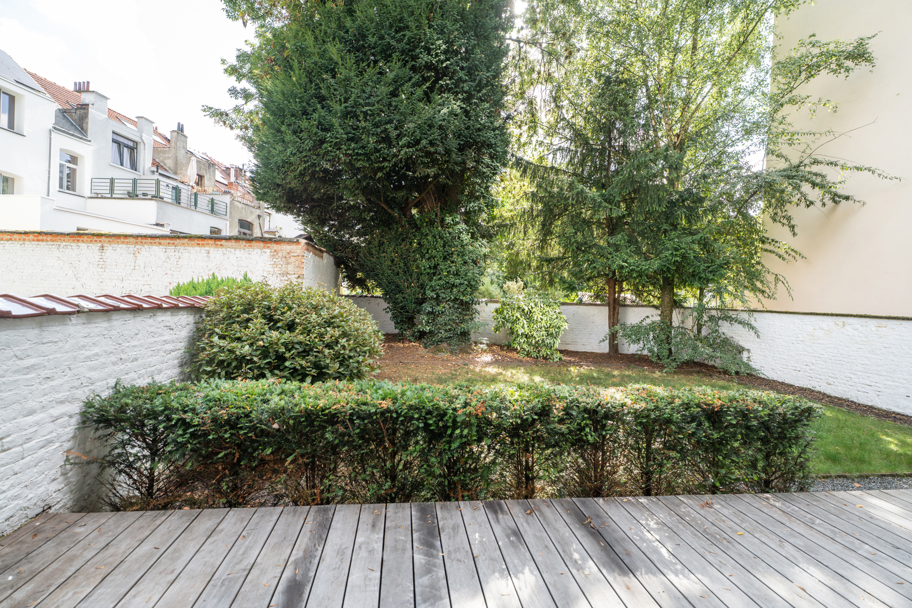 Victoire-Junot presents this superb, fully renovated apartment with a private entrance directly from the street (like a house), offering a living area of ±135 m², complemented by a 35 m² terrace and a 115 m² South-East facing garden. Ideally located between Place Brugmann and Place du Châtelain, in a beautiful early 20th-century building. The apartment is laid out as follows: a spacious entrance hall with cloakroom and guest toilet, generous reception rooms with access to the outdoor spaces, a Bulthaup kitchen, night hall, a master suite with dressing room of ±23 m² and en-suite bathroom, a second bedroom of ±13 m² with shower room, and a study or third bedroom of ±15 m² with its own en-suite bathroom. Cellar included. Fully renovated in 2017, compliant electrical installation, EPC rating D-. A must-see!