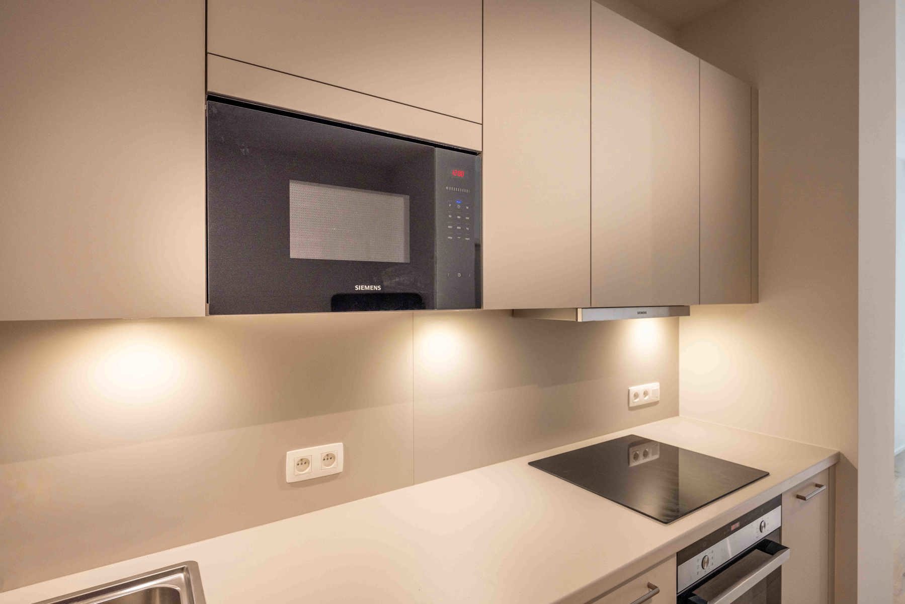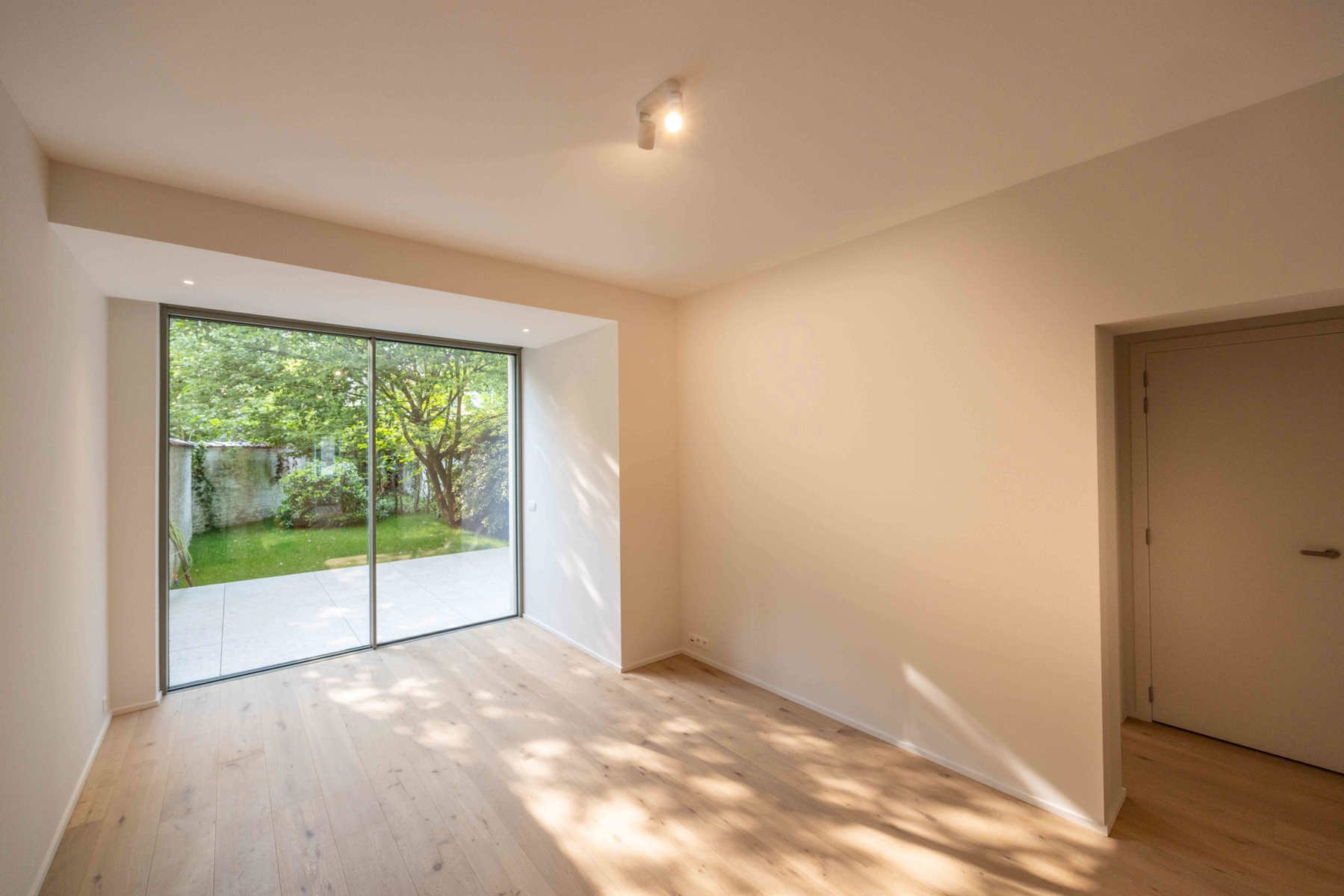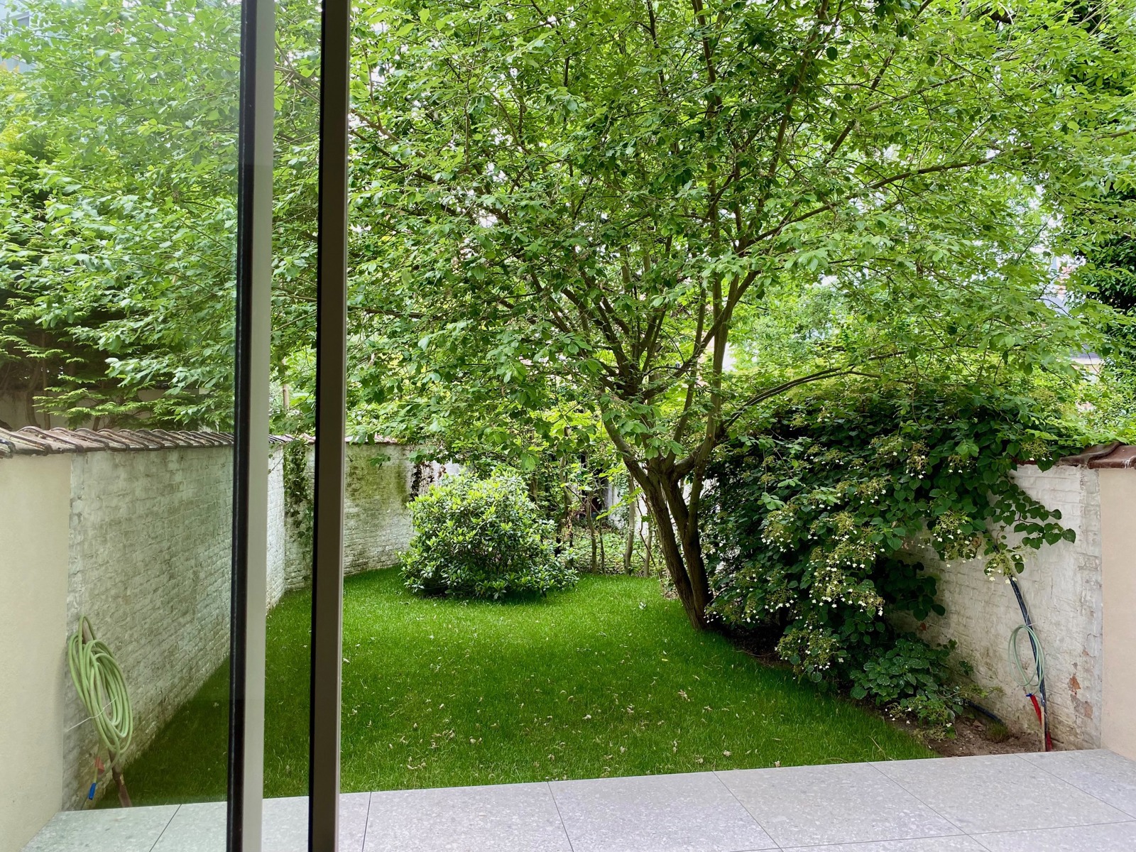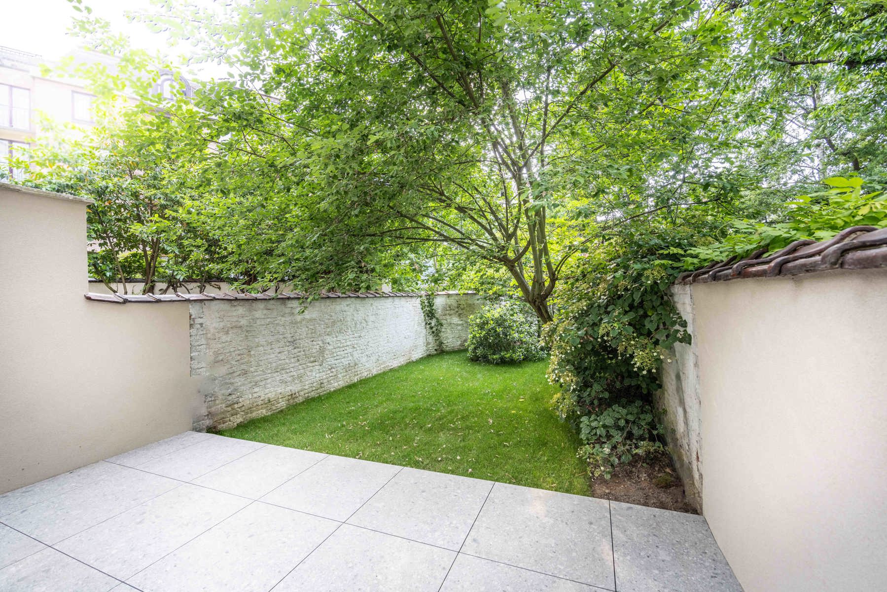 Etterbeek Thieffry - Montgomery, Victoire Junot offers you this superb ground floor apartment of ± 75m² in a small, fully and extensively renovated condominium comprising 3 apartments. It offers beautiful living spaces including a living room with access to the south-west facing terrace (20m²) and garden. Fully equipped kitchen, bedroom (13m²), shower room, separate WC, study or second bedroom 8.5m², individual gas boiler, laundry room, cellar and bicycle storage room in the basement. This flat will charm you with the quality of its renovations and its privileged location. EPC C+. Possibility to rent a covered parking space at no. 123.