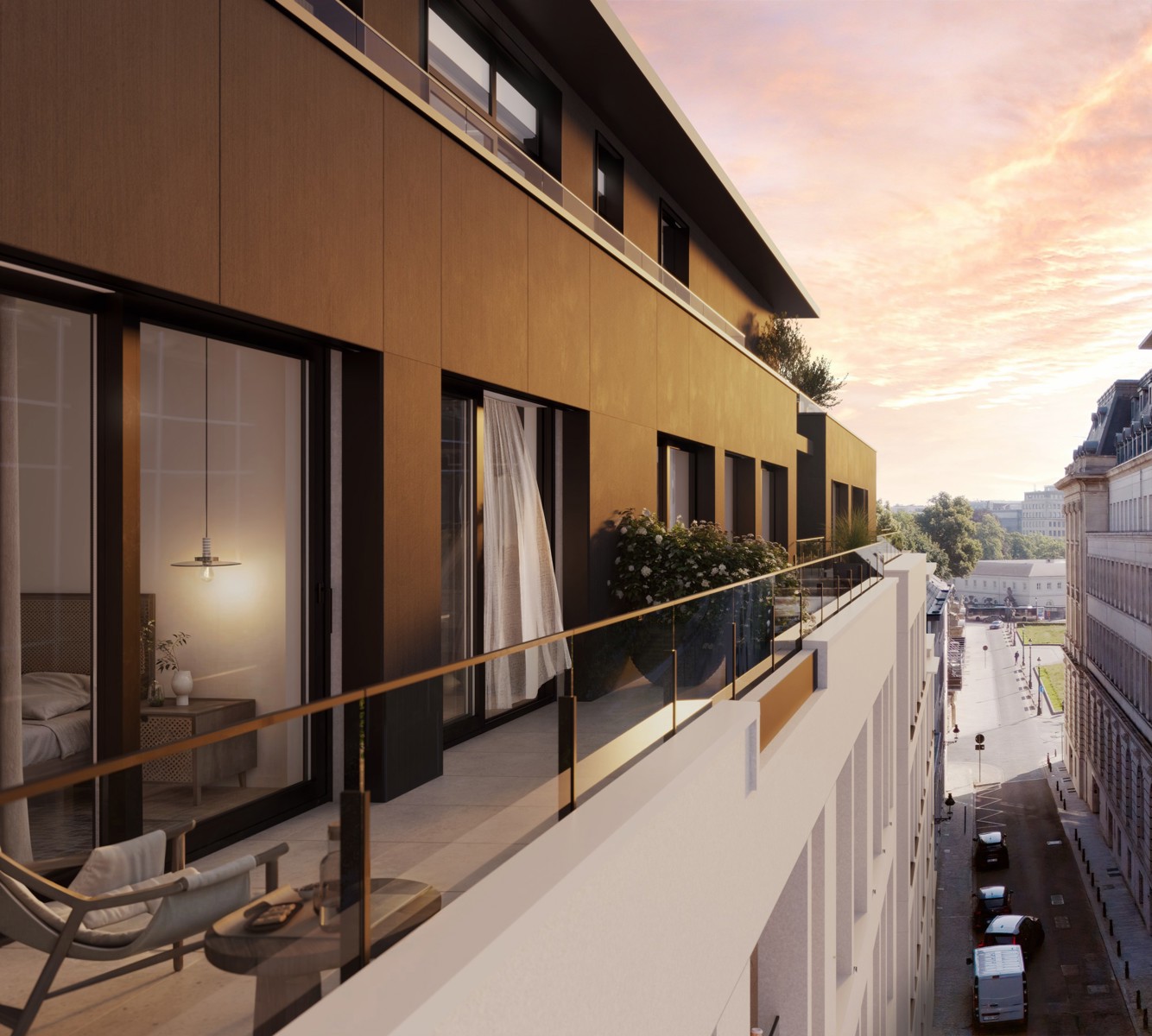 Victoire-Junot proposes this spacious 3-bedroom, 164 sq.m. 2nd floor apartment with 2 terraces, in the upscale “GEM” real estate project located on rue de la Pépinières, next to the Palais Royal gardens. It features : A nice e entrance hall with checkroom and guest WC. It opens onto a large living room with dining area and fully-equipped open kitchen, followed by the utility/technical room. The whole is extended by a pleasant terrace overlooking the inner garden. The first large bedroom (15.4 sq.m.) is located at the rear as well, enjoys a cosy bathroom with double washbasin and WC, also overlooking the garden. The night hall leads to the other 2 bedrooms (16.1 and 17.9 sq.m.), both with en suite shower rooms with shower, single washbasin and 1 with additional WC. Cellar included and parking mandatory at extra cost. EPC A- to B+. This prestigious area is a place steeped in history and charm, offering a unique blend of tradition and quality modern living, where life on foot has taken off in a big way. To the rear, in perfect harmony with the natural elements used for the construction, a private garden offers greenery, space and freshness, welcome in the heart of the city ! Sale under registration tax of 12.5%. Delivery scheduled for summer 2027.