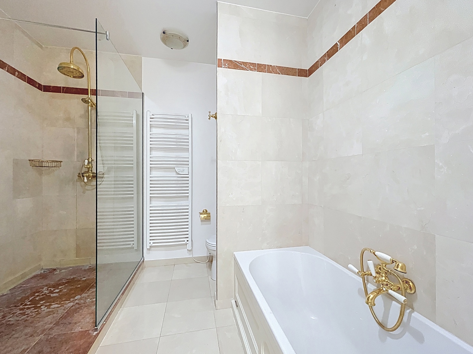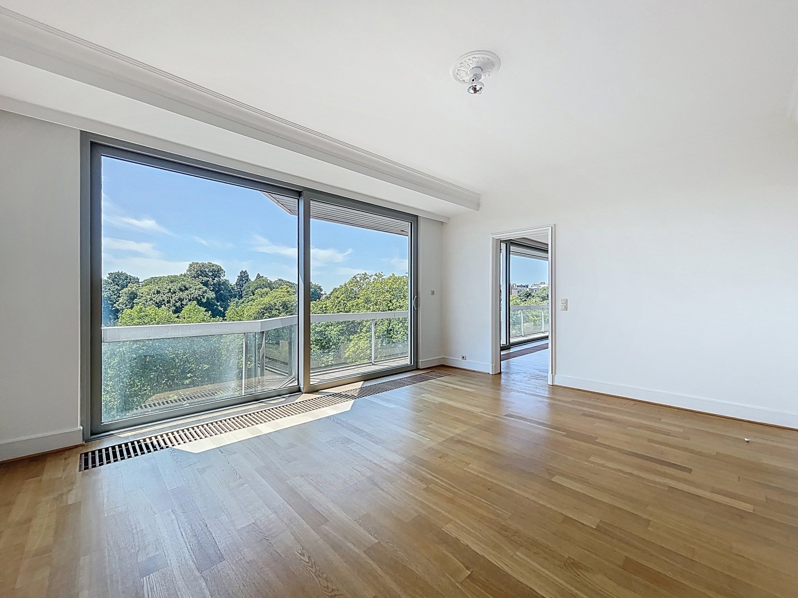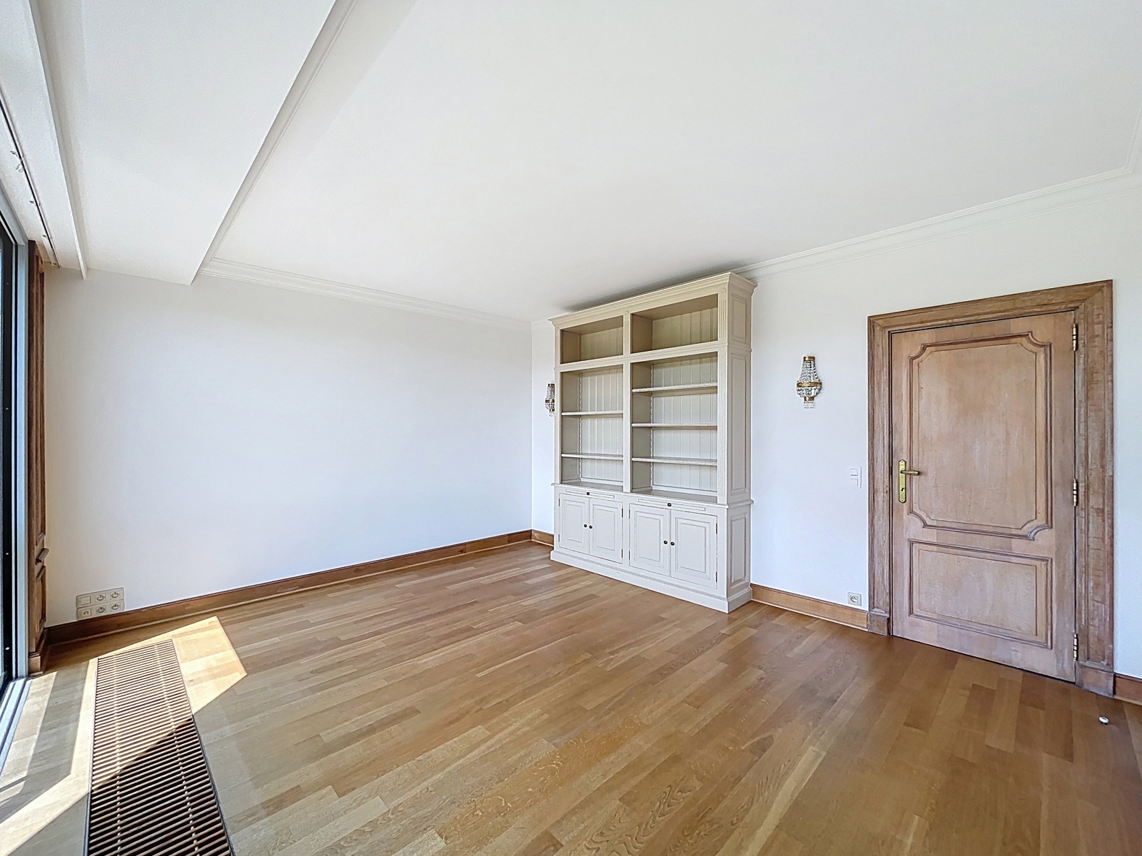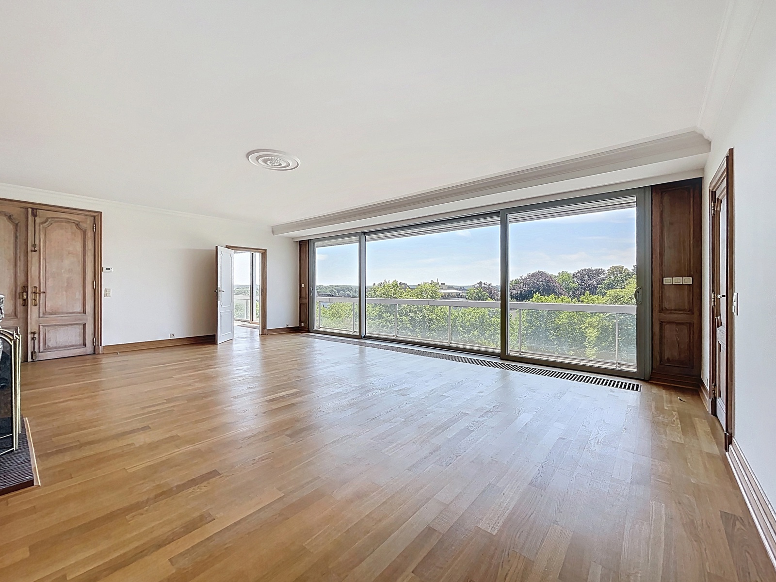 Ideally located in an embassy district and just minutes from the European institutions in Montgomery, this spacious APARTMENT of ±270 m² is nestled on the 7th floor, directly facing the Stoclet Palace, offering an unobstructed view over the entire Chant d'Oiseau area. Entrance hall, elegant reception rooms (living room with open fireplace and electric sunshade, dining room, and office), fully equipped kitchen, 3 bedrooms (possibility of 4), and 2 bathrooms. Front and rear terraces. 2 parking spaces (side by side with an electric charging station) in the building’s garage and 2 cellars. This bright apartment (receptions facing South-West) features bedrooms opening onto the rear balcony overlooking the shared park. High-quality finishes, alarm system, EPC rating C, 2 elevators, close to shops, schools, and public transport... A must-see!