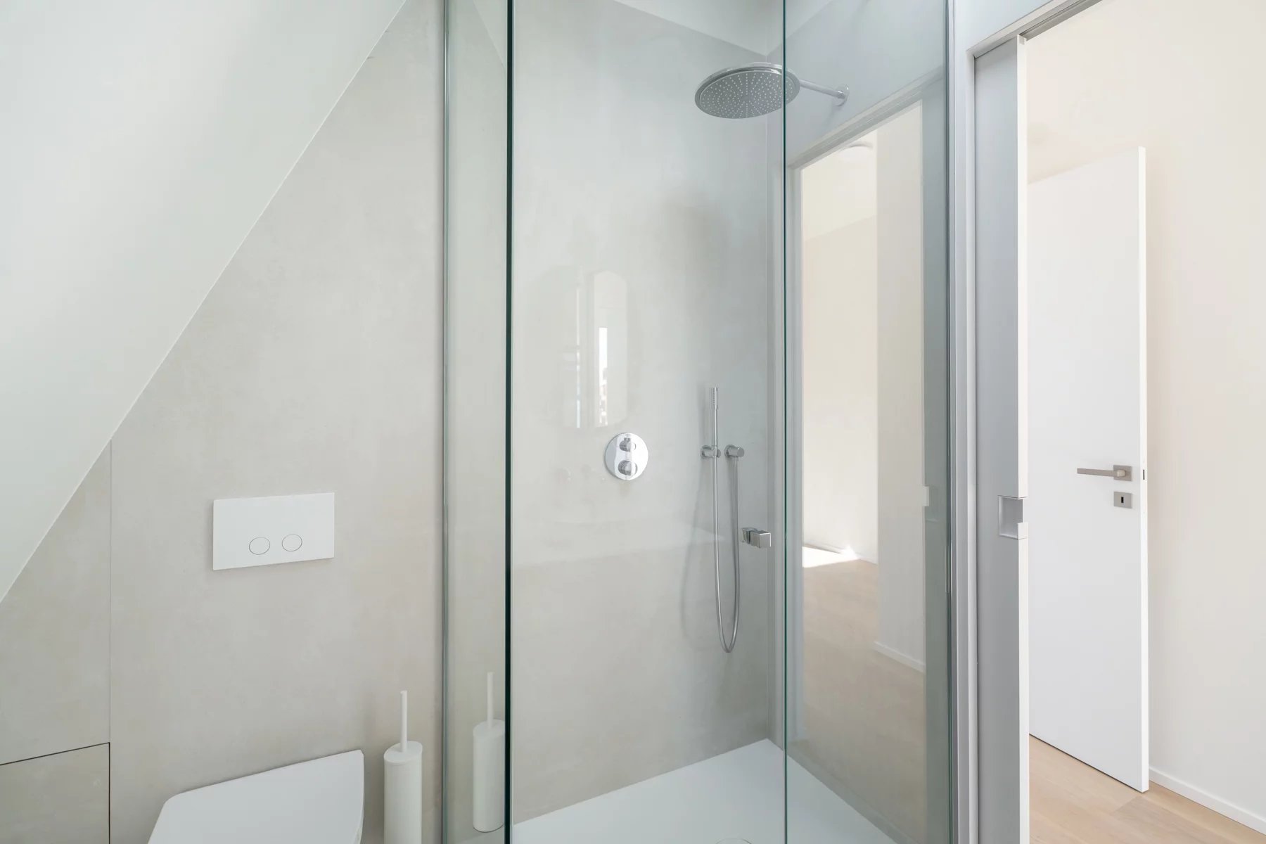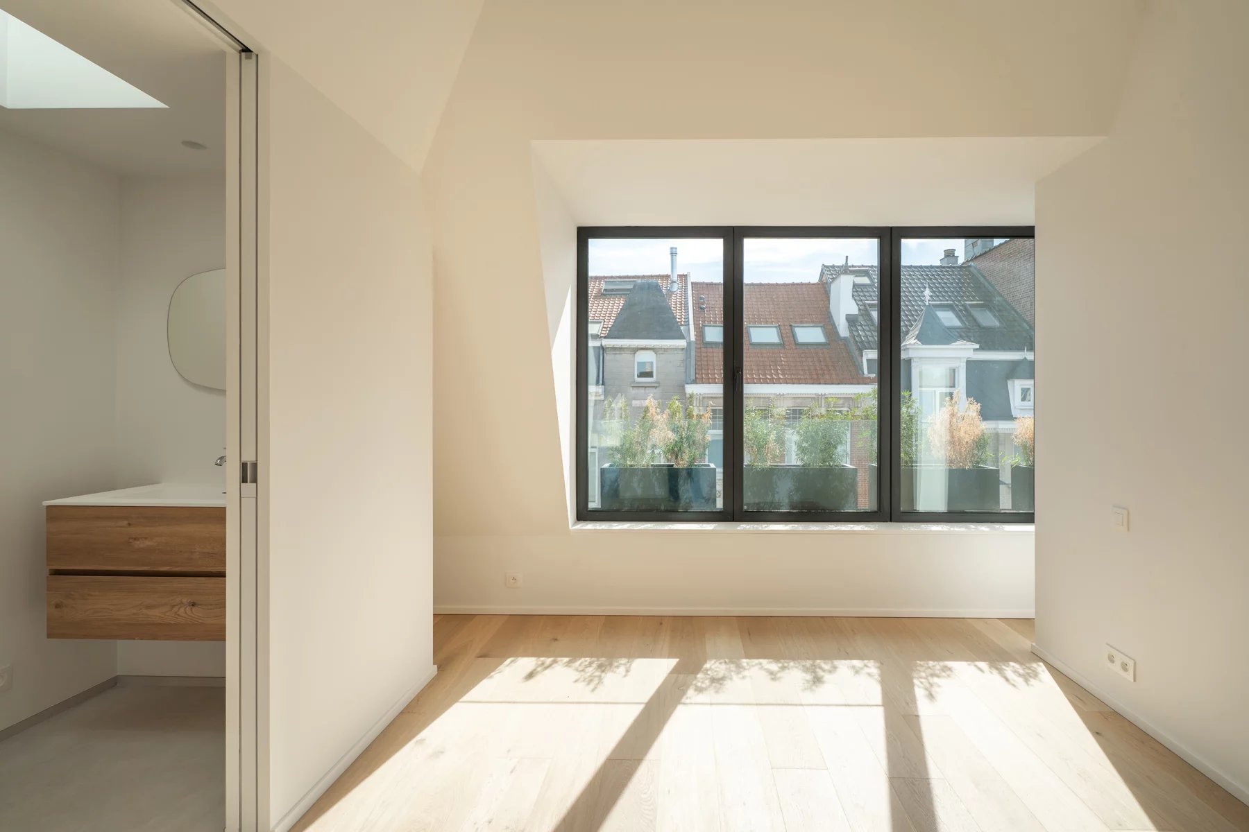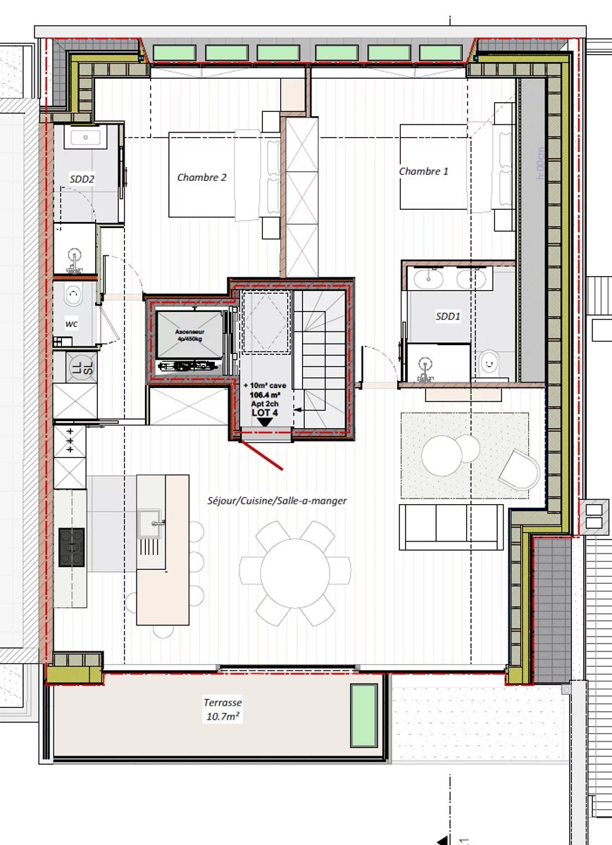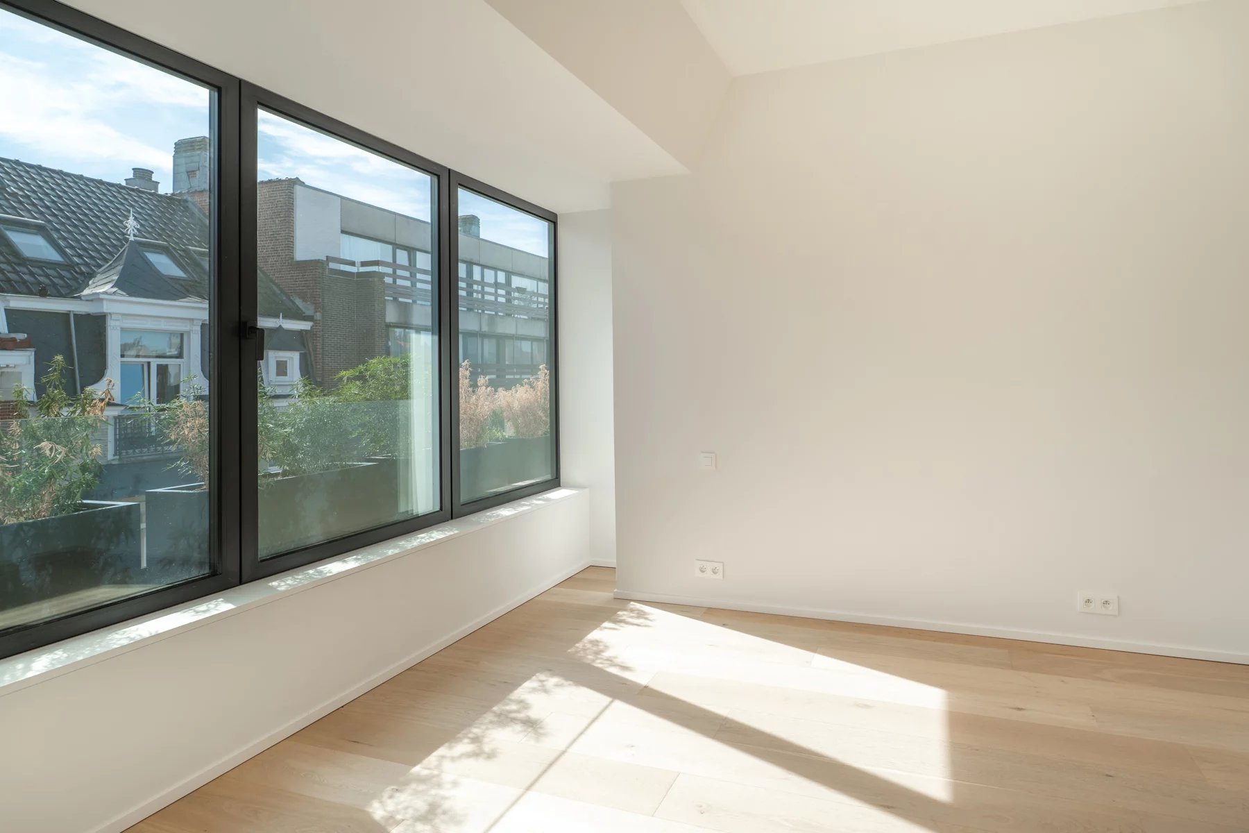 Enjoying an exceptional location in the prestigious Floride district, just steps from the Bois de la Cambre, Victoire Junot presents this stunning penthouse with a total living area of approximately 105 m², complemented by 10 m² of terraces, located on the top floor of a building that has undergone a high-quality renovation. Bathed in natural light, the apartment features a spacious living area with a custom open kitchen, opening onto a beautiful terrace with unobstructed views. It offers two bedrooms, each with its own en-suite bathroom, a guest toilet, and a laundry room. The property is equipped with air conditioning, a bicycle room with charging points, a cellar, a lift, and carefully selected high-quality materials throughout. A rare property combining modern comfort with a prime location. Subject to a 21% VAT regime.