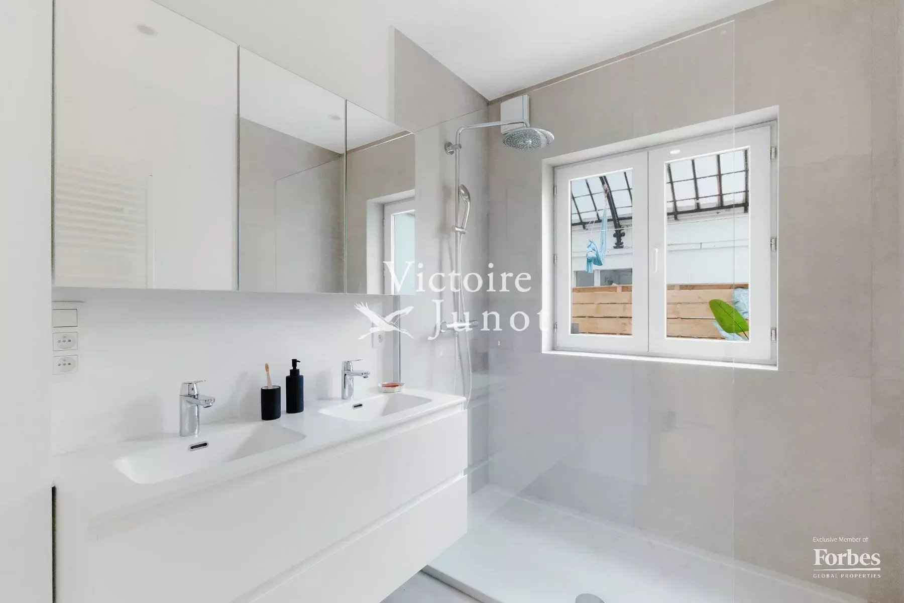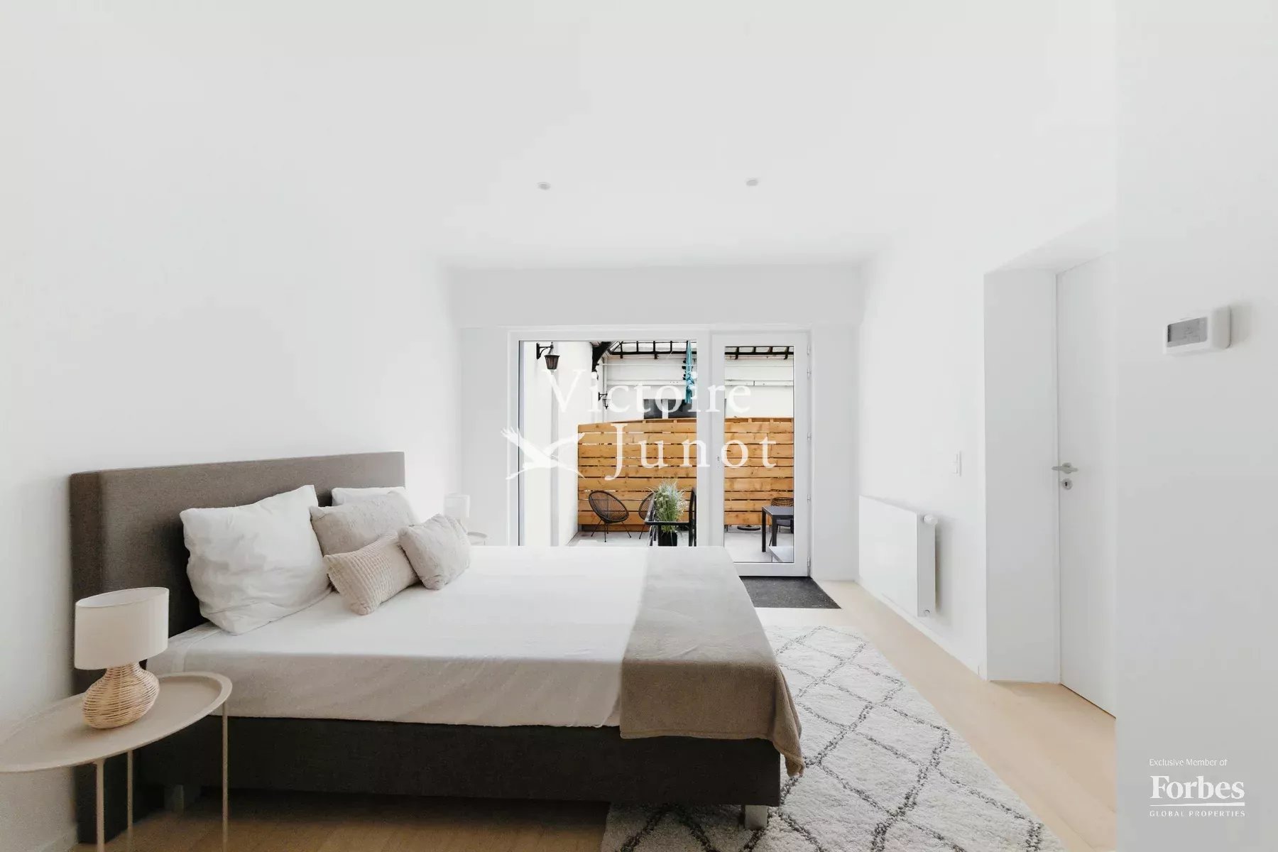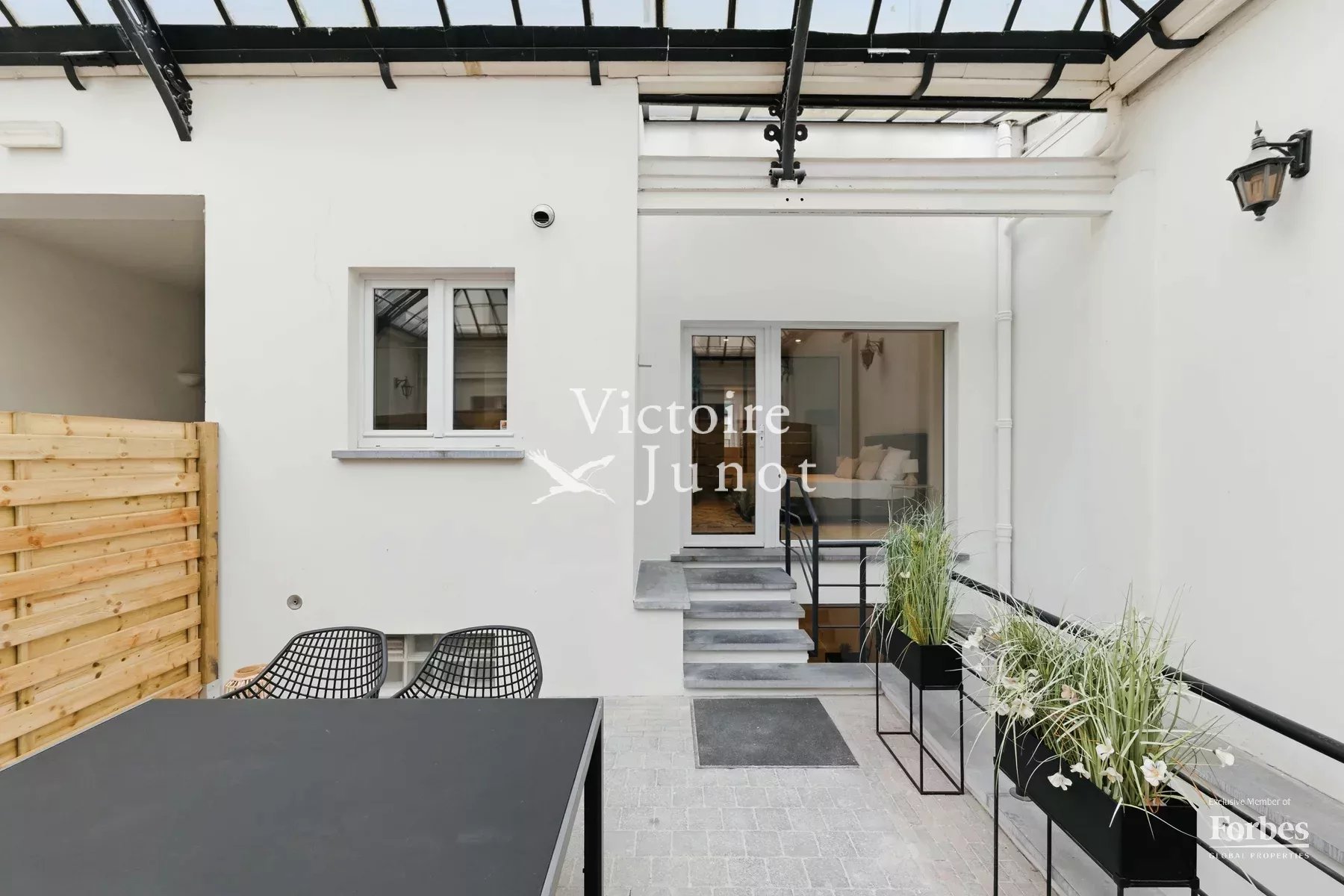 In the immediate vicinity of Place Stéphanie, a beautiful, fully renovated duplex apartment with a total gross area of approximately 172 m² in a charming period building. It comprises: on the ground floor, a fully equipped kitchen opening onto a dining room, a living room, a bedroom with an en-suite shower room and direct access to the covered courtyard. On the lower level, a multi-purpose room, a bathroom, a second bedroom, and a laundry area. Also included: legal status = 1-bedroom apartment, de facto = 2-bedroom apartment, shared carriage entrance with bicycle storage, elevator in the building, individual condensing gas boiler, double glazing. Energy Performance Certificate (EPC) rating D-. Don't miss out!