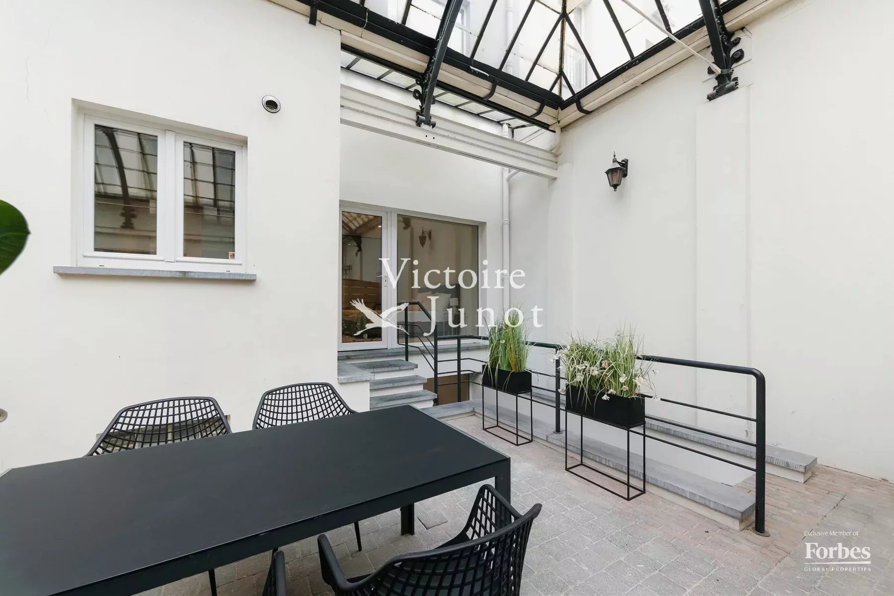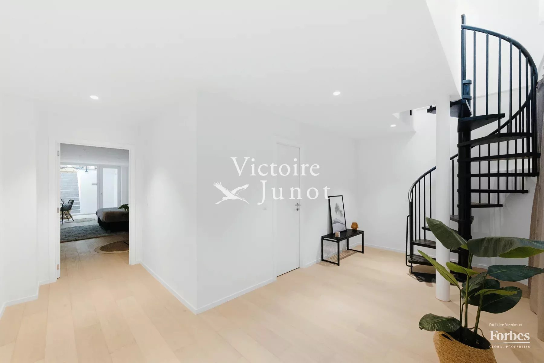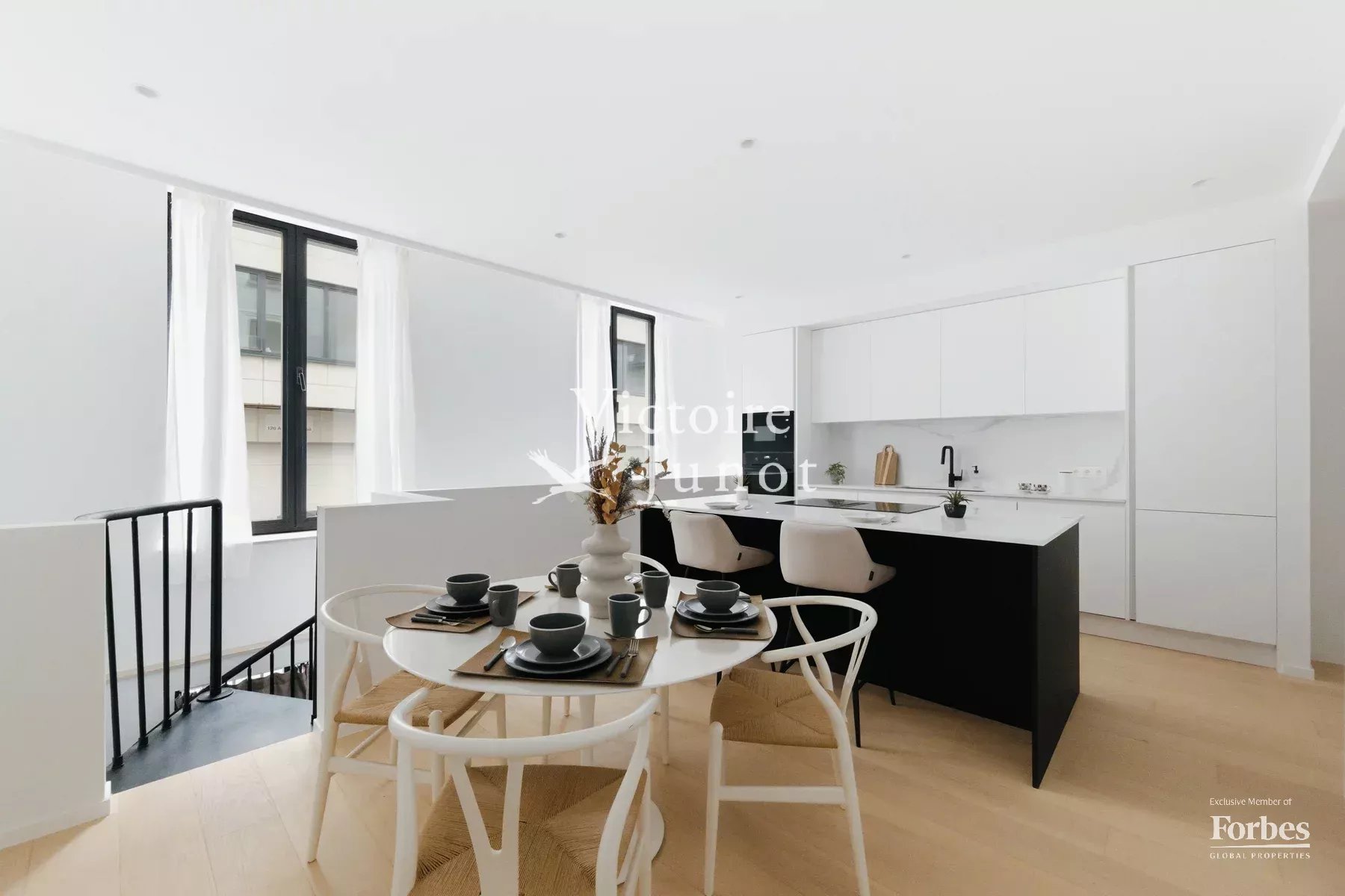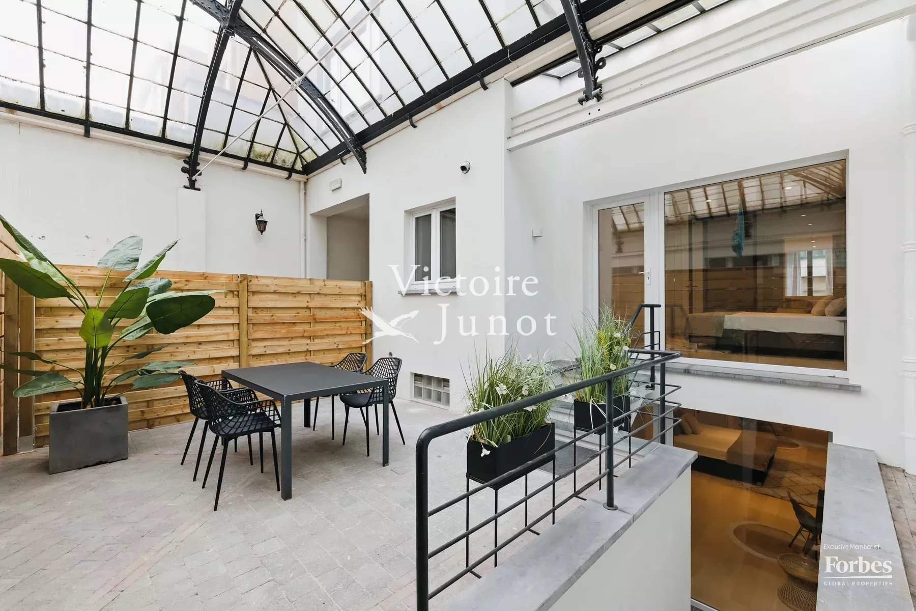 In the immediate vicinity of Place Stéphanie, a beautiful, fully renovated duplex apartment with a total gross area of approximately 172 m² in a charming period building. It comprises: on the ground floor, a fully equipped kitchen opening onto a dining room, a living room, a bedroom with an en-suite shower room and direct access to the covered courtyard. On the lower level, a multi-purpose room, a bathroom, a second bedroom, and a laundry area. Also included: legal status = 1-bedroom apartment, de facto = 2-bedroom apartment, shared carriage entrance with bicycle storage, elevator in the building, individual condensing gas boiler, double glazing. Energy Performance Certificate (EPC) rating D-. Don't miss out!