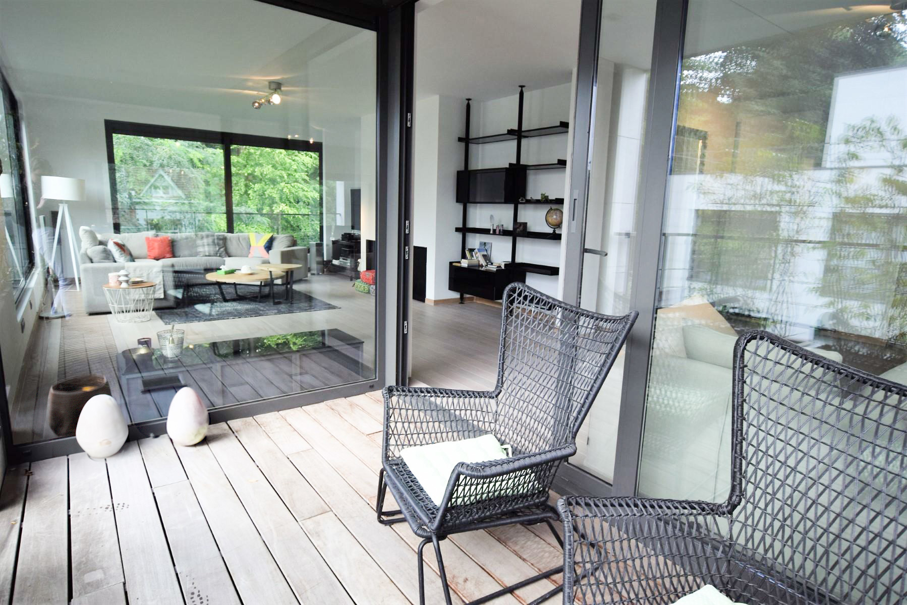 VICTOIRE-JUNOT vous propose sur Uccle, quartier du Dieweg à proximité des commerces et des moyens de transport, au coeur du parc centenaire de la Hêtraie, superbe appartement finitions haut de gamme du célèbre architecte Marc Corbiau de 223m² situé au 2ème étage avec 2 terrasses comprenant un séjour de 110m² avec feu ouvert, cuisine américaine super-équipée de qualité, 3 chambres, 1 salle de bains, 1 salle de douche,buanderie, cave spacieuse, garage box pour 2 voitures, chauffage au gaz, système double flux, isolation. A découvrir chez Victoire - Junot - www.victoire.be- Tel : 02 375 10 10