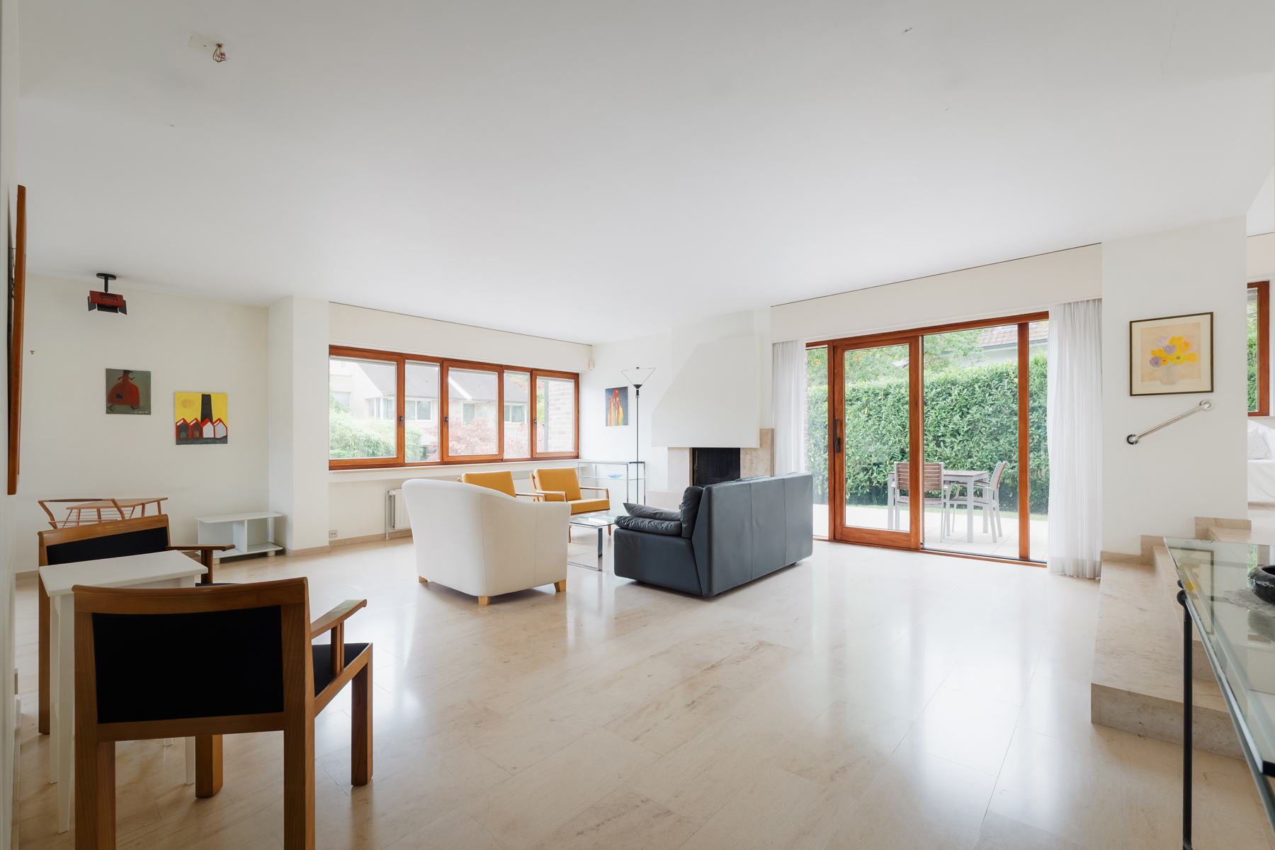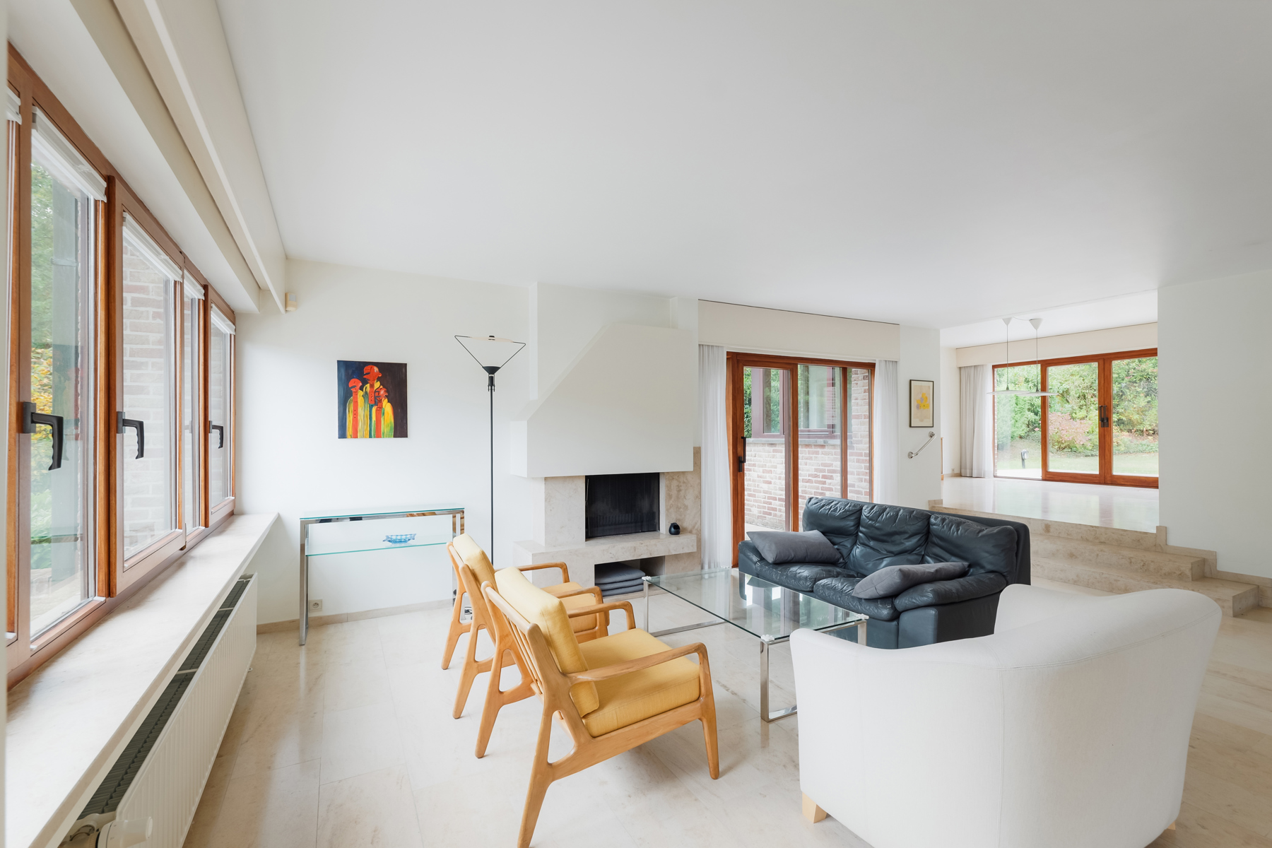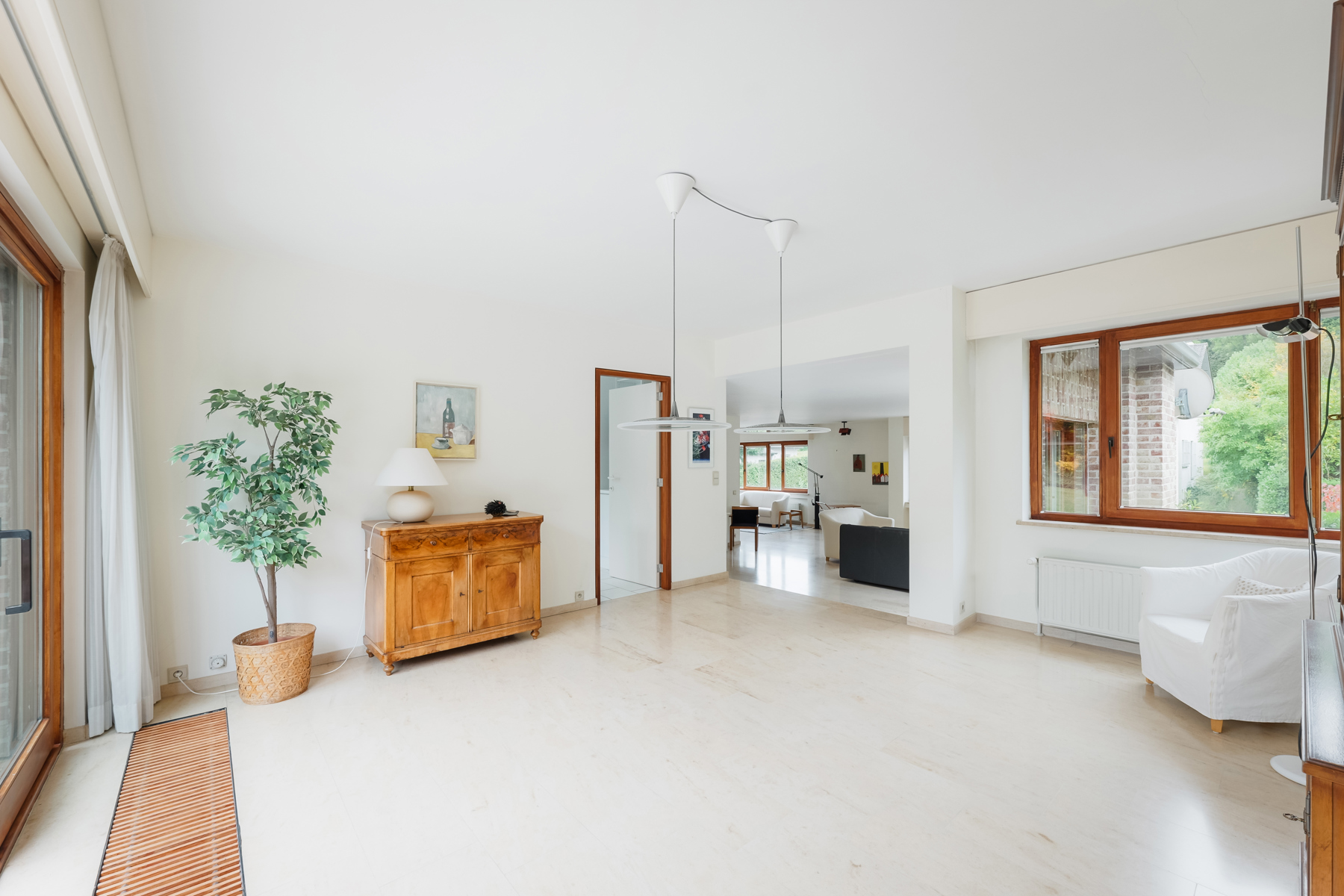 Tervuren : Quartier Arboretum lumineuse villa construite en 1976 sur une parcelle de ±10 ares elle offre une superficie bâtie de ± 450m². Grand hall, vestiaire, spacieuses réceptions traversantes donnant accès aux terrasses et jardin, salle à manger, cuisine avec coin à déjeuner, espace buanderie attenant avec accès terrasse couverte BBQ. A l'étage suite parentale avec dressing, salle de bains complète, trois autres chambres, 2 salles de douche, grand grenier aménagé, en sous-sols, entrée indépendante avec accès bureau ou chambre, sdd, WC, chaufferie, cellier, garage pour 4 voitures, porte automatique. très beaux jeux de volume et lumière. PEB C