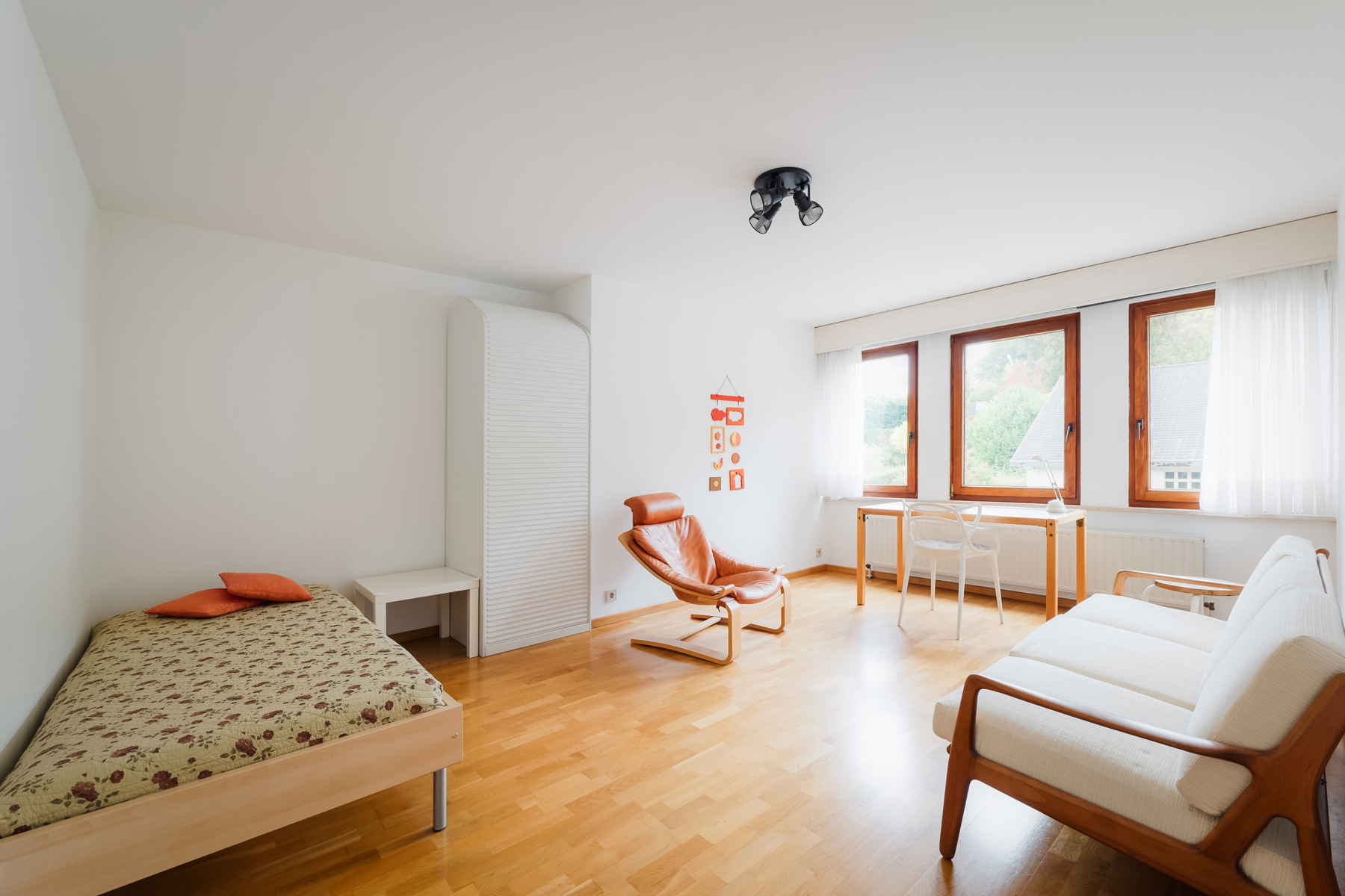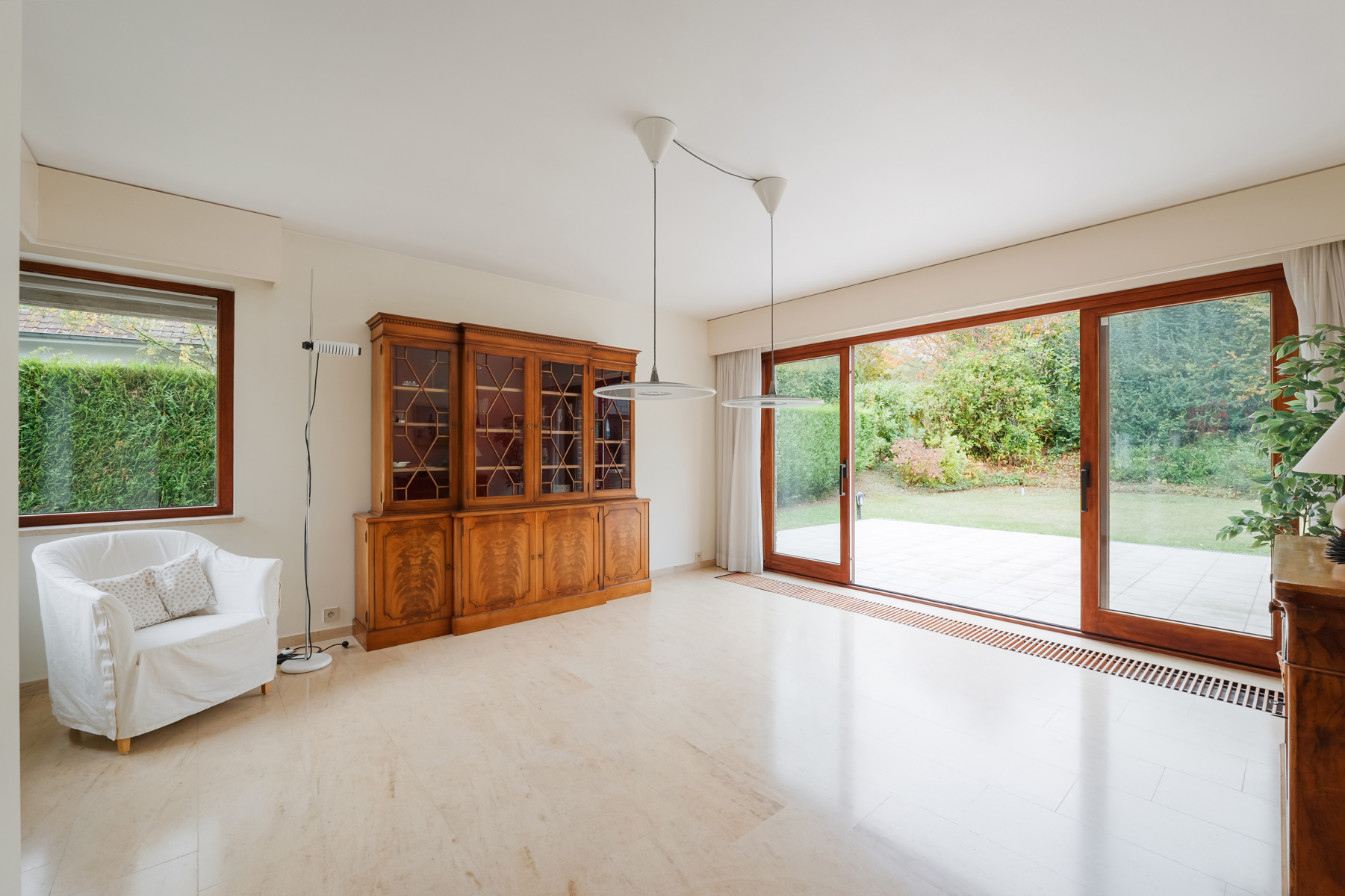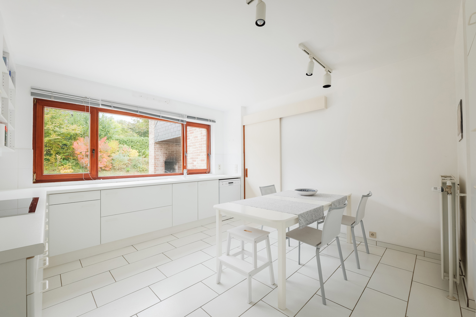 Tervuren : Quartier Arboretum lumineuse villa construite en 1976 sur une parcelle de ±10 ares elle offre une superficie bâtie de ± 450m². Grand hall, vestiaire, spacieuses réceptions traversantes donnant accès aux terrasses et jardin, salle à manger, cuisine avec coin à déjeuner, espace buanderie attenant avec accès terrasse couverte BBQ. A l'étage suite parentale avec dressing, salle de bains complète, trois autres chambres, 2 salles de douche, grand grenier aménagé, en sous-sols, entrée indépendante avec accès bureau ou chambre, sdd, WC, chaufferie, cellier, garage pour 4 voitures, porte automatique. très beaux jeux de volume et lumière. PEB C
