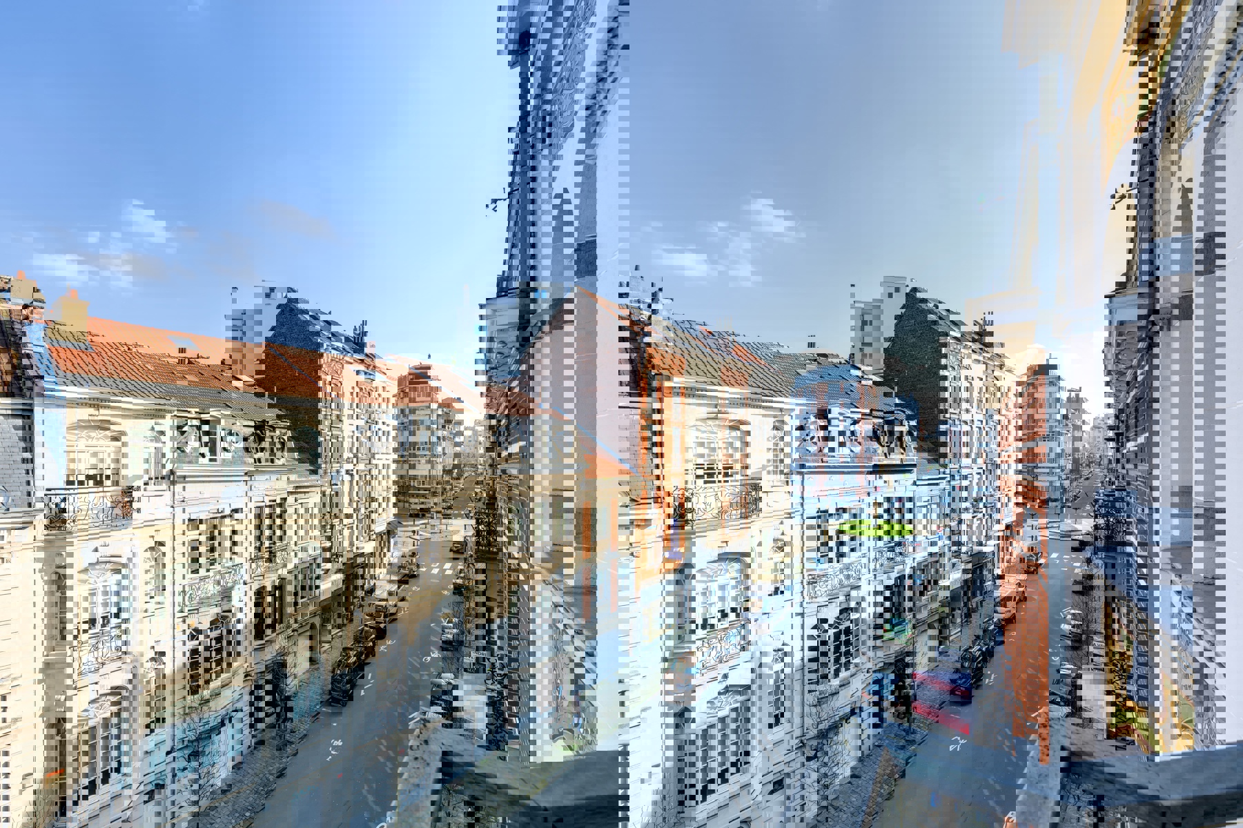 Entre l'avenue Louise et le Parc Tenbosh, à proximité immédiate de la place du Châtelain, situé dans un ancien Hôtel Particulier de l'architecte Gustave Strauven, magnifique appartement de caractère jouissant d'une belle luminosité. Il offre d' agréables réceptions donnant accès à une terrasse de 17m² orientée à l'ouest, une cuisine super-équipée ouverte, 2 chambres, salle de bains, salle de douche, cave, parking obligatoire (40.000€). PEB F