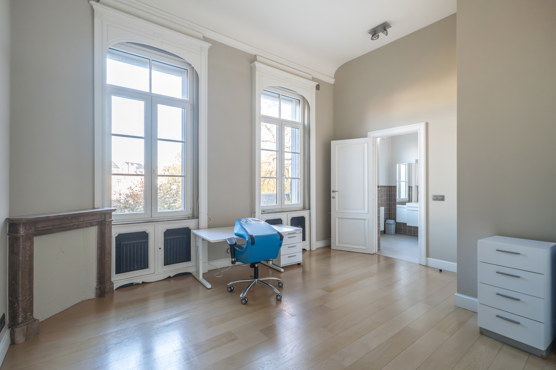 Victoire Junot vous propose sur la place Jamblinne de Meux, à deux pas du parc du Cinquantenaire et des Institutions Européennes, ce magnifique Hôtel de Maître des années 1910 et restaurée en 2009/2010 avec une arrière maison. Cette demeure de caractère développe une superficie brute de ±620m² brut pour la maison principale, et 110m² pour la maison arrière actuellement louée. Vous serez séduits par son charme et son cachet unique. Elle se compose de 5 chambres et 3 salles d'eau, des espaces bureaux et de réceptions, un ascenseur et une magnifique cuisine super équipée. Un petit jardin relie la bâtisse à son arrière maison composée d'une chambre et d'une salle d'eau, ainsi que son séjour/salle à manger et sa cuisine indépendante. PEB : E et électricité conforme. Un bien unique à ne pas manquer !!