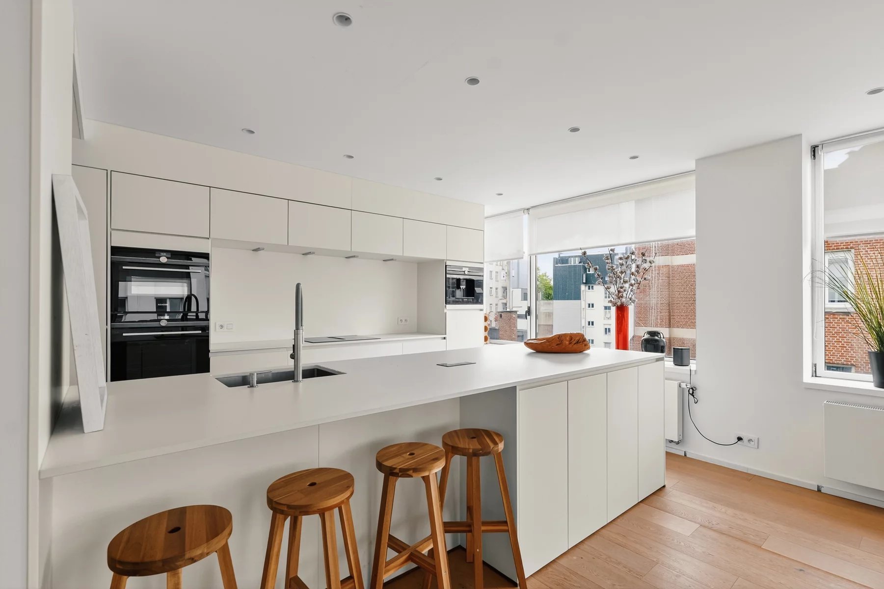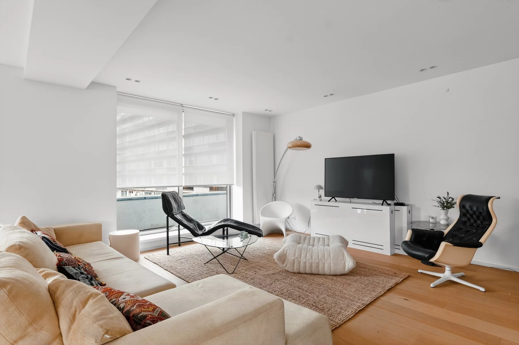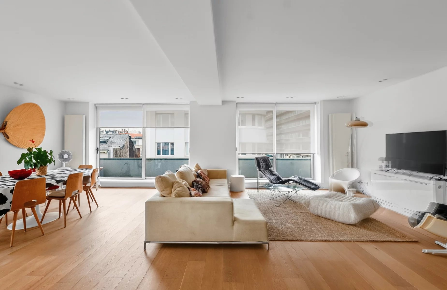 Niveau inférieur: Hall d'entrée Toilette Spacieuses réceptionsCuisine super équipée ouverte Chambre Salle de bain Niveau supérieur: Chambre Salle de douche toilette Cave au -1 Local vélo au rez Palier privatif Chaudière individuelle au gaz Possibilité d'acquérir un emplacement de voiture dans l'immeuble (25.000€)