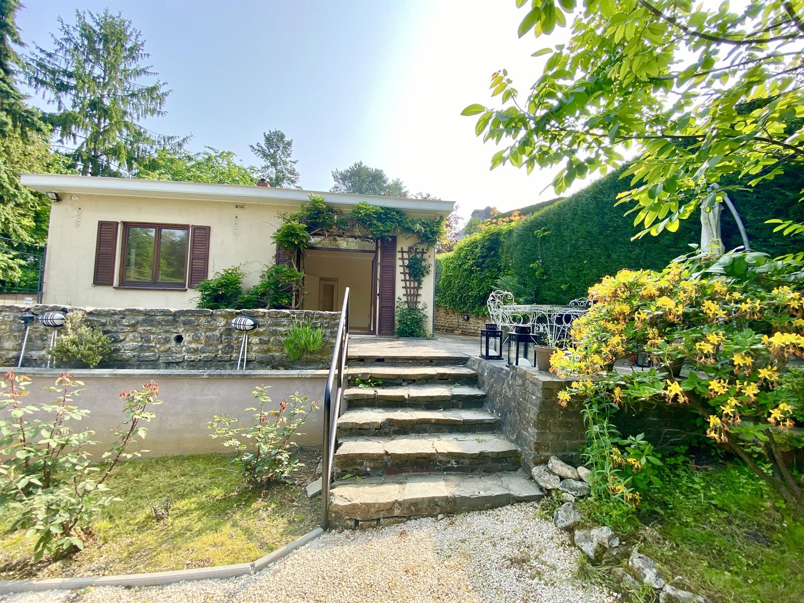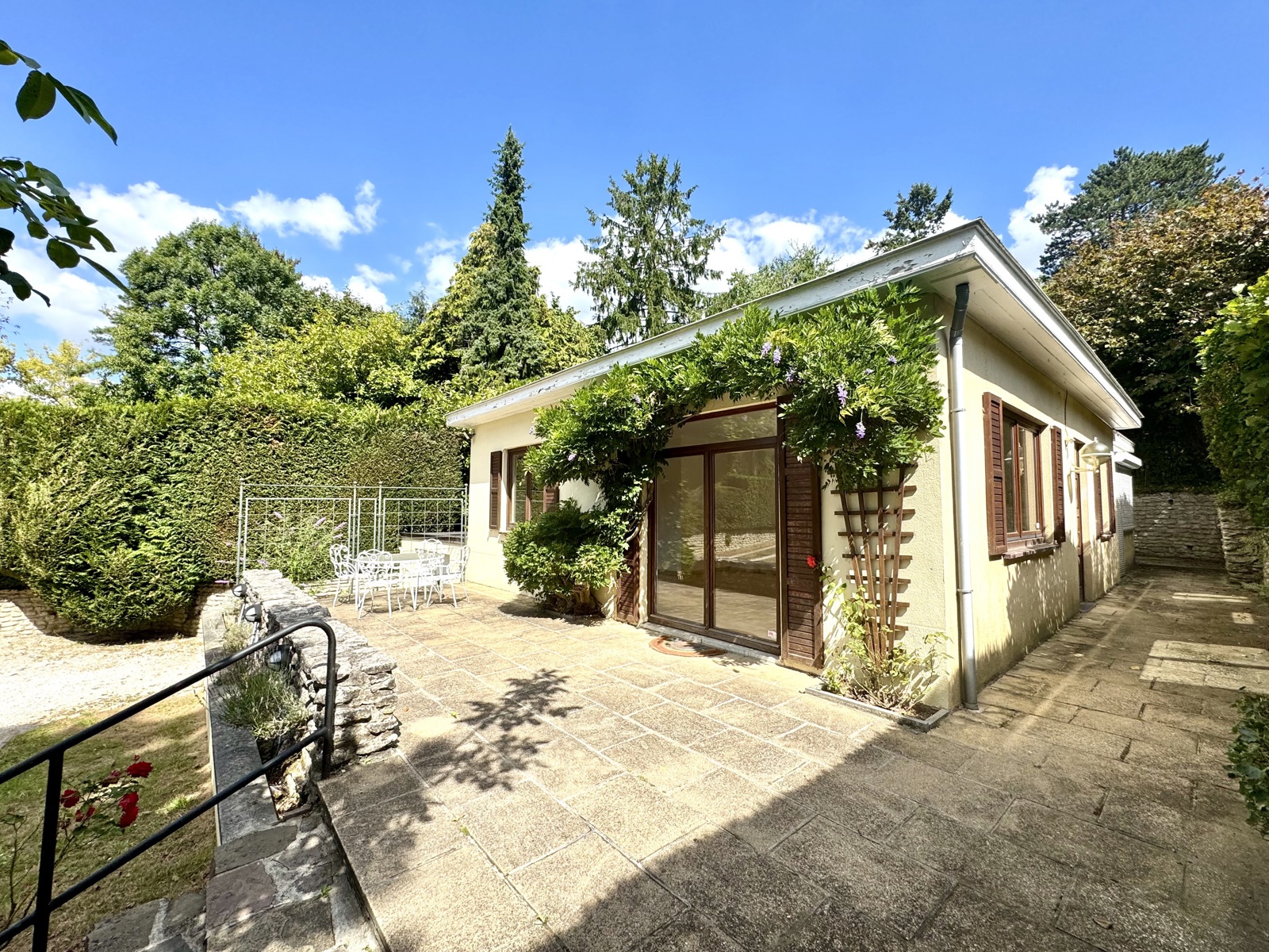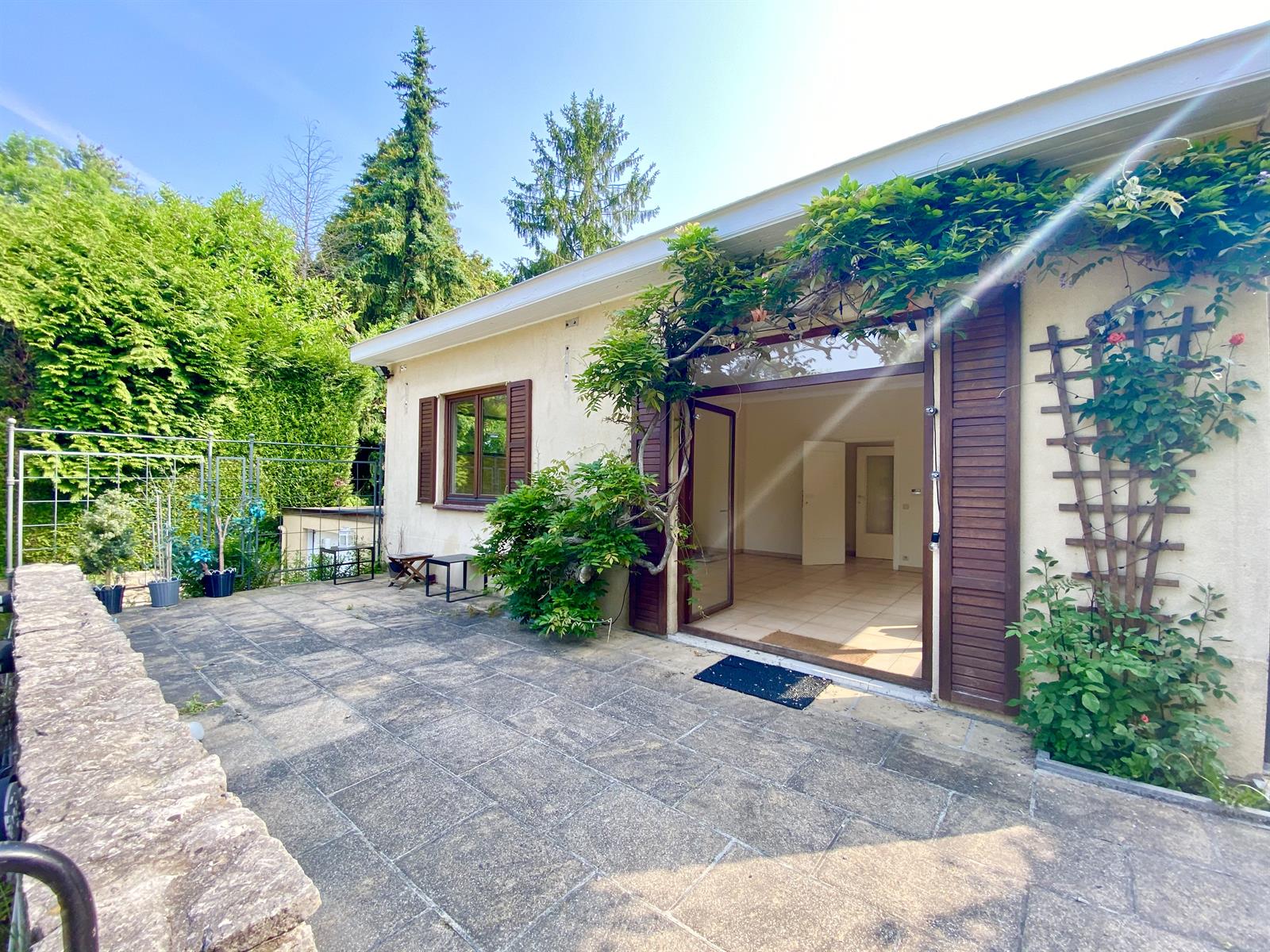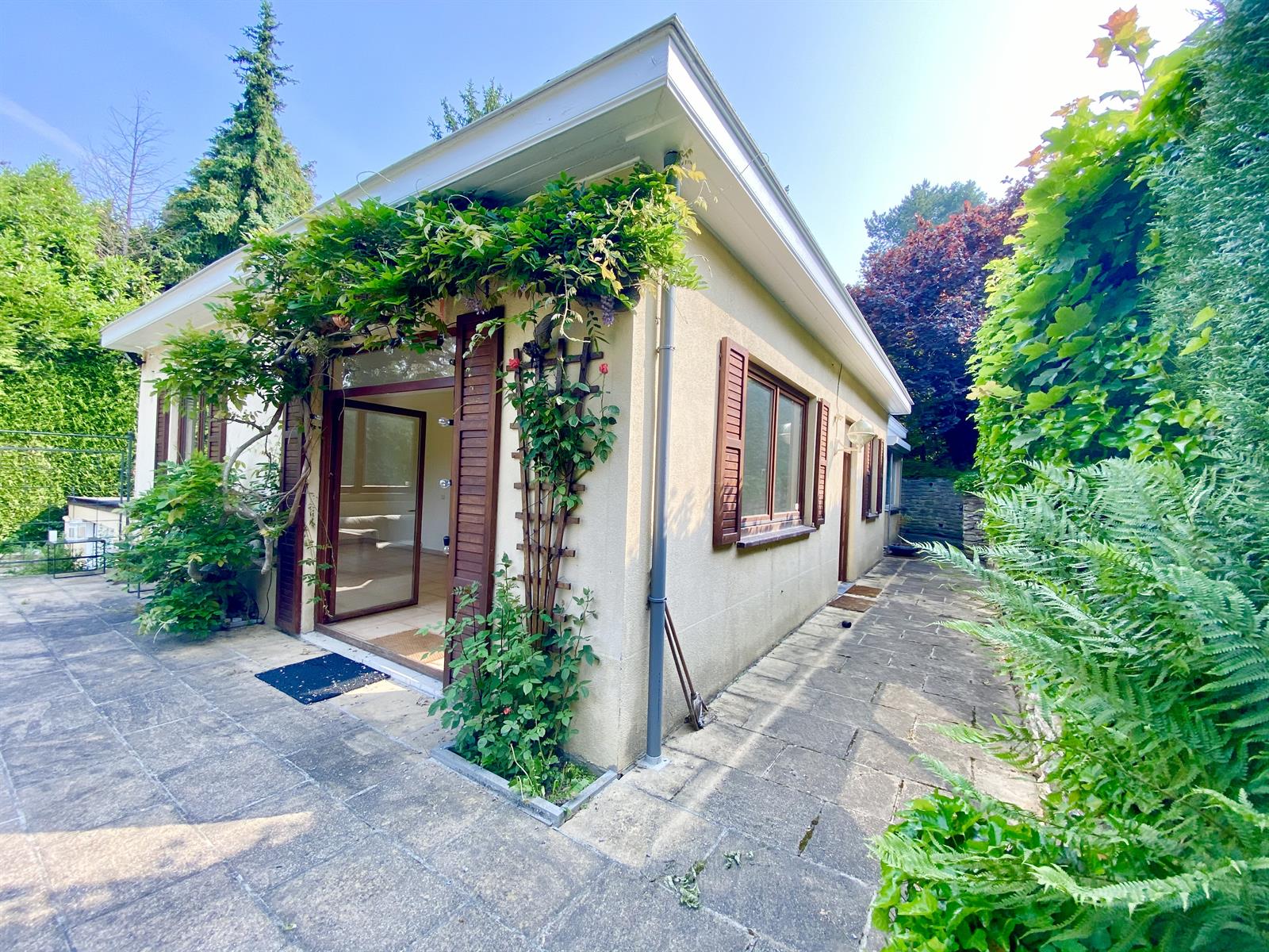 VICTOIRE-JUNOT biedt u in Ukkel/Prins d'Orange, charmante kleine villa in Provençaalse stijl van 140 m² met veel lichtinval op 11 are grond op het zuiden in een groene omgeving in de woonwijk Prins d'Orange: woon/eetkamer +- 40m² - nieuwe keuken - 3 slaapkamers met inbouwkasten (25, 8 m², 8 m²) , 1 badkamer - wasplaats - kleine zolder - kleine kelder - garage voor één auto en buitenparkeerplaats voor twee auto's - groot terras op het zuiden - mooie bloementuin - parketvloer in slaapkamers en bureau, dubbele beglazing, rolluiken, condensatieverwarming op gas, buitenverlichting - vooraan zicht op de tuin en achteraan zicht op kleine boomgaard. Automatische poort bij entree.