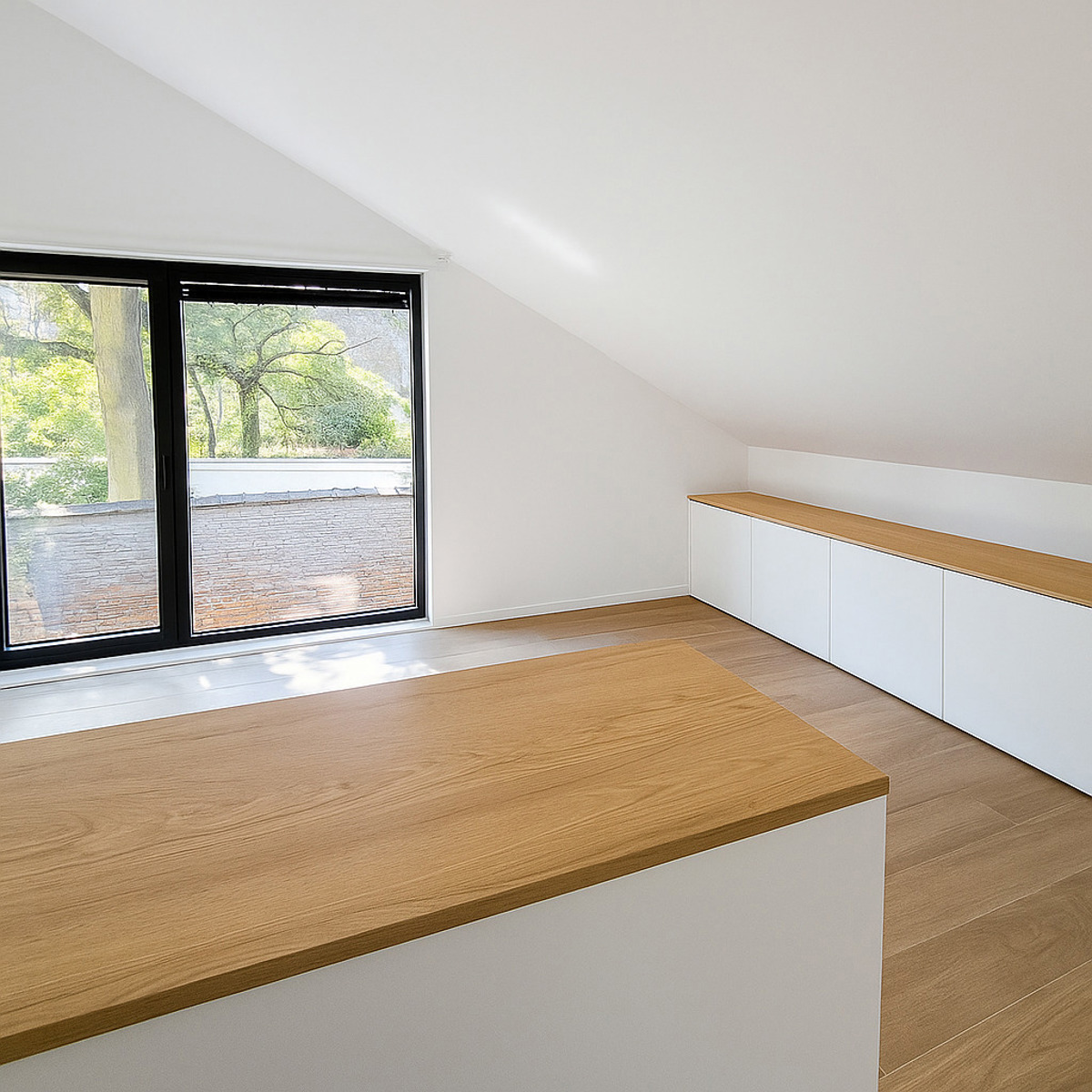 Schitterend project niet ver van de Louizalaan, ideaal gelegen nabij PARC TENBOSCH en Chatelain. De hedendaagse architectuur en de ruimtes met moderne volumes zullen u verleiden. Zeer hoogwaardige materialen op het gebied van energie en technologie. Huis in duplex van 150 m² met inbegrip van een woonkamer van 40m ² met Amerikaanse keuken met eiland die op een mooie buitenruimte van 64m ² met terras en tuin, 4 slaapkamers, kleedkamers, badkamer, douchekamer, gastentoilet, kelder, lokale fiets en parkeerplaats in de kelder: 150 euro. PEB : B+