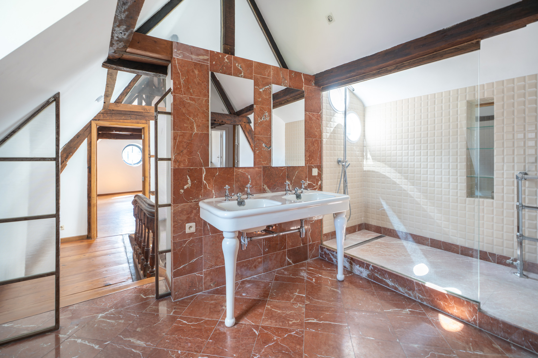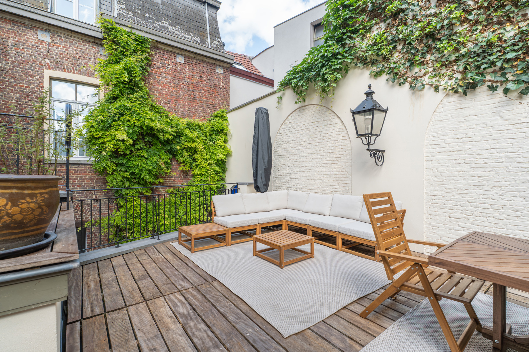 Victoire Junot heeft een exclusief aanbod voor een uitzonderlijk huis uit 1694, met 500 m² woonoppervlak, in de gewilde Sint-Katelijnewijk van Brussel. Deze zeldzame woning bestaat uit een ruime woonkamer van 60 m² met open haard, een tv-lounge van 15 m², een werkkamer van 15 m², een familiekamer van 40 m², een uitstekend uitgeruste keuken, een ingerichte wasruimte, vier slaapkamers (25, 22, 20 en 15 m²), waarvan twee zolderkamers, een dressing, een badkamer met bad en douche, twee extra doucheruimtes en vijf toiletten. Een groot terras van 50 m², alarminstallatie, intercom, videofoon, kelder, garage, dubbele beglazing en centrale verwarming op gas maken de voorzieningen compleet. Een onafhankelijk appartement met een slaapkamer, een extra doucheruimte, een toilet en een ingerichte keuken is ook inbegrepen. Beschikbaar bij Victoire Junot - www.victoire.be - Tel: 02 375 10 00