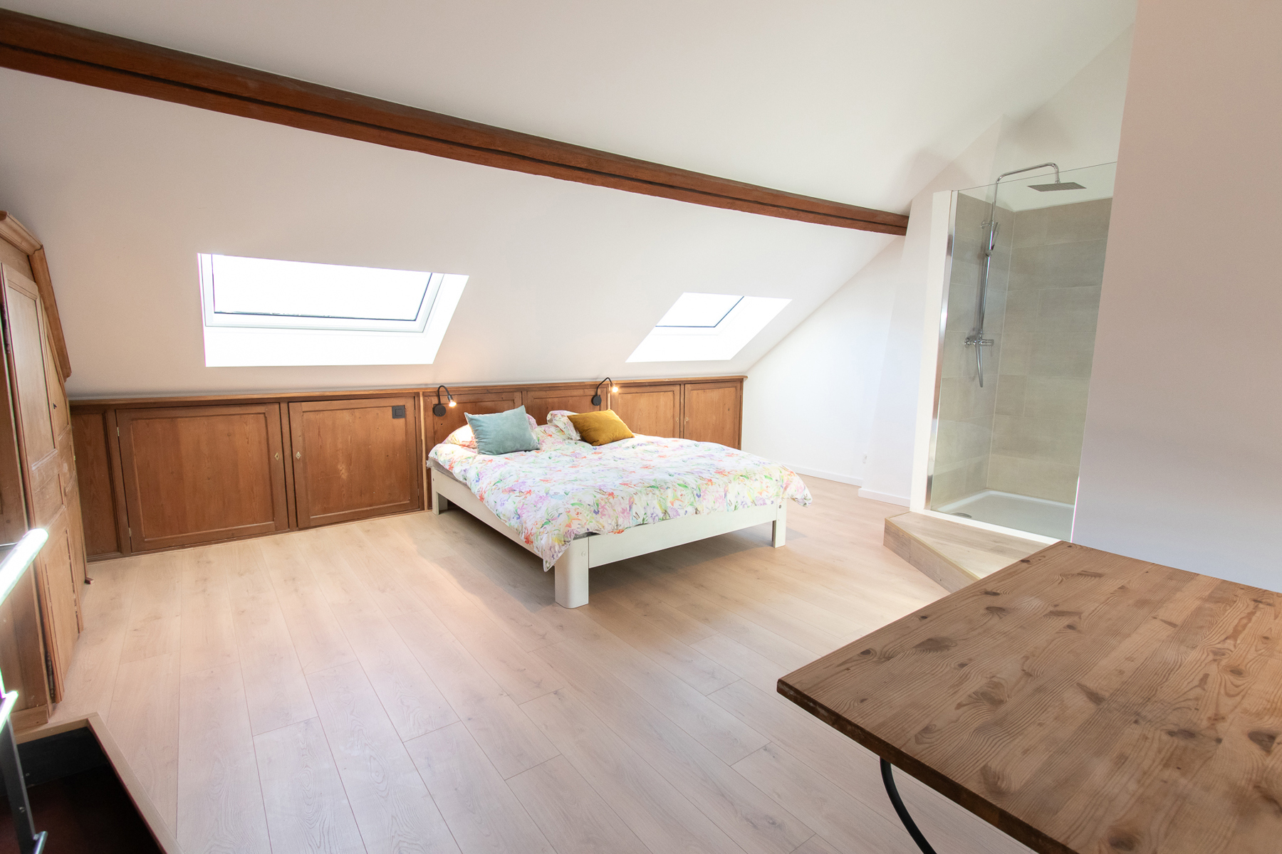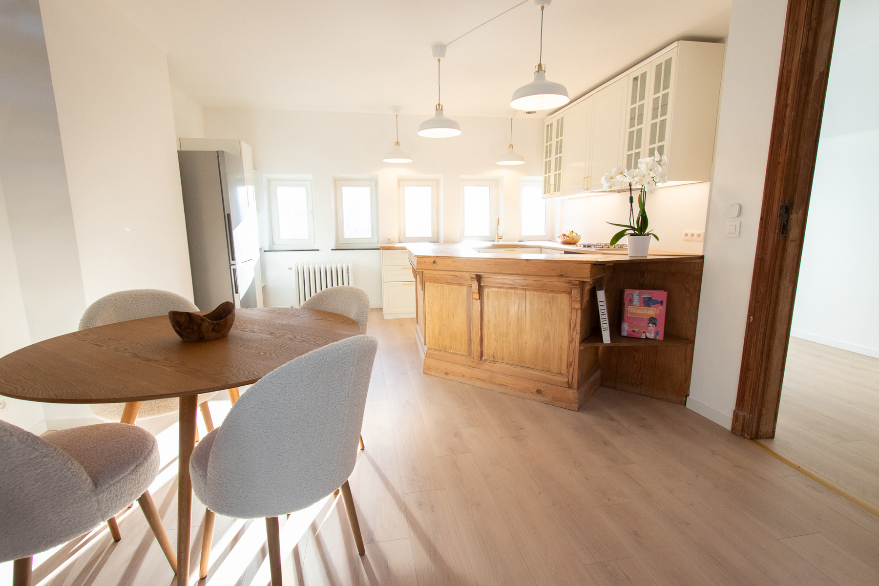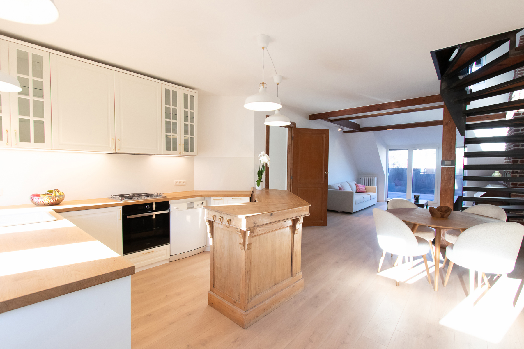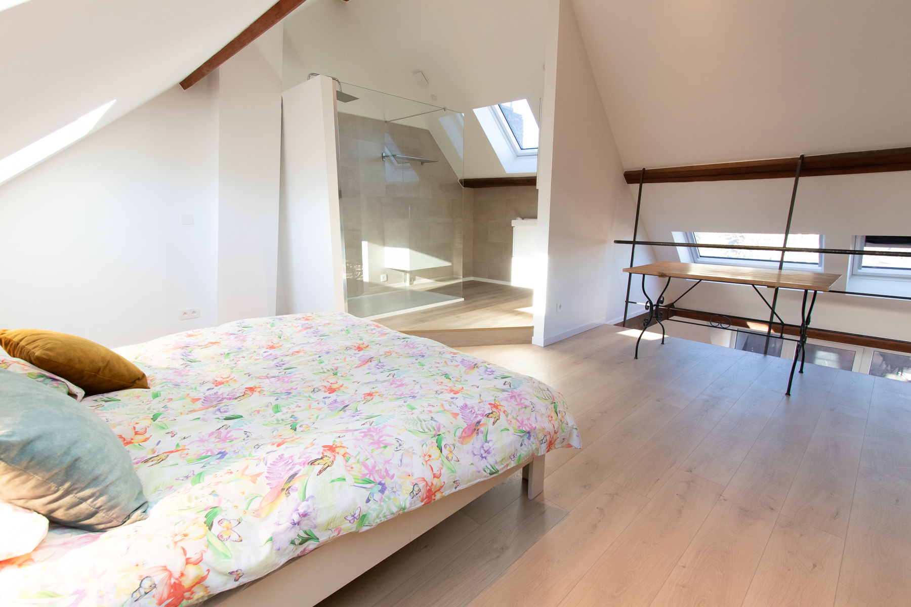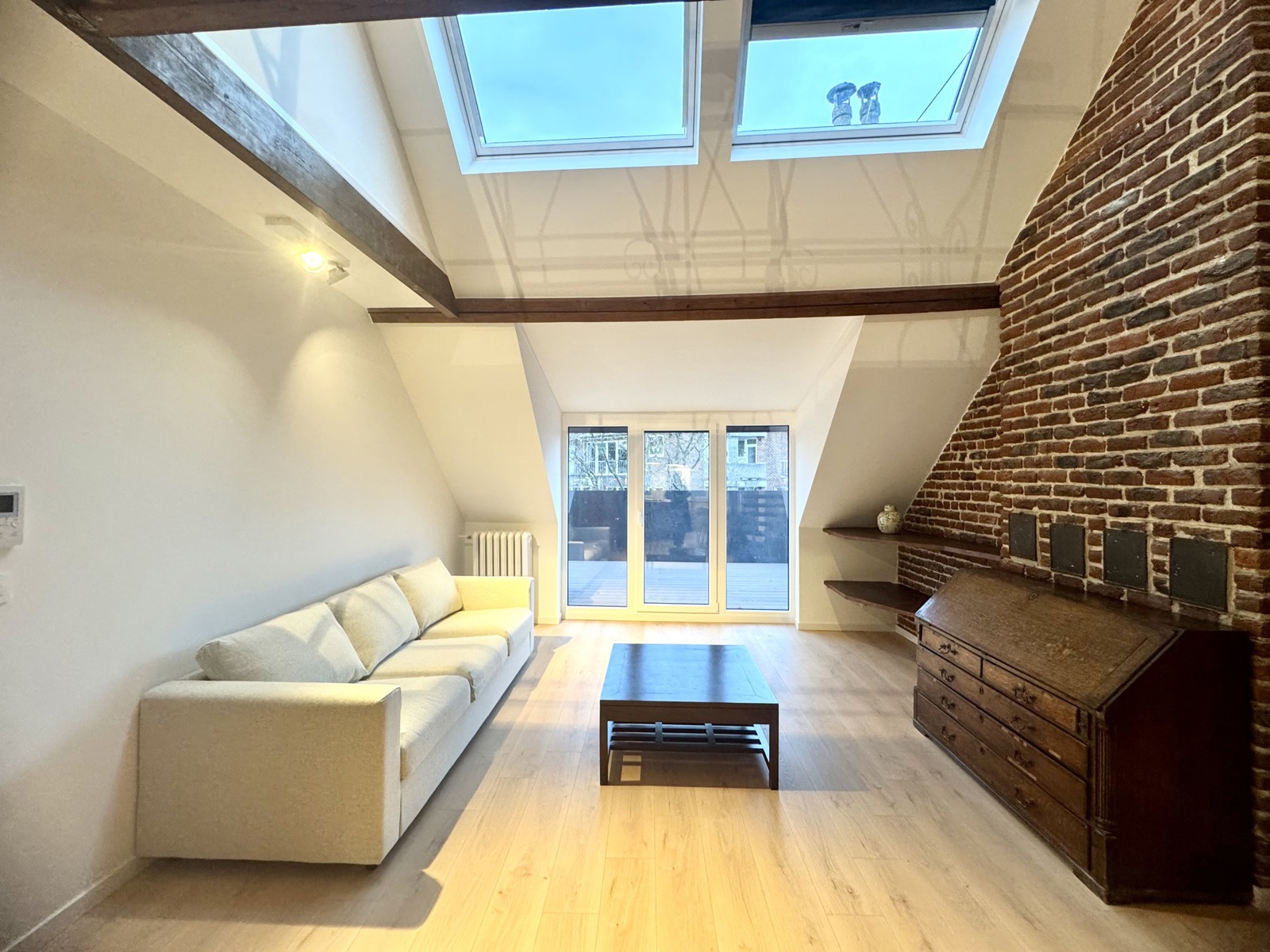 Victoire-Junot presenteert u EXCLUSIEF in Ukkel, in de wijk Churchill / Vanderkindere, op een steenworp van het Brugmannplein, winkels en openbaar vervoer, dit ruime en lichte duplex-penthouse, mooi bemeubeld en volledig gerenoveerd in 2025. Gelegen in een prachtig herenhuis uit de jaren 30, biedt het ongeveer 85 m² bewoonbare oppervlakte en bestaat het uit twee mooie en suite-kamers, waaronder een woonkamer met hoge plafonds en toegang tot een prachtig achterterras met ideale oriëntatie, evenals een mooie volledig uitgeruste open keuken. Het beschikt ook over een grote slaapkamer (ca. 22 m²), een mooie doucheruimte, een klein kamertje dat kan dienen als bureau, dressing of babykamer, een washoek . Parket, dubbele beglazing en individuele gasverwarming maken het geheel compleet. Zeer lage lasten: €50/maand. Uitstekende EPC: C. te ontdekken bij Victoire - Junot - www.victoire.be- Tel: 02 375 10 10