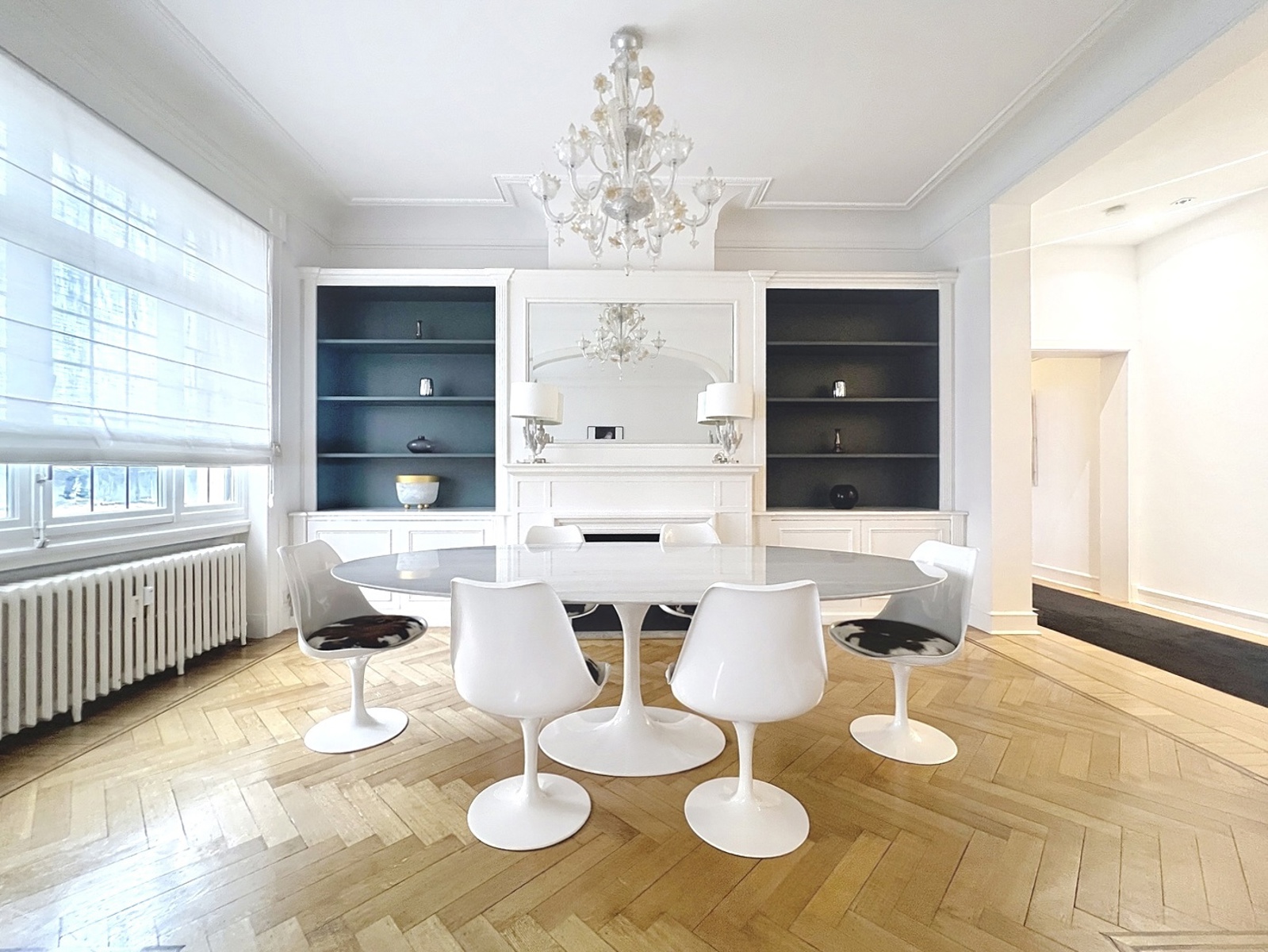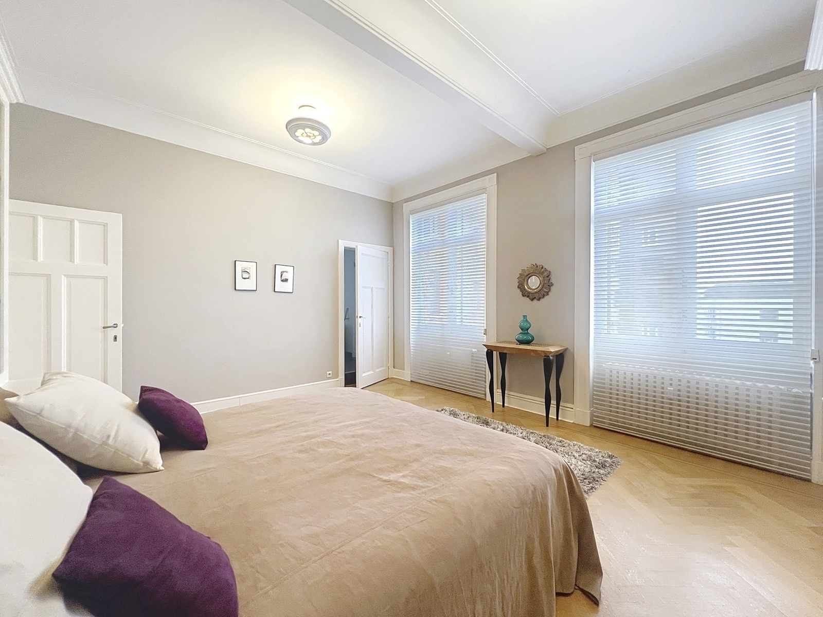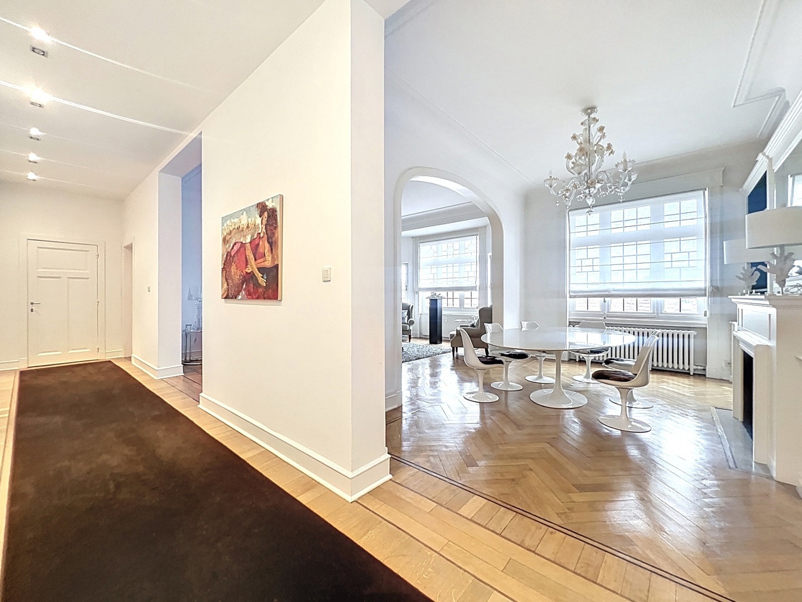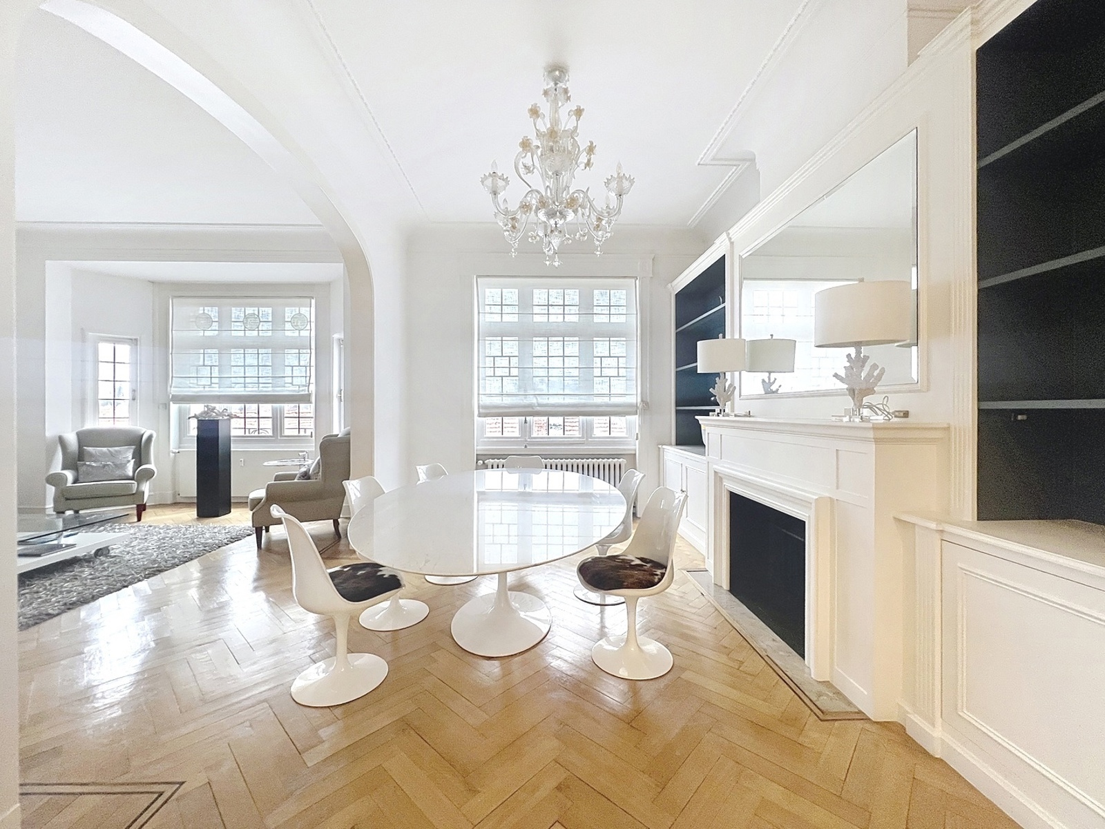 Victoire Junot presenteert u, in de onmiddellijke nabijheid van de Europese Wijk, een prachtig gemeubeld karakterappartement gelegen op de 4e verdieping van een elegant Art-Déco gebouw. Dit 170 m² appartement biedt een ruime en lichtrijke woonkamer van 45 m², een eetkamer met ingebouwde boekenkast en decoratieve haard, evenals een volledig uitgeruste keuken met ontbijthoek. Het beschikt tevens over een ouderlijke suite met dressing en privébadkamer met toilet, een tweede slaapkamer, een doucheruimte met toilet, en een tweede dressing. De afwerkingen zijn bijzonder verfijnd: eiken parket, elektrische rolluiken, videophone, alarm, veiligheidsdeur, en decoratieve vitrages en gordijnen. Een uitzonderlijk pand dat u niet mag missen! Te ontdekken bij Victoire - Junot - www.victoire.be - Tel.: 02 375 10 00