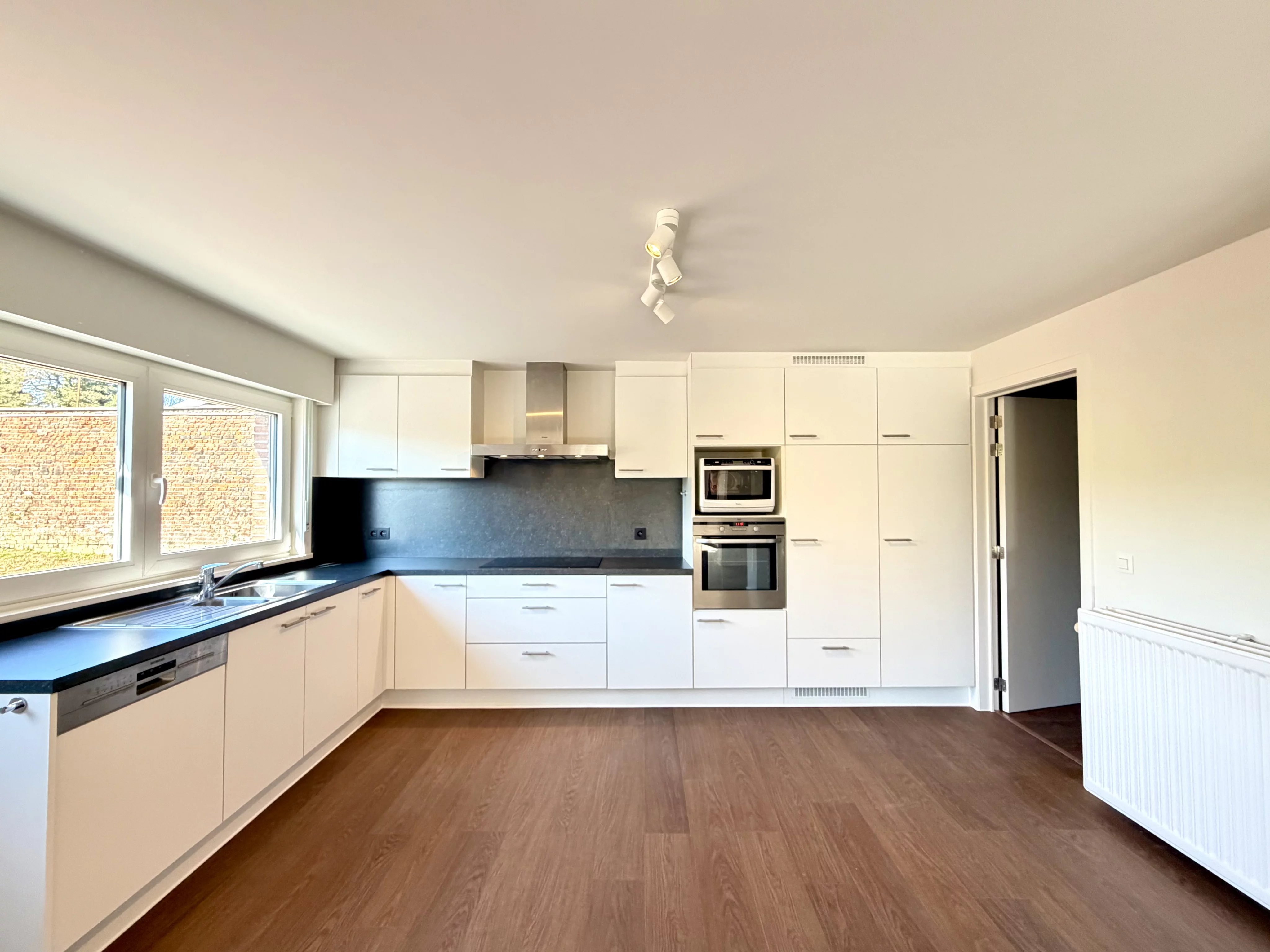Victoire Junot stelt u voor deze ruime halfopen bebouwing, ideaal gelegen in een groene en bijzonder rustige omgeving, vlak bij het Zoniënwoud en op enkele minuten van het centrum van Duisburg, winkels en openbaar vervoer. De woning werd recent opgefrist (2025) en biedt mooie, lichtrijke ruimtes die ideaal zijn voor een gezin. Op het gelijkvloers bevindt zich een inkomhal met apart toilet, een ruime leefruimte met volledig uitgeruste open keuken met toegang tot het terras en de grote zuidwest georiënteerde tuin, een wasruimte, een bureau en extra bergruimte. Op de verdieping bevinden zich drie comfortabele slaapkamers, een douchekamer met dubbele lavabo, een apart toilet en een dressing/opbergruimte. Via een vaste trap bereikt u de zeer ruime zolder, ideaal als extra opslagruimte. De woning beschikt eveneens over een kelder, een garage, een waterverzachter, een recente gascondensatieketel en een robotmaaier die inbegrepen is in de huurprijs. Een comfortabele gezinswoning in een rustige en groene omgeving, met een vlotte verbinding naar Tervuren en Overijse. Onmiddellijk beschikbaar – EPC: B. Zeker een bezoek waard!