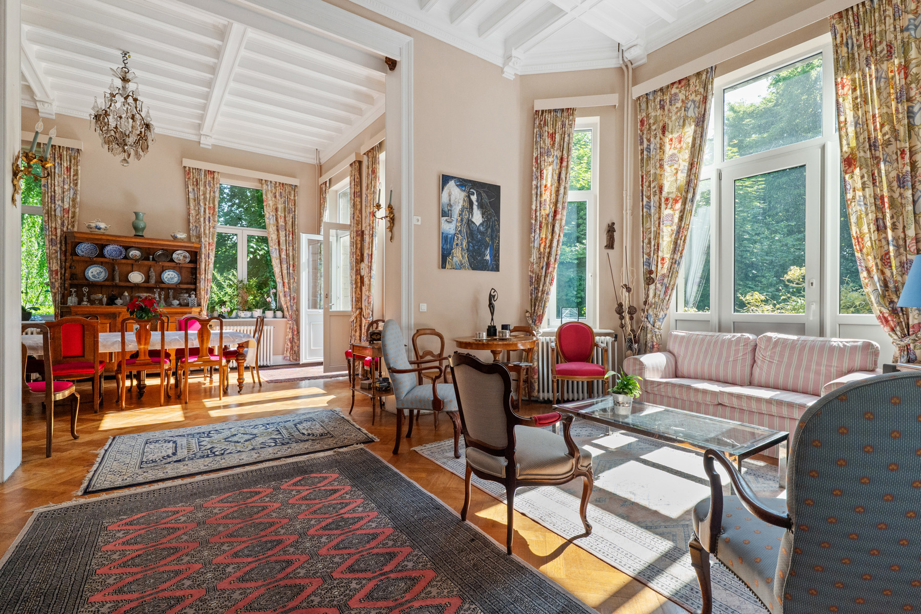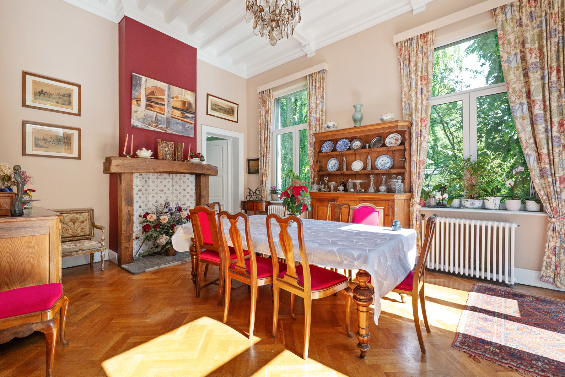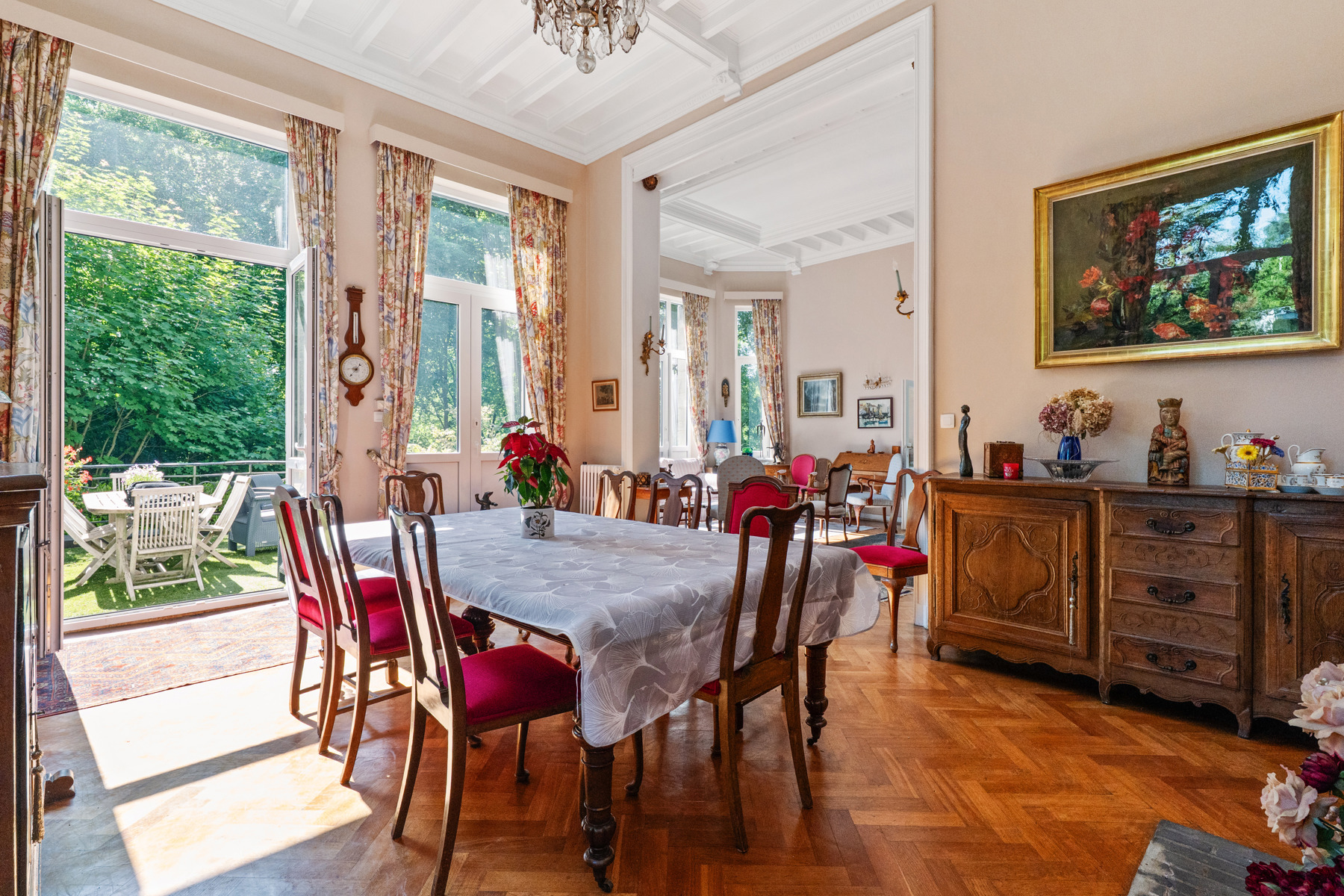 Ukkel: Victoire - Junot stelt u exclusief deze karaktervolle woning voor, gebouwd in de 19e eeuw op een perceel van ± 80 are. De woning is gerenoveerd en combineert oud en nieuw. De uitgestrekte tuin omvat beboste gedeelten, een groot overdekt en verwarmd zwembad, weelderige groenzones, kinderspeelplaats. Gelijkvloers: Ruime inkomhal, grote ontvangstruimtes, salon, eetkamer acces tot het terras, prachtig uitzicht op de tuin en eeuwenoude bomen, wintertuin, volledig uitgeruste keuken. Eerste verdieping: Master suite met open haard, badkamer met douchekamer, toilet , tv-salon met open haard en toegang tot het terras met zonnepanelen, buro. Tweede verdieping: Drie slaapkamers, speelkamer, badkamer (enkele treden hoger), douchekamer, acces tot de torenkamer en zolder. Overige ruimtes: Zolder, ruime kelders, stookruimte met condensatieketel op gas, voorraadkamer, waskamer, kelder en toegang tot de tuin. Automatische poort met parkeermogelijkheid voor 7 wagens. Naast de woning bevindt zich een atelier. Het park is volledig omheind en toegankelijk via een automatische poort. EPC: G