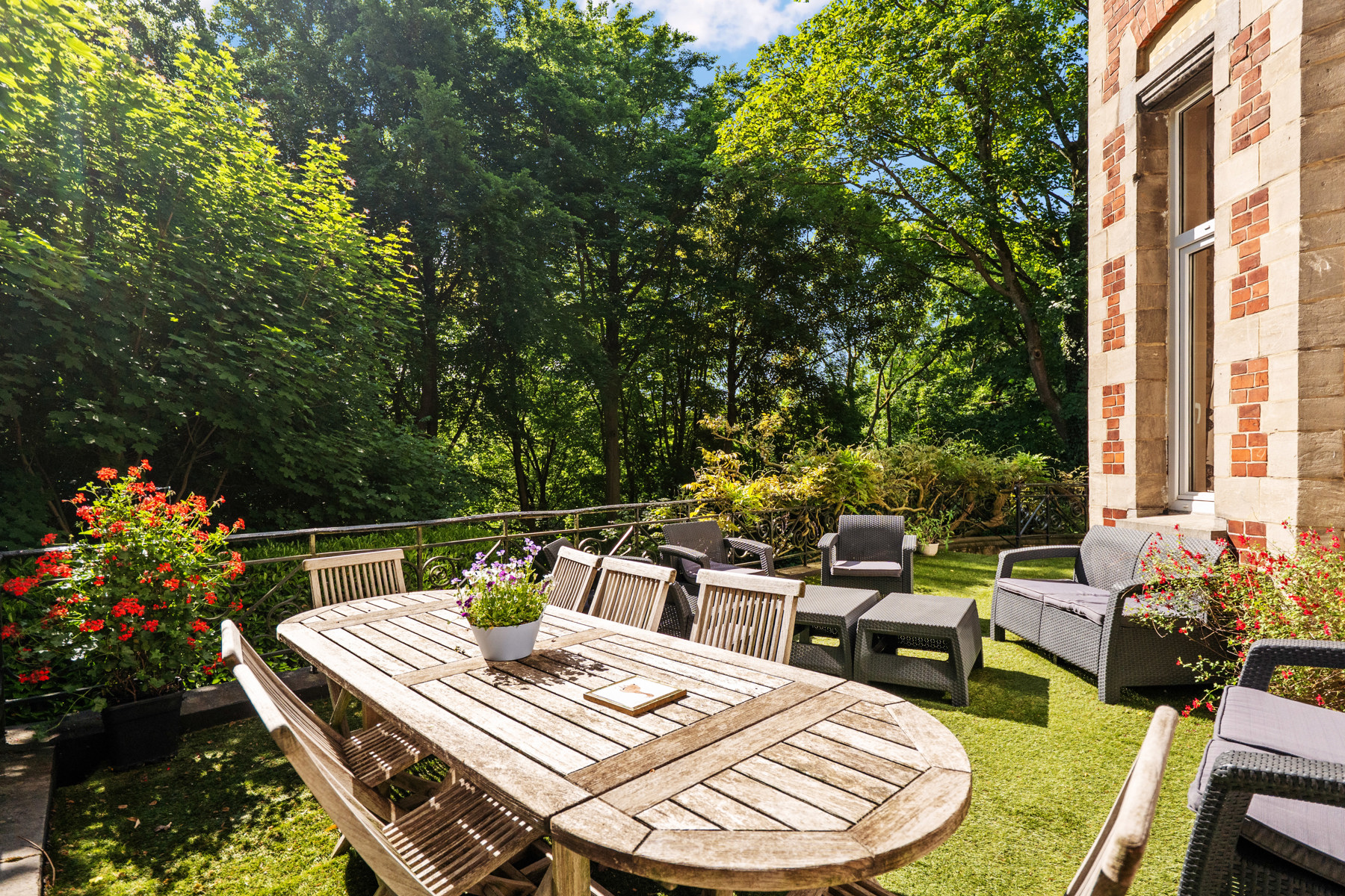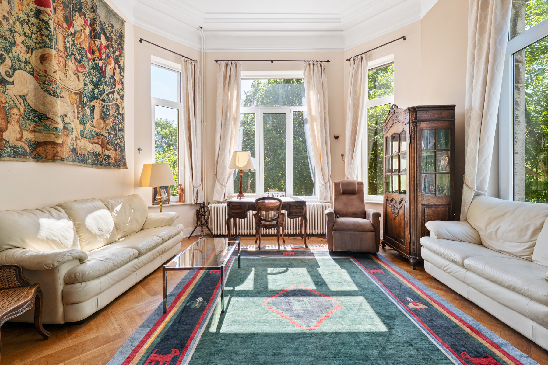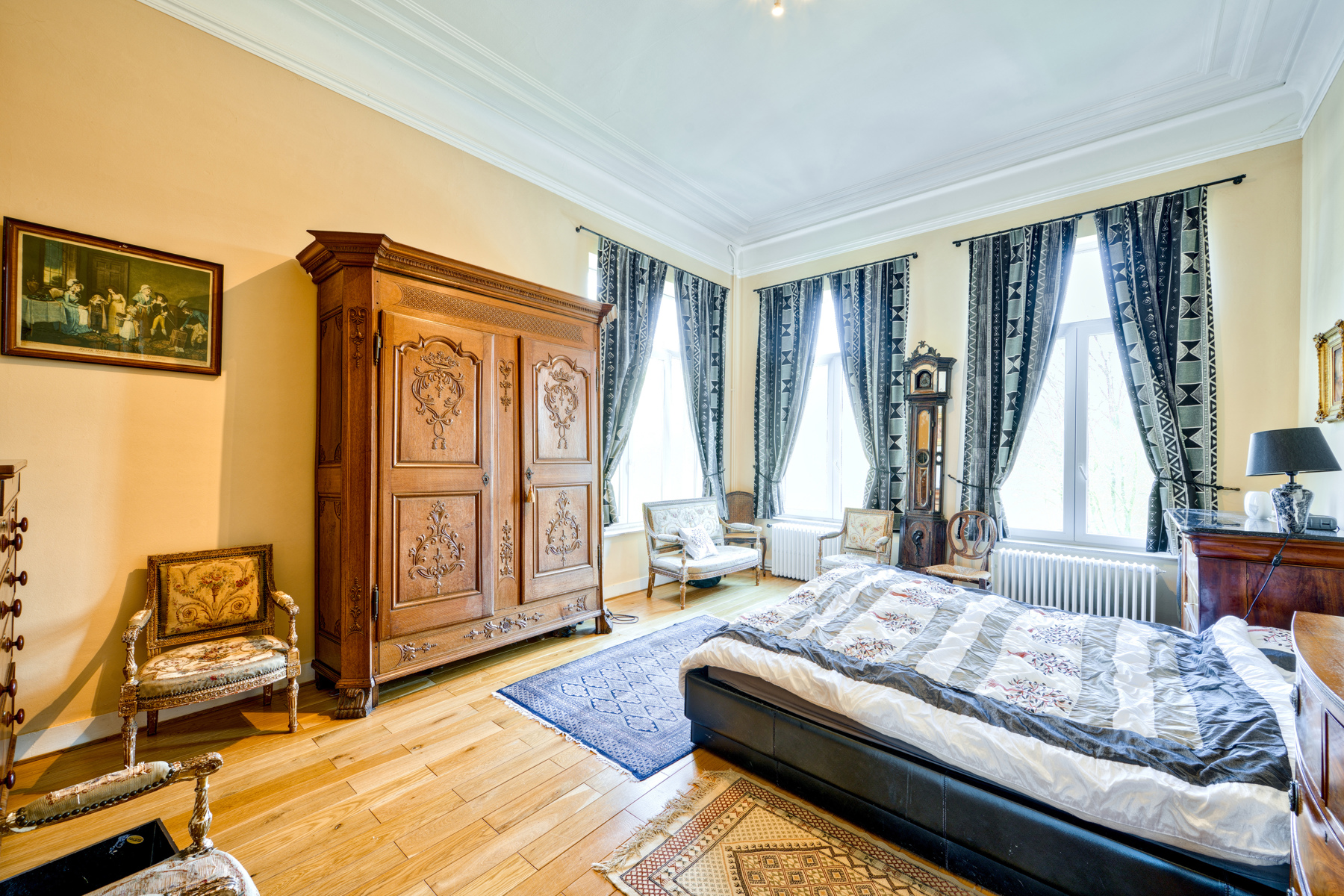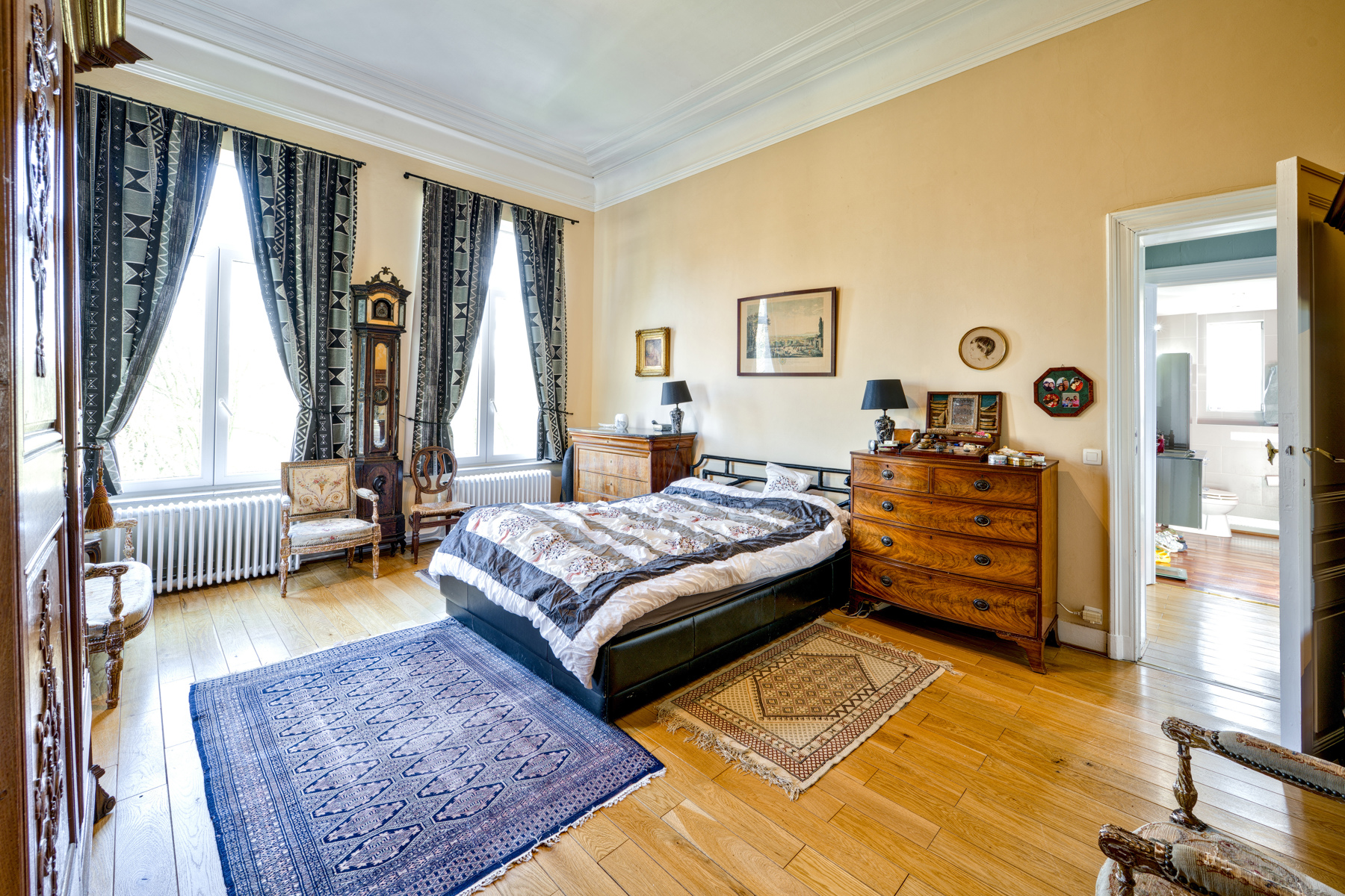 Ukkel: Victoire - Junot stelt u exclusief deze karaktervolle woning voor, gebouwd in de 19e eeuw op een perceel van ± 80 are. De woning is gerenoveerd en combineert oud en nieuw. De uitgestrekte tuin omvat beboste gedeelten, een groot overdekt en verwarmd zwembad, weelderige groenzones, kinderspeelplaats. Gelijkvloers: Ruime inkomhal, grote ontvangstruimtes, salon, eetkamer acces tot het terras, prachtig uitzicht op de tuin en eeuwenoude bomen, wintertuin, volledig uitgeruste keuken. Eerste verdieping: Master suite met open haard, badkamer met douchekamer, toilet , tv-salon met open haard en toegang tot het terras met zonnepanelen, buro. Tweede verdieping: Drie slaapkamers, speelkamer, badkamer (enkele treden hoger), douchekamer, acces tot de torenkamer en zolder. Overige ruimtes: Zolder, ruime kelders, stookruimte met condensatieketel op gas, voorraadkamer, waskamer, kelder en toegang tot de tuin. Automatische poort met parkeermogelijkheid voor 7 wagens. Naast de woning bevindt zich een atelier. Het park is volledig omheind en toegankelijk via een automatische poort. EPC: G