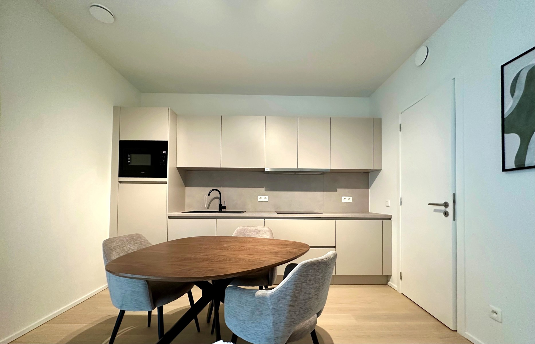 Victoire-Junot nodigt u uit om deze prachtige STUDIO van 48 m² met grote terrassen in het project “METROPOLITAN” te ontdekken, gelegen tegenover de prachtige tuinen van de Ter Kameren Abdij. Gelegen op de 2de verdiep. aan de achterzijde van het project, op de binnenplaats, beschikt het over een hal met een klein vestaire, gevolgd door een mooie woonkamer met een super uitgeruste, open keuken, en een slaapgedeelte dat uitkomt op het grote, rustige terras. Deze studio wordt gecompleteerd door een grote doucheruimte (met een douche, een apart toilet en een enkele wastafel), een opslagruimte en een wasruimte/technische ruimte. Het 9 verdiepingen tellende gebouw valt op door zijn moderne, elegante en minimalistische architectuur, met veel natuurlijk licht dankzij de grote erkers. Ontworpen met kwaliteitsmaterialen en -uitrusting, het garandeert tot elk appartement optimaal comfort terwijl de energievoetafdruk wordt verkleind met installaties zoals warmtepompenenergie, zonnepanelen, driedubbele beglazing en een regenwatertank. Intermediair EPC A . Verkoop van de grond onderworpen aan 12,5% registratiebelasting en van de gebouwen onderworpen aan 21% BTW.