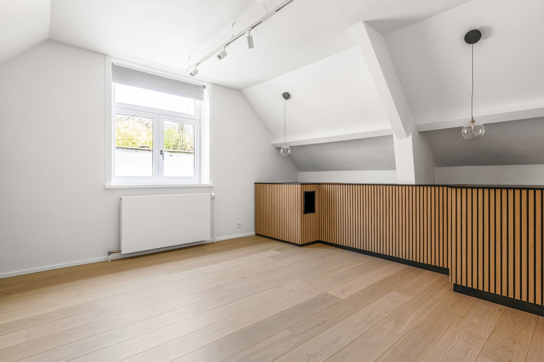 Victoire-Junot stelt met genoegen deze karaktervolle woning aan u voor, gelegen in een uitzonderlijk groene omgeving in het hart van Sint-Pieters-Woluwe, volledig gerenoveerd in 2024. Dit uniek domein van 2,32 hectare, een echt erfgoed uit het Belgische industriële tijdperk, bestaat uit 12 prestigieuze residenties, uitgestrekte aangelegde tuinen en een vijver. Het biedt u een exclusieve leefomgeving. Deze vrijstaande woning met een bewoonbare oppervlakte van 238 m² zal u charmeren door haar volumes en warme sfeer. Op het gelijkvloers bevinden zich: een inkomhal, een ruime leefruimte met een lichtrijke woonkamer en een perfect ingerichte en uitgeruste keuken, evenals een eerste suite met een moderne douchekamer en een apart toilet. Op de eerste verdieping bieden twee grote slaapkamers mooie volumes, talrijke ingebouwde kasten en optimaal comfort. Een badkamer met toilet, een bureau en een dressing vervolledigen deze nachtruimte. Naast haar hoogwaardige afwerking beschikt de woning over een adembenemend uitzicht op het groene park, een private ingang, een privébinnenplaats en een aparte bijgebouw die bijdraagt aan de unieke charme van deze plek. Mogelijkheid om twee parkeerplaatsen aan te kopen (20.000 euro/parkeerplaats). EPB: C