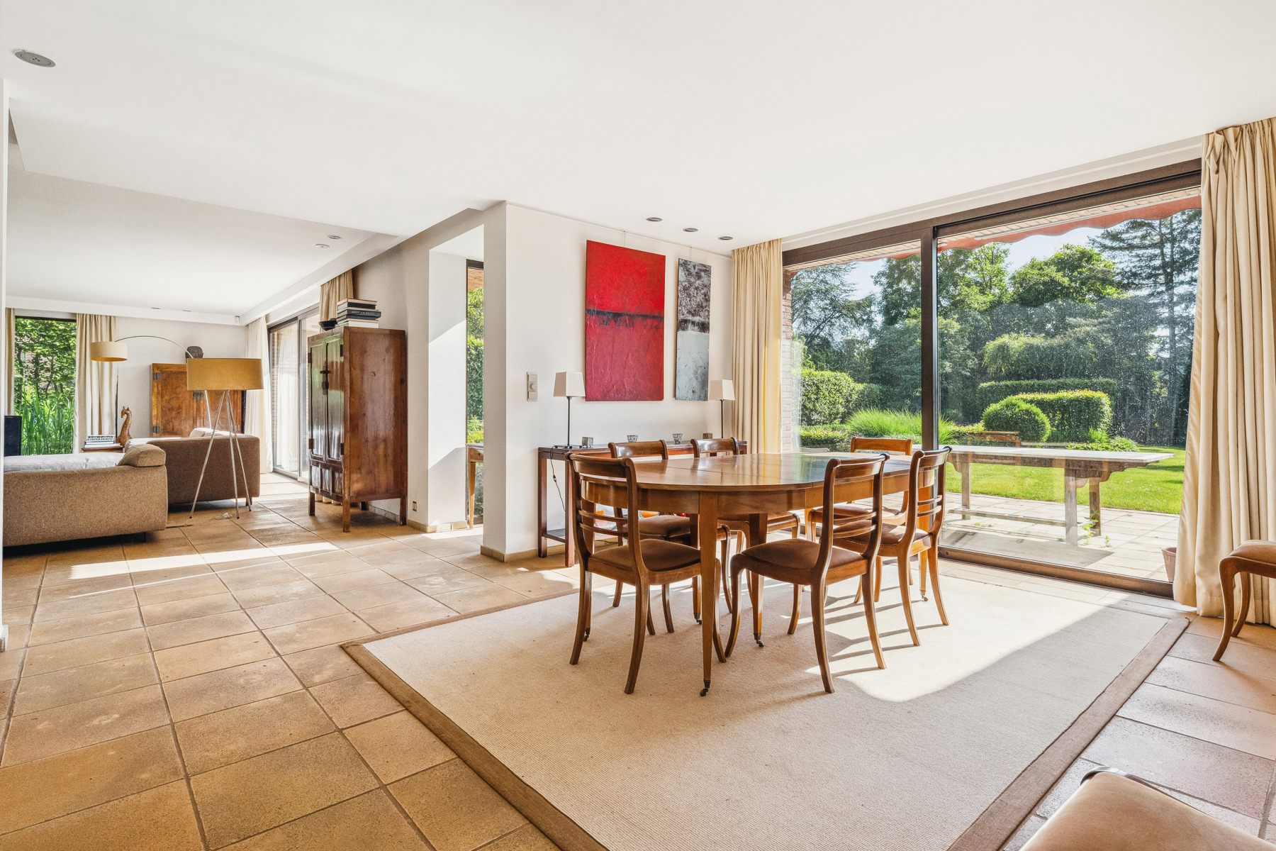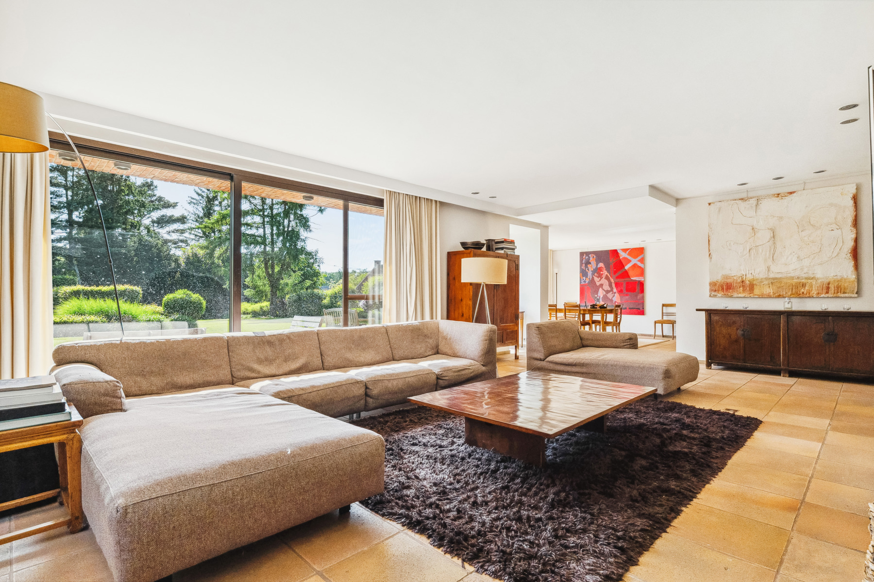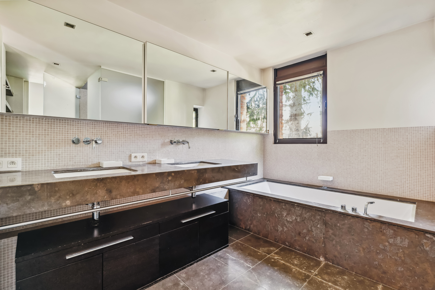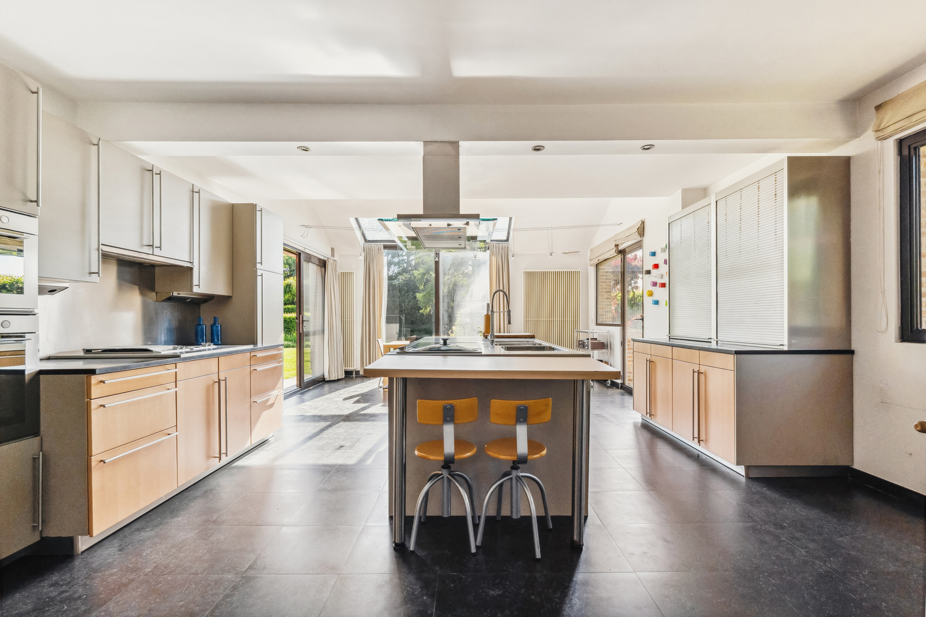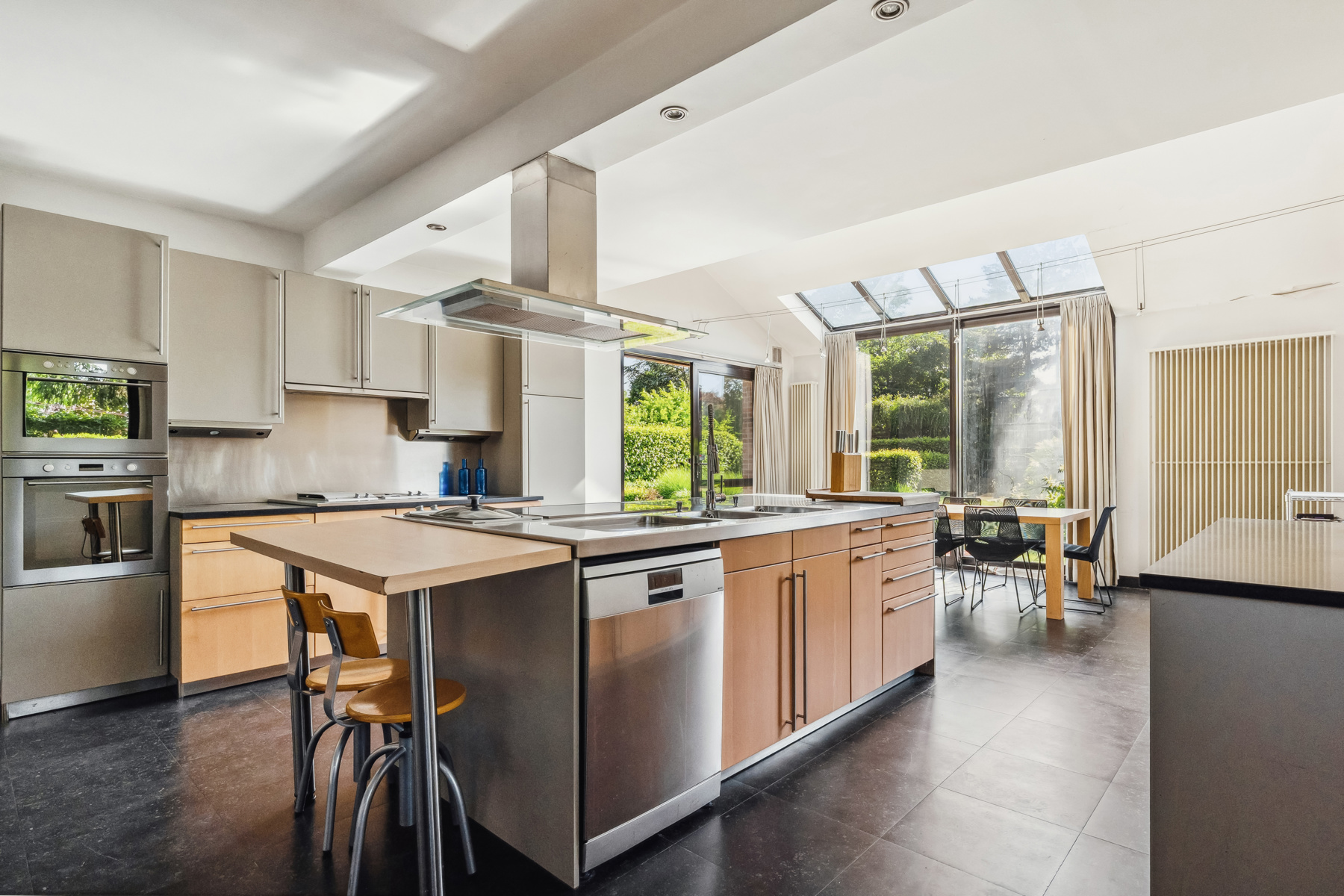 Wezembeek: Victoire Junot stelt u deze open bebouwing voor, gelegen in een ware groene oase. Gebouwd op een perceel van ca. 26 are, biedt deze woning een bewoonbare oppervlakte van ± 385 m². De indeling is als volgt: Gelijkvloers: inkomhal, ruime en lichtrijke ontvangstruimtes van ± 75 m² die uitgeven op de zuidgerichte tuin met zwembad, zeer grote volledig uitgeruste Bulthaup-keuken van ± 70 m², wasruimte en bureau. Tussenverdieping: ouderlijke suite met dressing en aangrenzende badkamer, 4 slaapkamers, met de mogelijkheid om 2 extra badkamers in te richten. Zolder: opslagruimte. Kelderverdieping: garage voor 2 wagens, douchekamer met toilet, stookruimte en kelders. EPC: C.