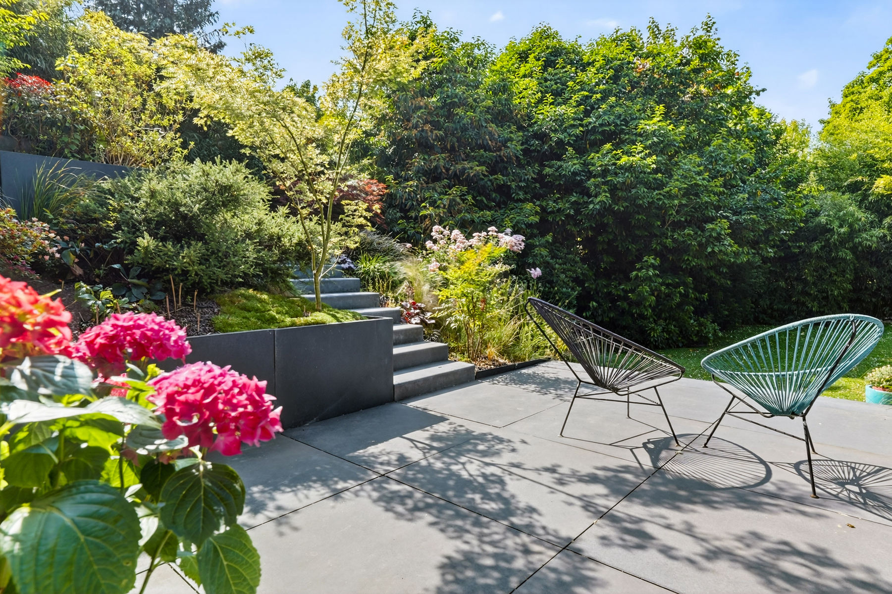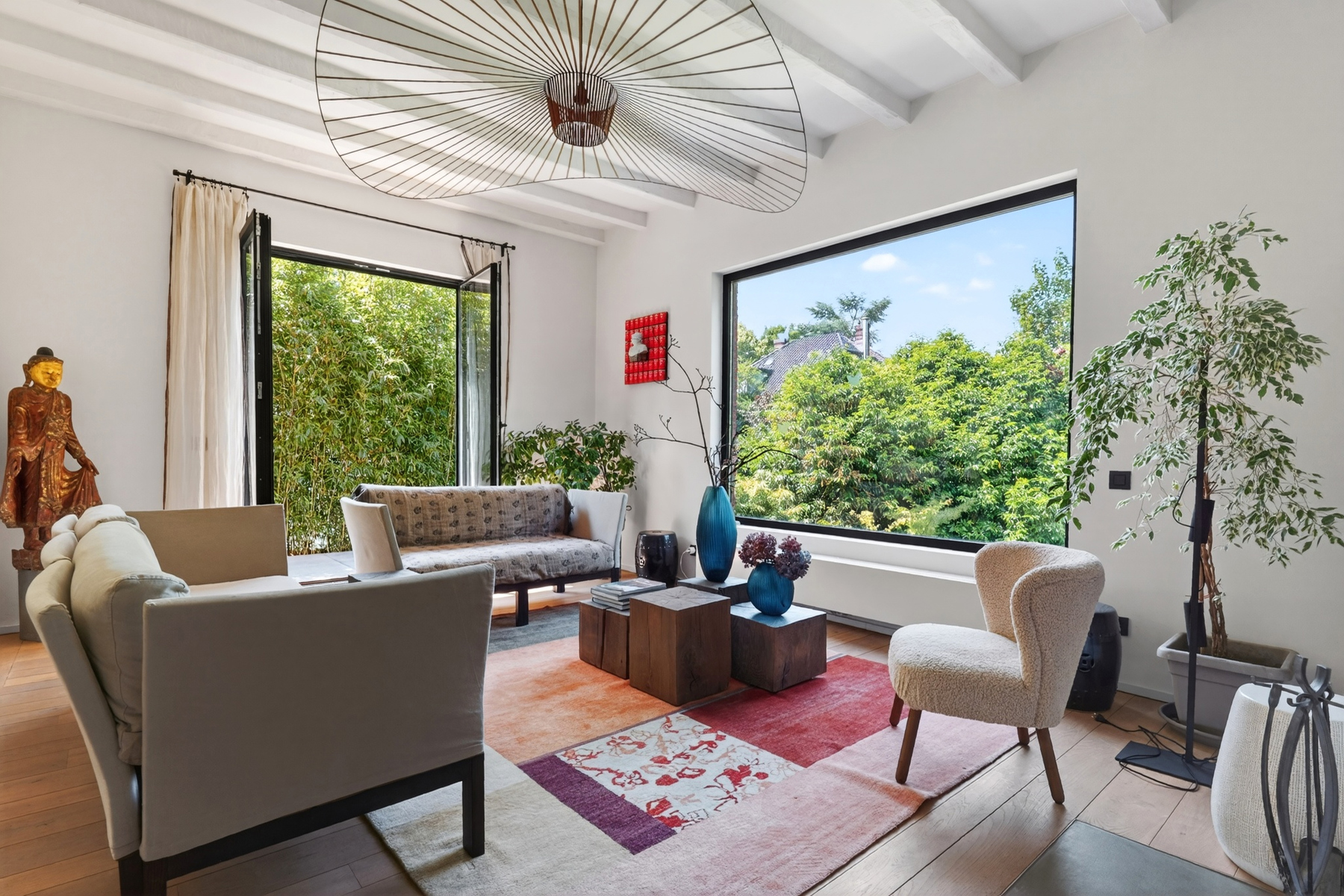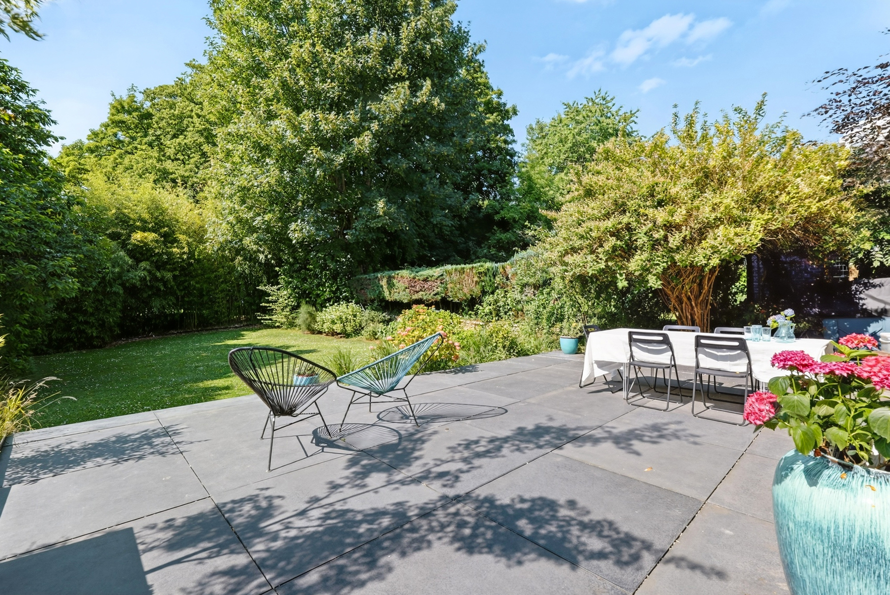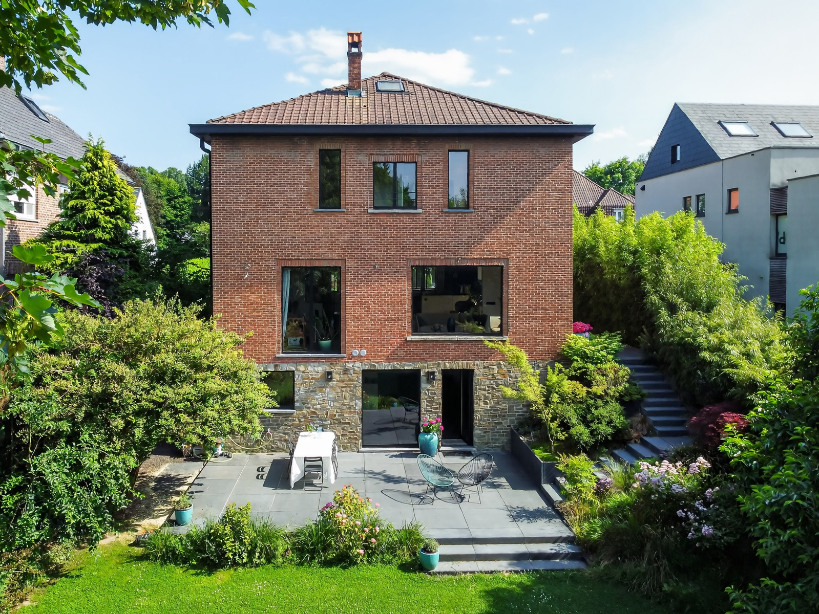 Deze elegante villa uit 1950 ligt in het hart van de gewilde wijk Fort-Jaco en onderging in 2016 een grondige renovatie van kwaliteit. Gelegen op een perceel van 7 ares, geniet het van een rustige omgeving, maar toch dicht bij de winkels, scholen en groene ruimtes van deze zeer gewilde woonwijk. Gerenoveerd in een eigentijdse stijl, met grote erkers die de hele dag voor uitzonderlijk veel licht zorgen. Buiten omringen een tuin en 2 terrassen het huis, wat een echte oase van rust creëert. Binnen ontvouwt de ruimte zich op een zeer comfortabele manier. De begane grond heeft een uitnodigende hal die leidt naar een lichte woonkamer met prachtig uitzicht over de tuin. De volledig uitgeruste keuken is functioneel, met een gezellige eethoek. Een open haard scheidt de woonkamer van de studeerkamer, waar het uitzicht net zo prachtig is. Boven leidt een overloop naar 4 ruime slaapkamers met ingebouwde opbergruimte, een badkamer en suite voor de ouderslaapkamer en twee doucheruimtes. Op de 2e verdieping is er een inrichtbare zolder . De kelderverdieping (tuinniveau), die volledig is verbouwd, biedt een prachtige multifunctionele ruimte (familiekamer, speelkamer, vrij beroep), doucheruimte met hammam, wasruimte en stookruimte. Garage + parkeerplaats. Met zijn kwaliteitskenmerken en serene omgeving vertegenwoordigt deze villa de perfecte balans tussen modern comfort en levenskunst in Fort-Jaco. EPB D. Elektriciteit conform.