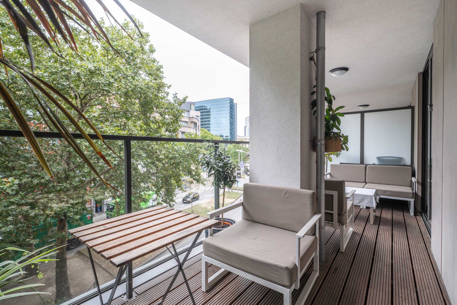 IN OPTIE !!! In het hart van de Europese wijk biedt Victoire-Junot u dit lichte appartement van 91m² (PEB) met een mooi terras van 12m². Gelegen in een luxe residentie gebouwd in 2014, biedt deze woning een inkomhal uitgerust met een vestiaire en een toilet, een aangename woonkamer met een prachtig ingerichte open keuken en toegang tot het terras op het oosten, een wasruimte, twee ruime slaapkamers (±14m² & ±10m²) ook met toegang tot het terras en een volledige badkamer met douche. Parkeerplaats in de kelder vereist (€25.000). Kelder. PEB B+ en elektriciteit conform. !!!KADASTRAAL INGESCHREVEN OP 1000 BRUSSEL!!!