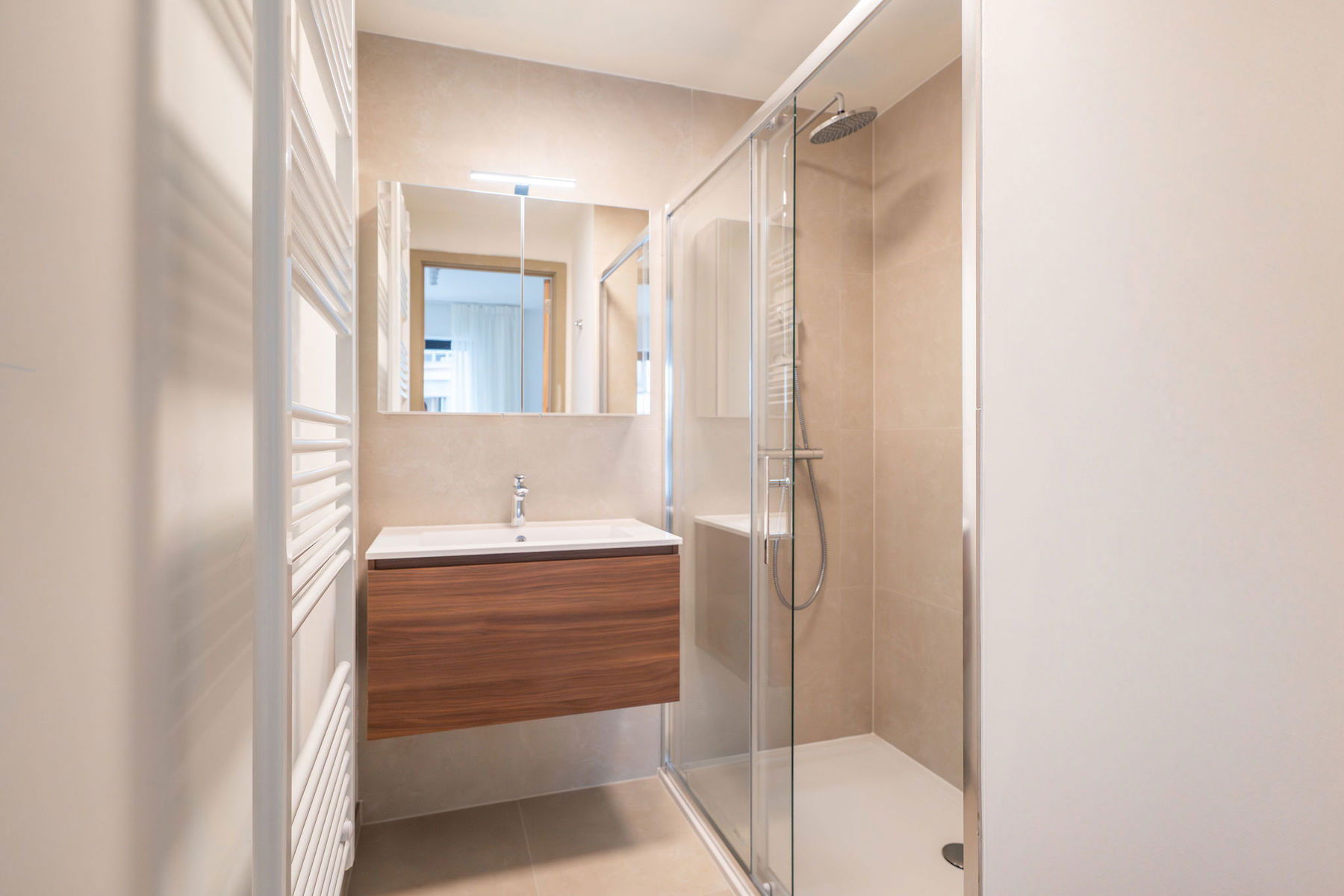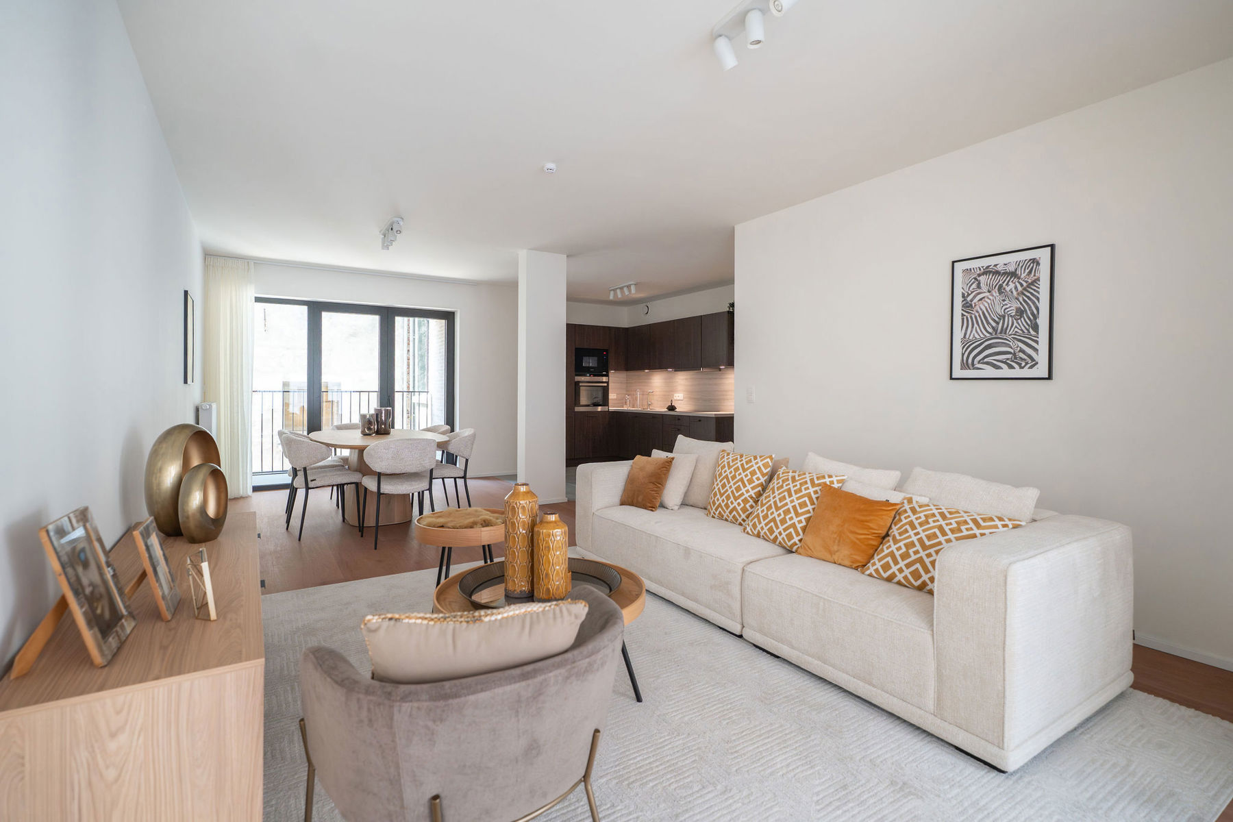 A11 (model appartement) - 130 m² - 3 terrassen of ongeveer 18 m² Prachtige 3 SLPK flat op de binnenplaats van het project met uitzicht op de tuin. Mooie hal met vestiaire en apart toilet, een leefruimte, met super ingerichte keuken genietend van een toegang op 2 terrassen. De 3 slaapkamers liggen aan de andere kant van de flat en hebben ook toegang tot een 3e terras. 1 douchekamer + WC grenzend aan de hoofdslaapkamer, 1 aparte badkamer, 1 technische ruimte/wasruimte maken het appartement compleet. (kelder en parking in extra). Wordt geschilderd (schone coating) en met verlichtingspakket geleverd. Het project is kostenbesparend en duurzaam in zijn constructie en in zijn thermische en akoestische isolatie met EPB A-. Verkoop onder BTW op de bouw (6 % onder voorwaarden ) en registratie op de grond (12,5 %). Het dagelijkse leven, in het hartje van de "voetgangers" vijfhoek, zal u uitnodigen tot een wandeling langs de oude dokken, op een steenworp afstand van Het Sint-Katelijneplein met zijn typische Brusselse sfeer, zijn dagelijkse markt, zijn vele winkels en restaurants. Bezienswaardigheden of culturele sites zoals het Nationaal Theater, de KVS, de Vlaamse Schouwburg of de bioscopen liggen ook op loopafstand. Contacteer ons snel voor alle details over deze nieuwe uitzonderlijke constructie.