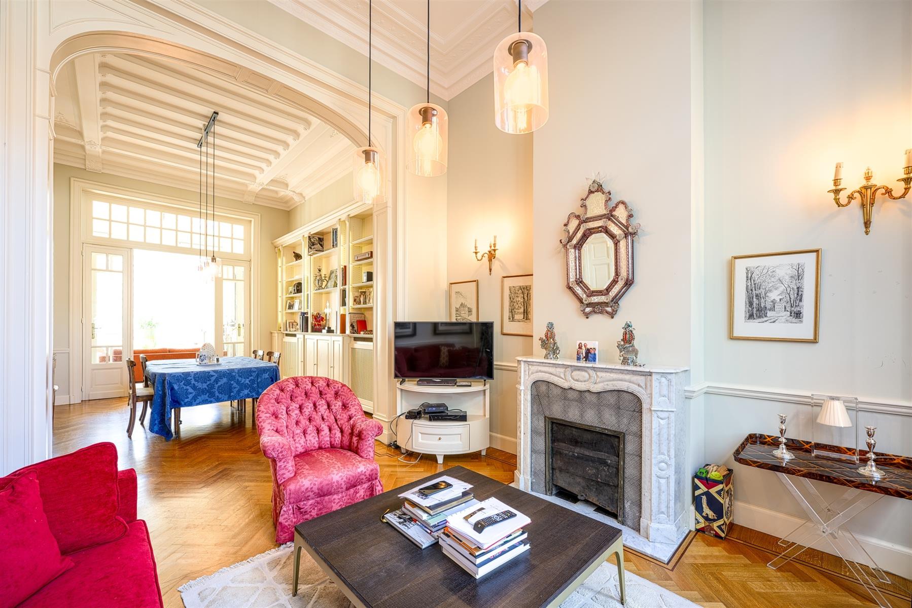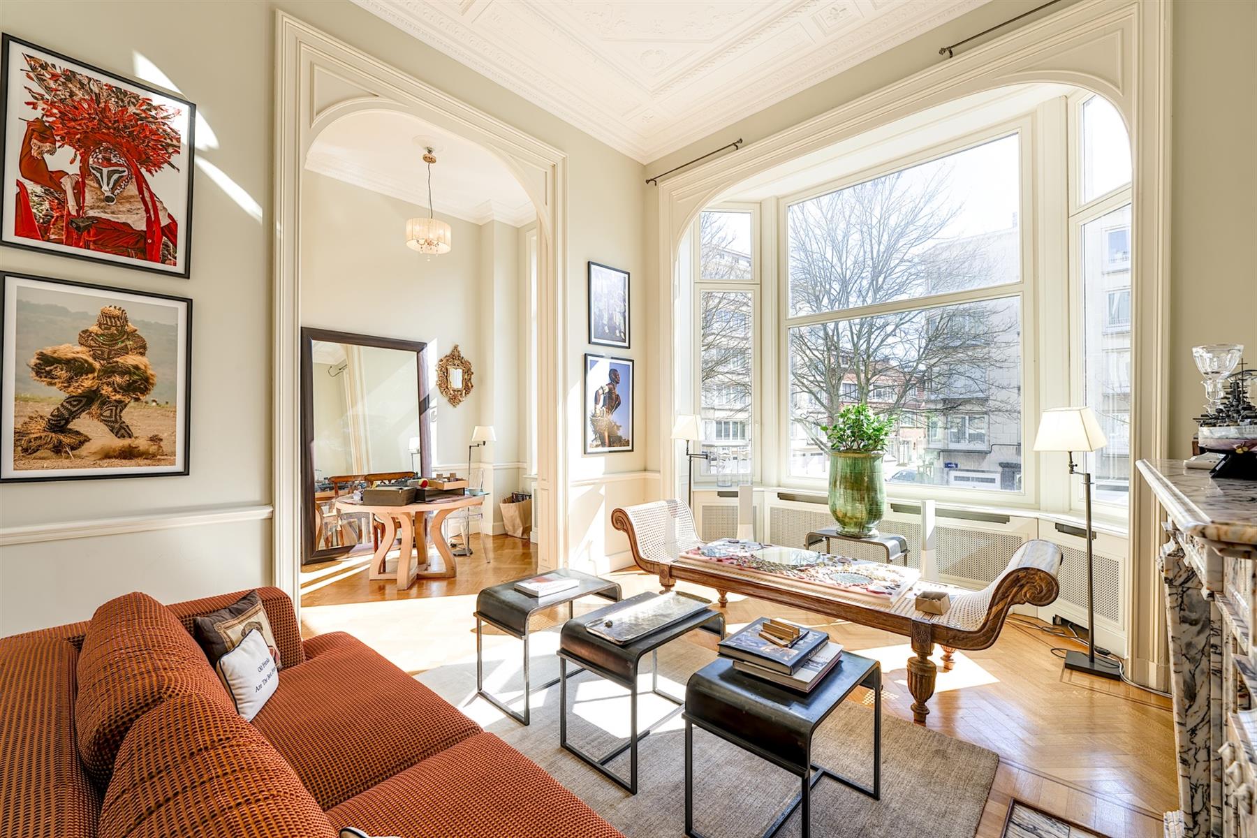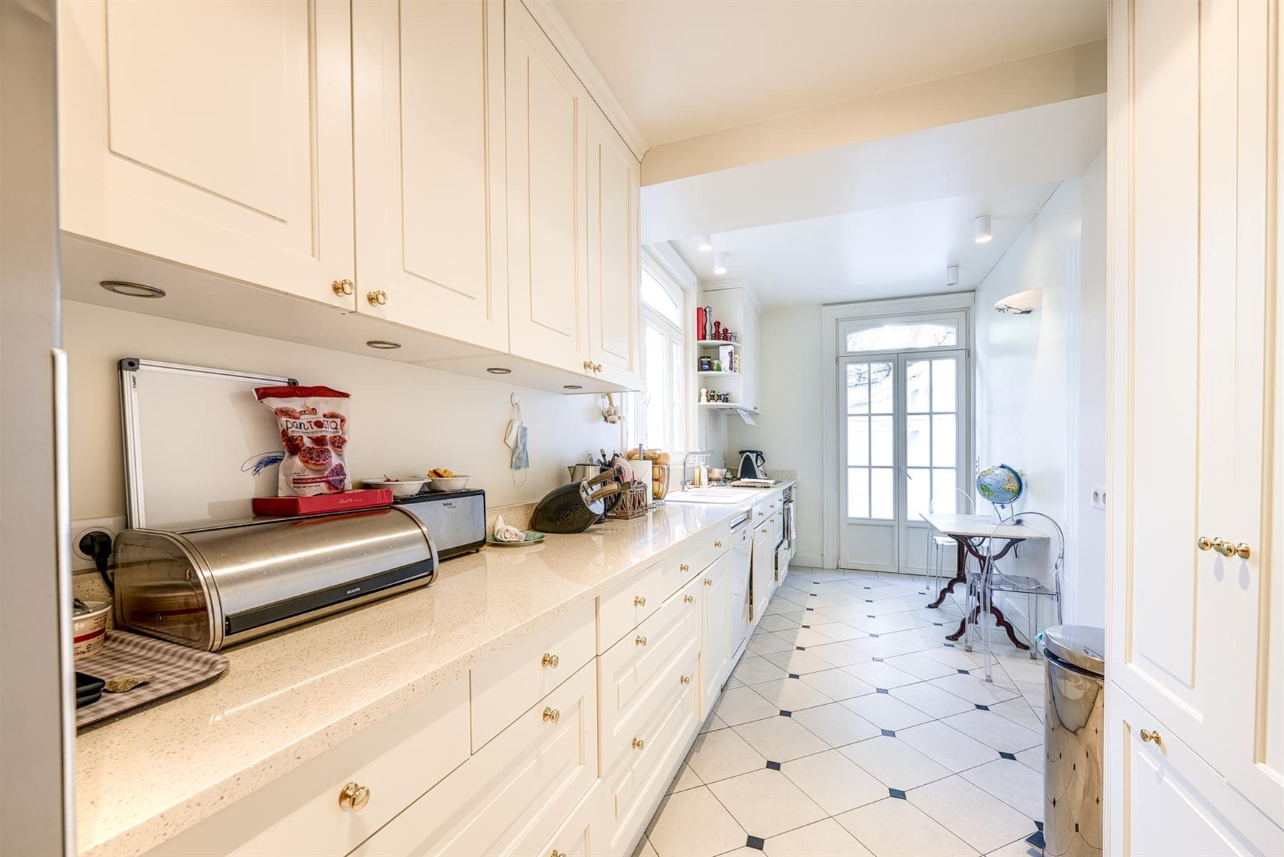 VICTOIRE-JUNOT proposes Close to the Place Guy d'Arezzo, magnificent mansion of +/-400m² dating from 1903. Very beautiful receptions, hyper equipped kitchen with terrace, 4 bedrooms including a master suite of +- 60 m² with its bathroom, 2 additional bathrooms, enfilade of 3 rooms on the first floor with shower room, garage, parking and cellars. High ceilings, parquet floor, elevator. Lots of character. No garden but outside space in stairs with terraces. Possibility of separate space for staff.