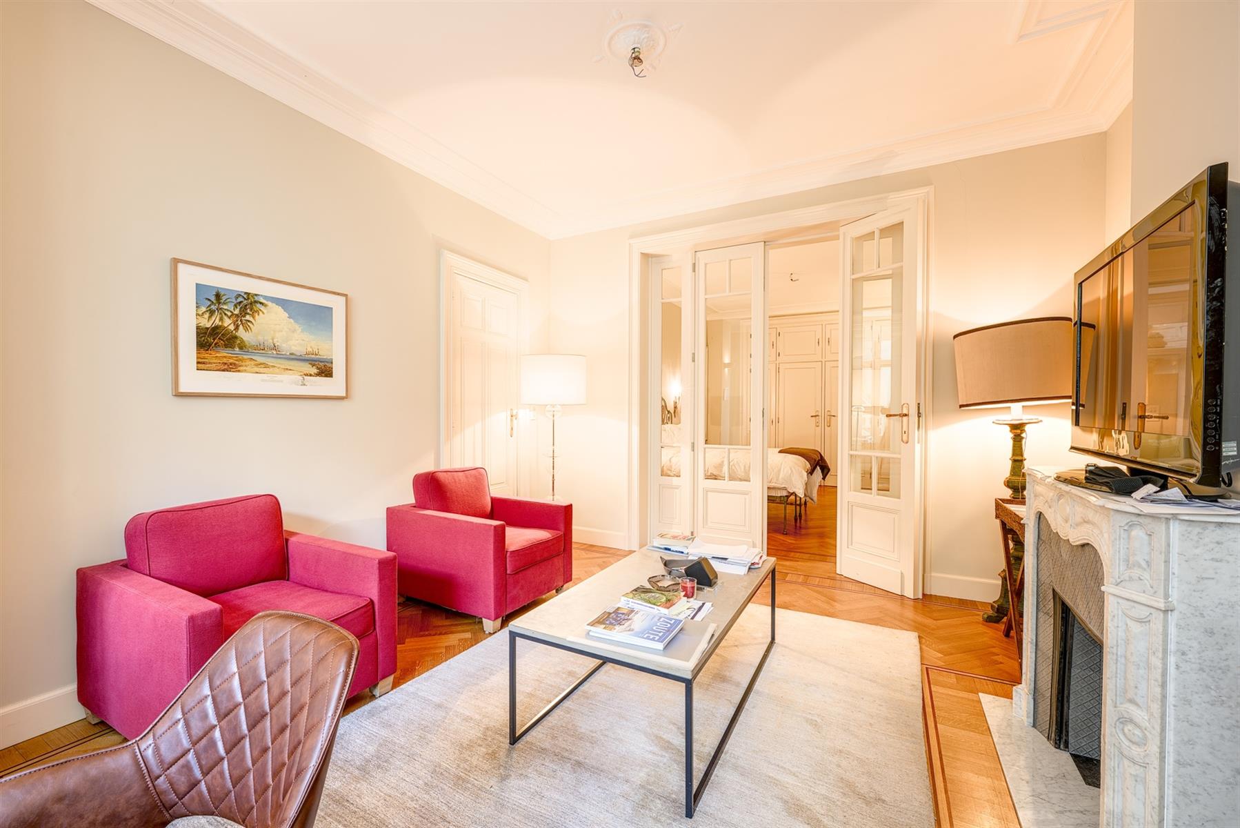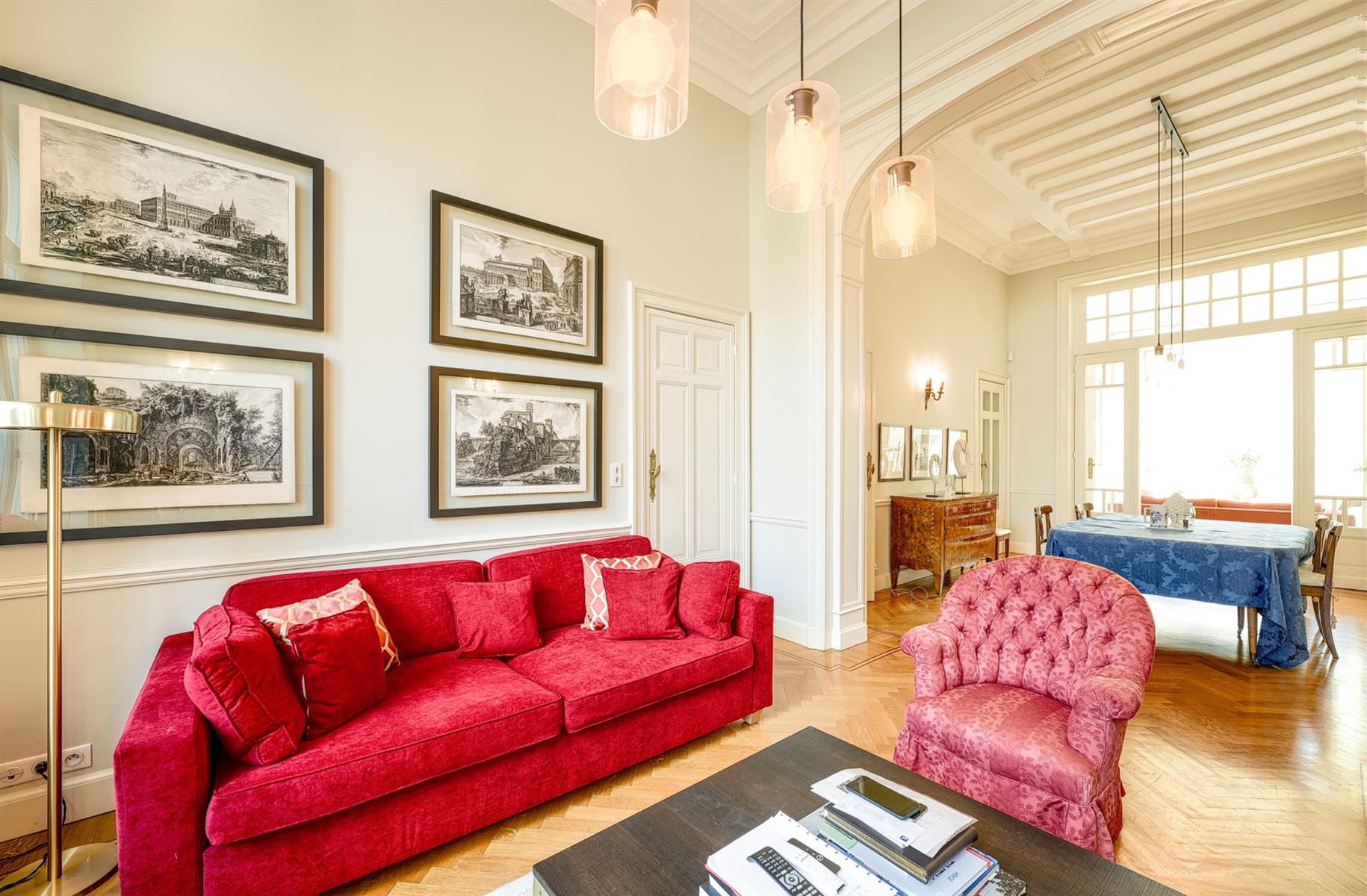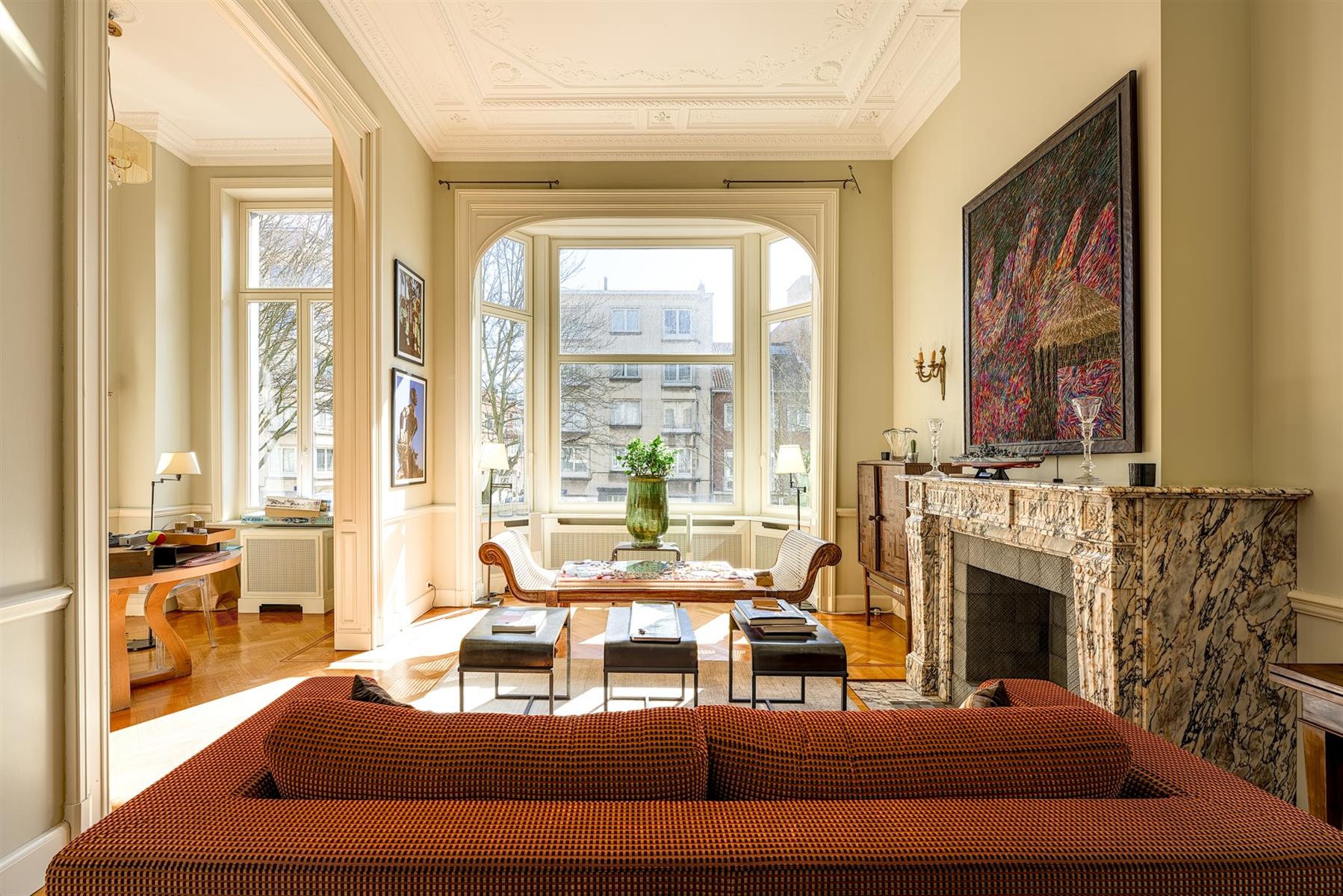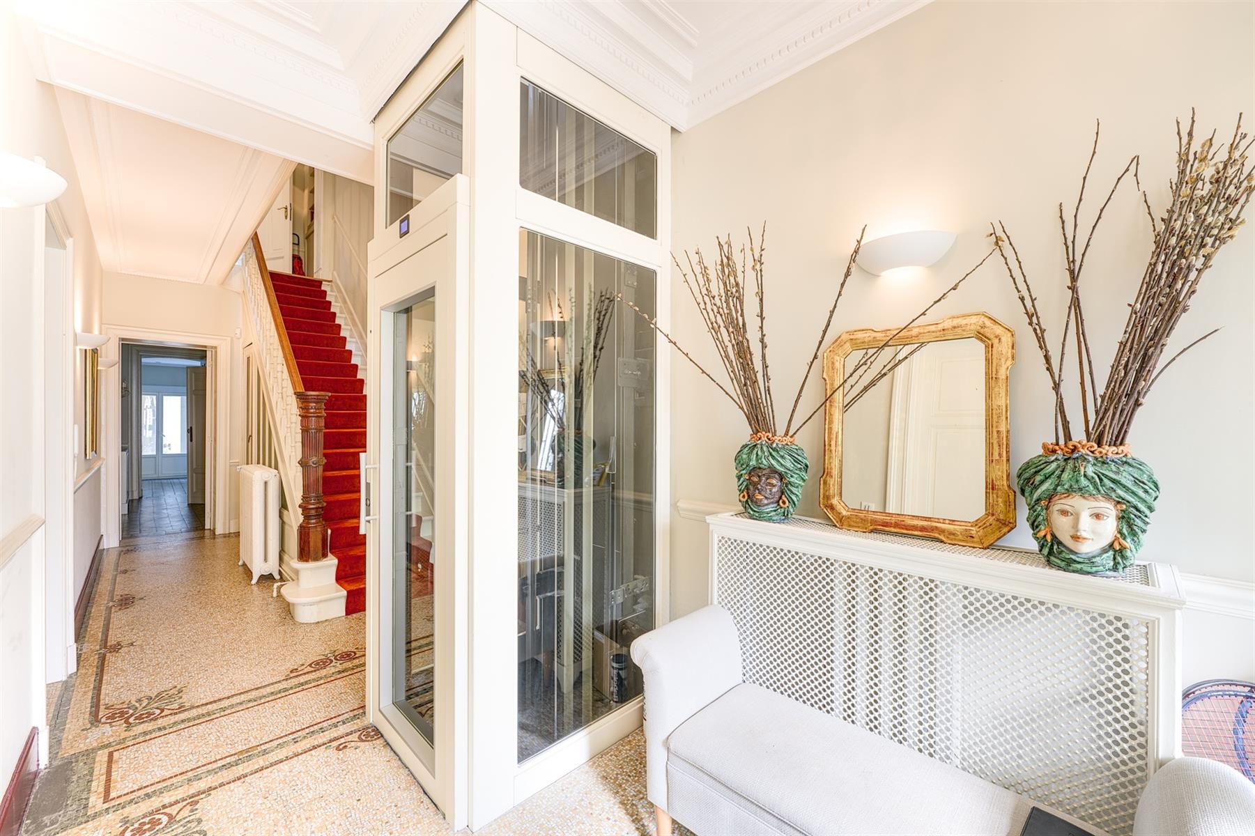 VICTOIRE-JUNOT proposes Close to the Place Guy d'Arezzo, magnificent mansion of +/-400m² dating from 1903. Very beautiful receptions, hyper equipped kitchen with terrace, 4 bedrooms including a master suite of +- 60 m² with its bathroom, 2 additional bathrooms, enfilade of 3 rooms on the first floor with shower room, garage, parking and cellars. High ceilings, parquet floor, elevator. Lots of character. No garden but outside space in stairs with terraces. Possibility of separate space for staff.