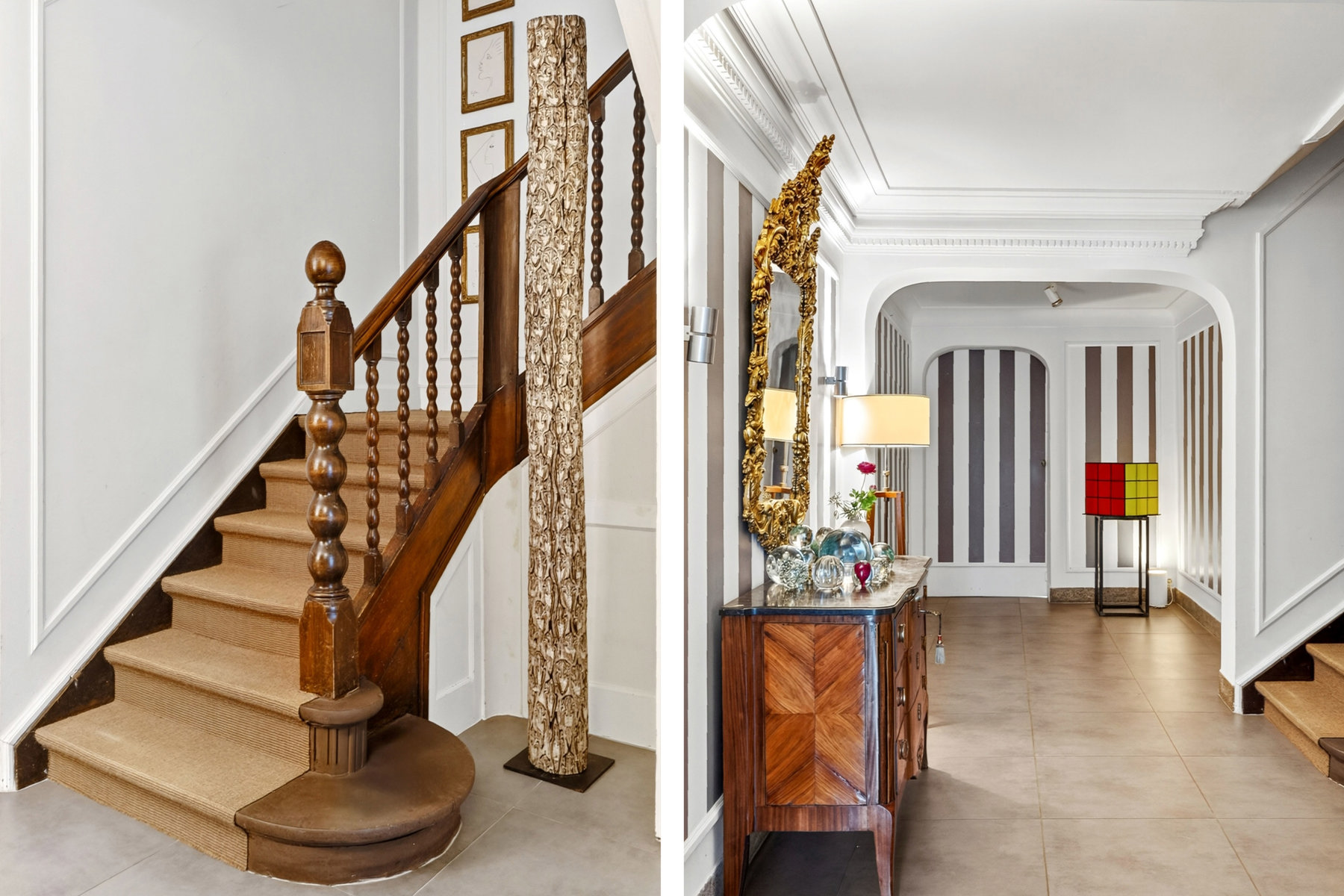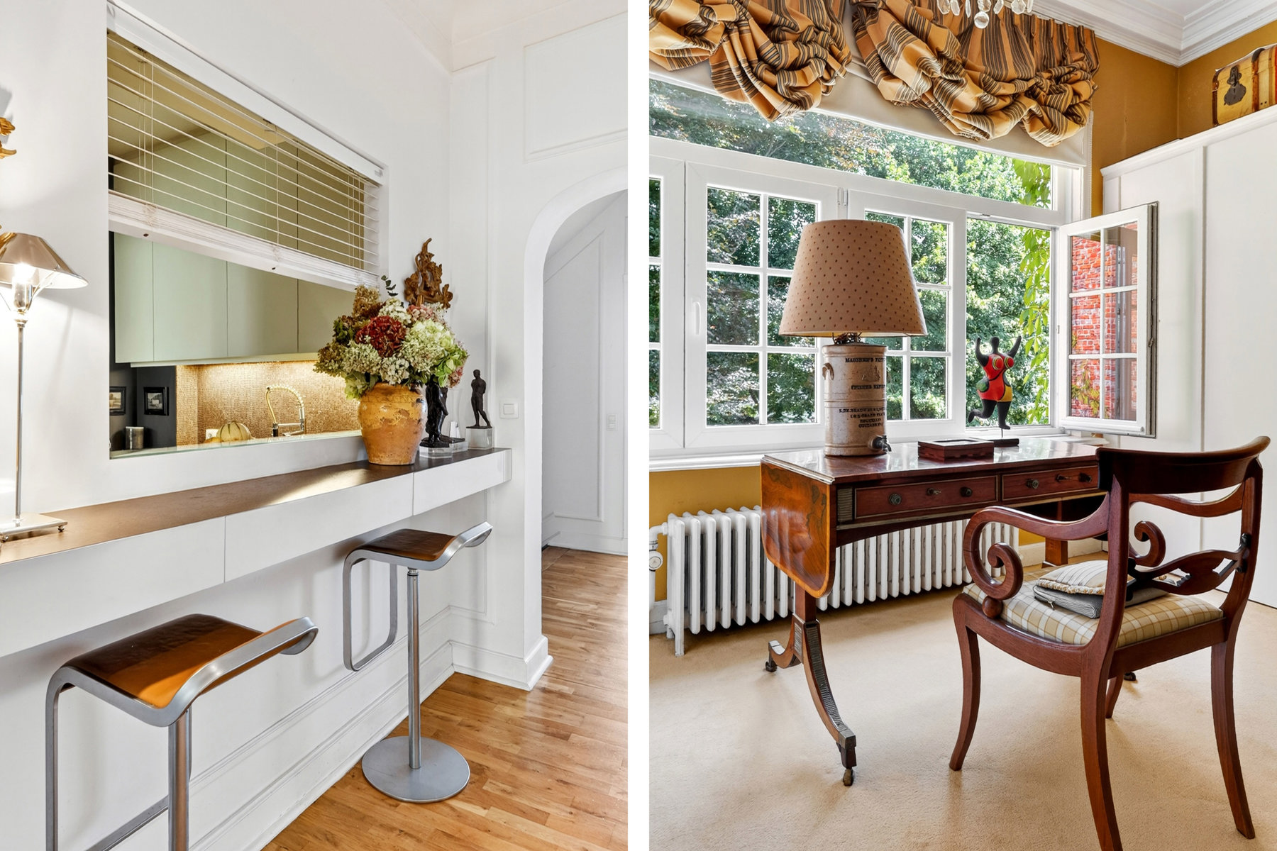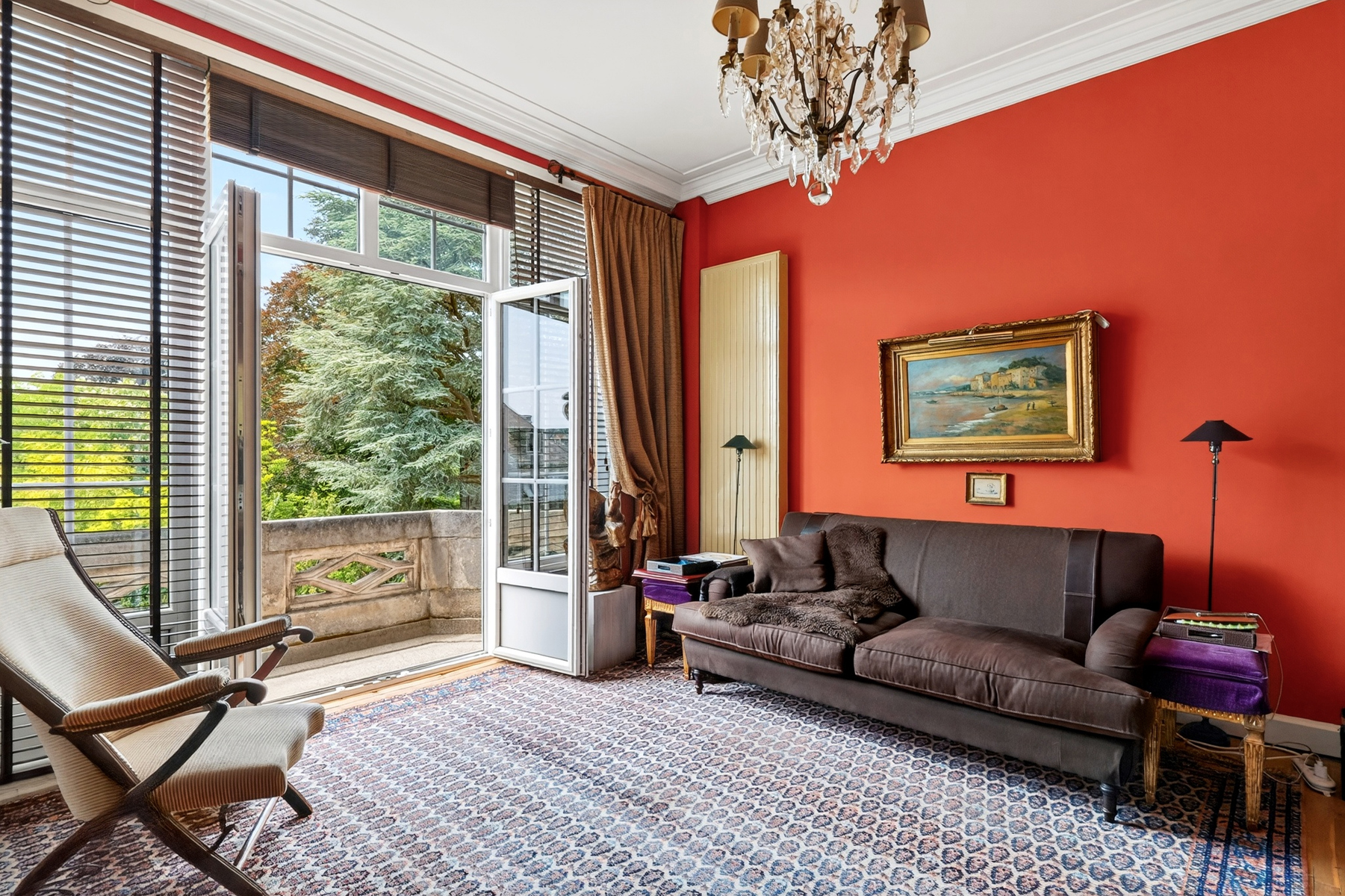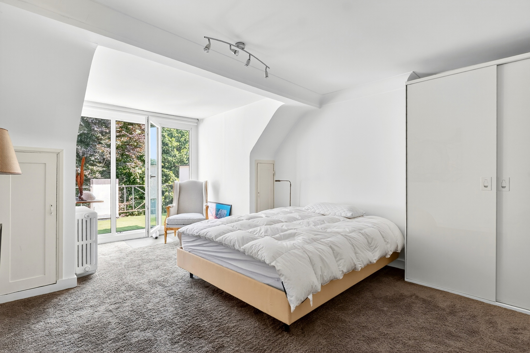 Victoire Junot presents this elegant 1930s house, which charms with its authentic character and period features. Set on a 2,44-acre plot, it enjoys a green environment while being ideally located close to shops, schools, and green spaces in this highly sought-after residential enclave. The ground floor features a welcoming entrance hall leading to a multipurpose room that can be used as an office or bedroom, with direct access to the garden. A laundry room and guest toilet complete this level. On the main floor, a central staircase leads to an elegant living room and a cozy dining room, separated by a modern, recently renovated semi-open kitchen. The terrace, accessible from this living space, offers direct access to the charming garden via an outdoor staircase. On the upper floor, a landing leads to two spacious, bright bedrooms and a comfortable bathroom. On the second floor, there are two additional bedrooms and a shower room. The third floor houses a fifth bedroom with a sink, complemented by two practical storage spaces. The basement offers several cellars with ample storage space. A garage and a parking space complete this property. With its undeniable charm and urban setting mixed with pleasant greenery, this house offers the perfect balance between comfort and quality of life in the heart of Uccle. PEB E – New boiler 2024 – Electricity not compliant.