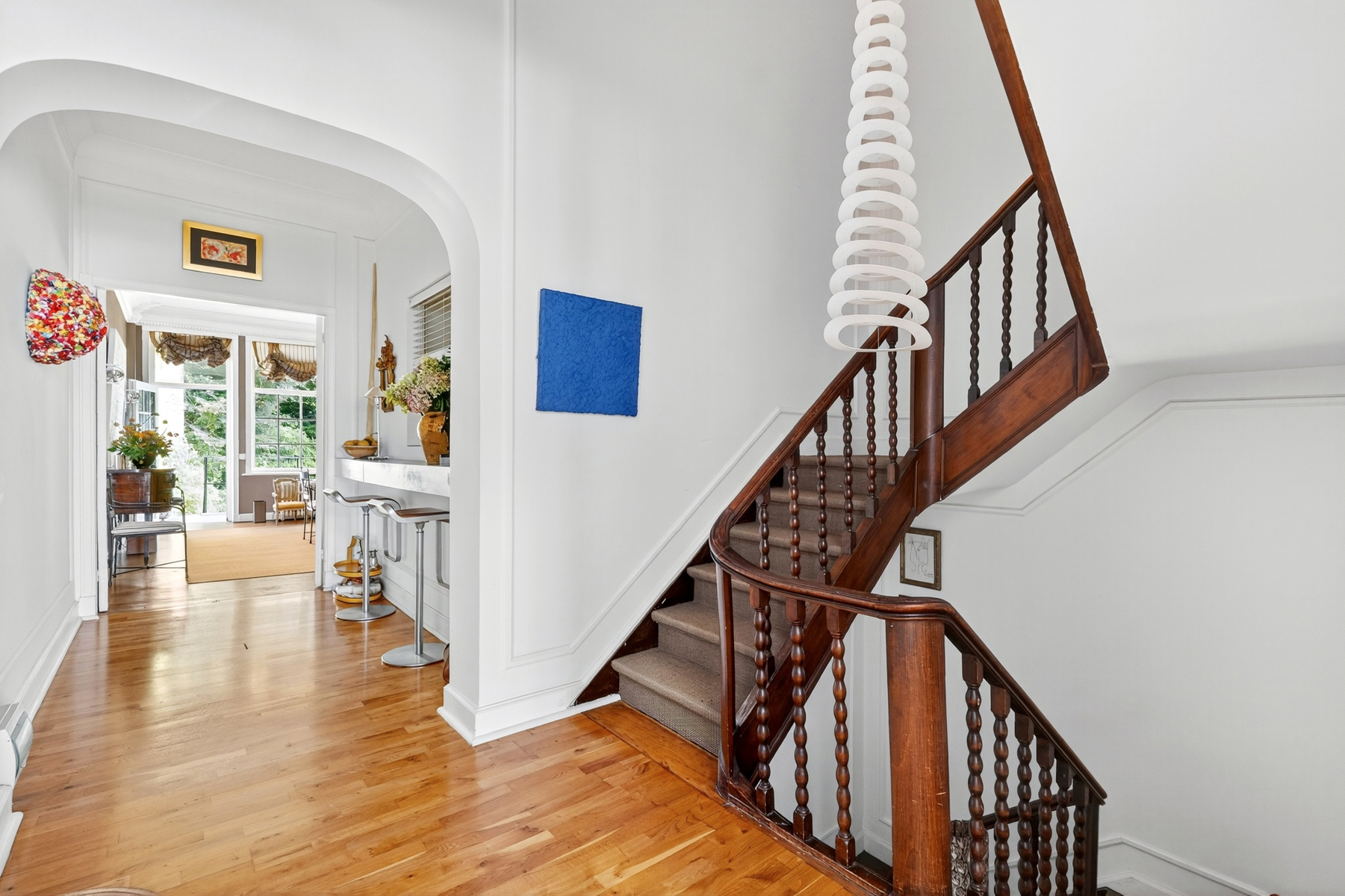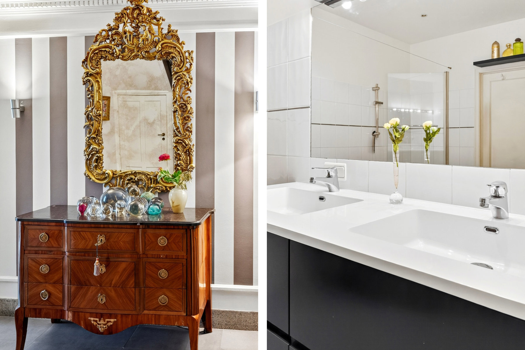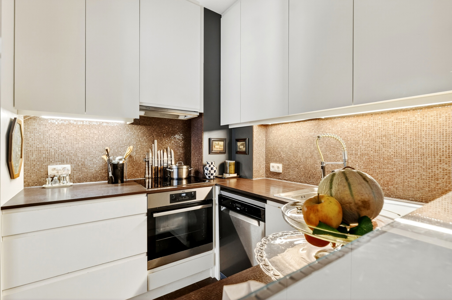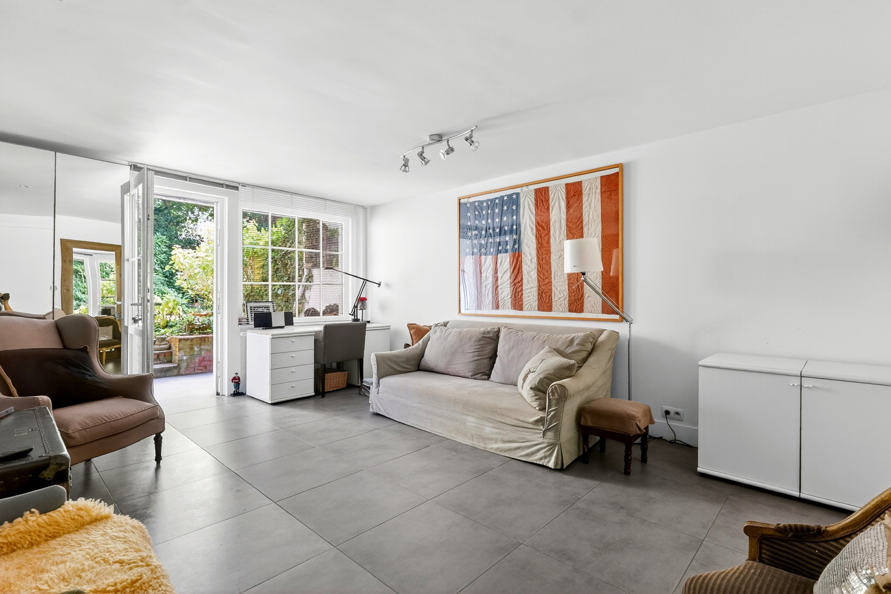 Victoire Junot presents this elegant 1930s house, which charms with its authentic character and period features. Set on a 2,44-acre plot, it enjoys a green environment while being ideally located close to shops, schools, and green spaces in this highly sought-after residential enclave. The ground floor features a welcoming entrance hall leading to a multipurpose room that can be used as an office or bedroom, with direct access to the garden. A laundry room and guest toilet complete this level. On the main floor, a central staircase leads to an elegant living room and a cozy dining room, separated by a modern, recently renovated semi-open kitchen. The terrace, accessible from this living space, offers direct access to the charming garden via an outdoor staircase. On the upper floor, a landing leads to two spacious, bright bedrooms and a comfortable bathroom. On the second floor, there are two additional bedrooms and a shower room. The third floor houses a fifth bedroom with a sink, complemented by two practical storage spaces. The basement offers several cellars with ample storage space. A garage and a parking space complete this property. With its undeniable charm and urban setting mixed with pleasant greenery, this house offers the perfect balance between comfort and quality of life in the heart of Uccle. PEB E – New boiler 2024 – Electricity not compliant.