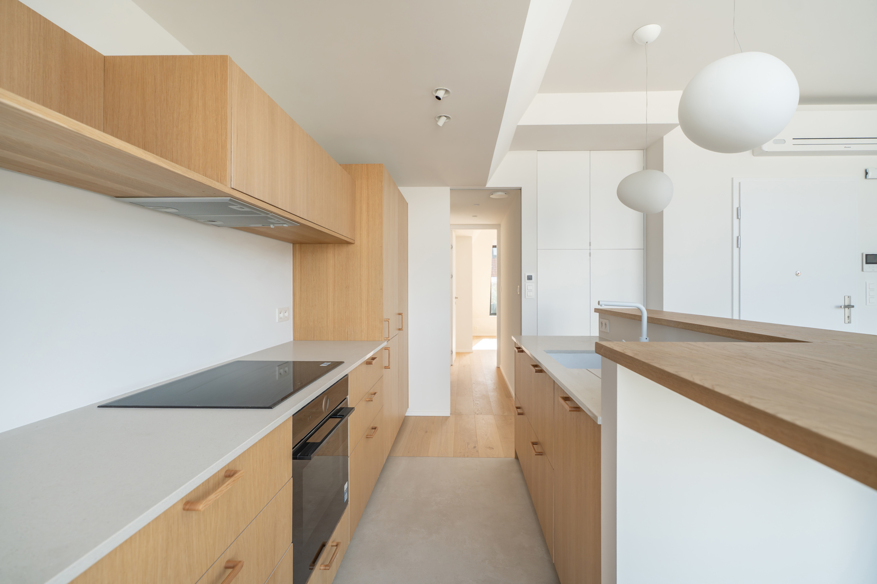 Enjoying an exceptional location in the prestigious Floride district, just steps from the Bois de la Cambre, Victoire Junot presents this stunning penthouse with a total living area of approximately 105 m², complemented by 10 m² of terraces, located on the top floor of a building that has undergone a high-quality renovation. Bathed in natural light, the apartment features a spacious living area with a custom open kitchen, opening onto a beautiful terrace with unobstructed views. It offers two bedrooms, each with its own en-suite bathroom, a guest toilet, and a laundry room. The property is equipped with air conditioning, a bicycle room with charging points, a cellar, a lift, and carefully selected high-quality materials throughout. A rare property combining modern comfort with a prime location. Subject to a 21% VAT regime.