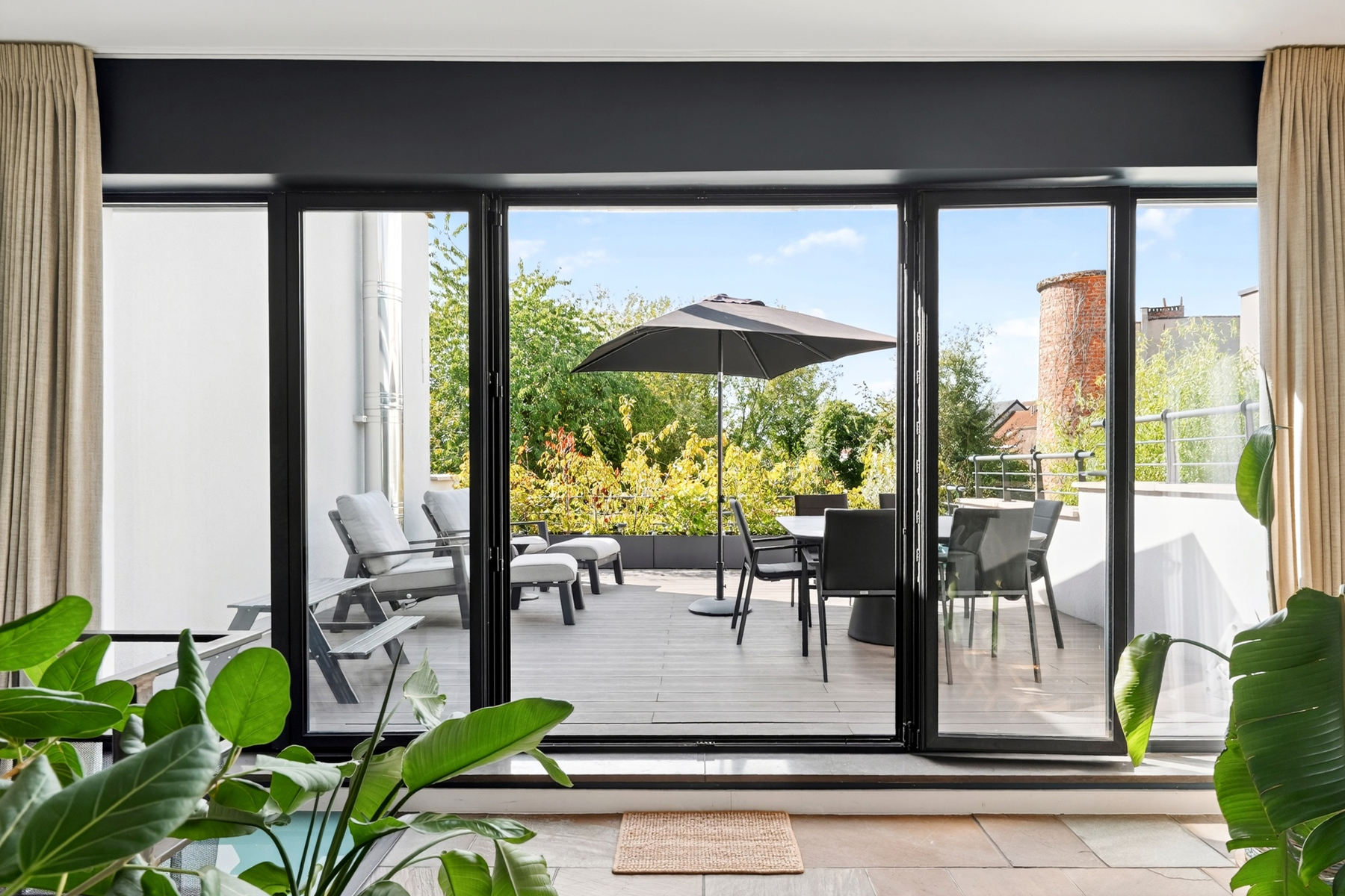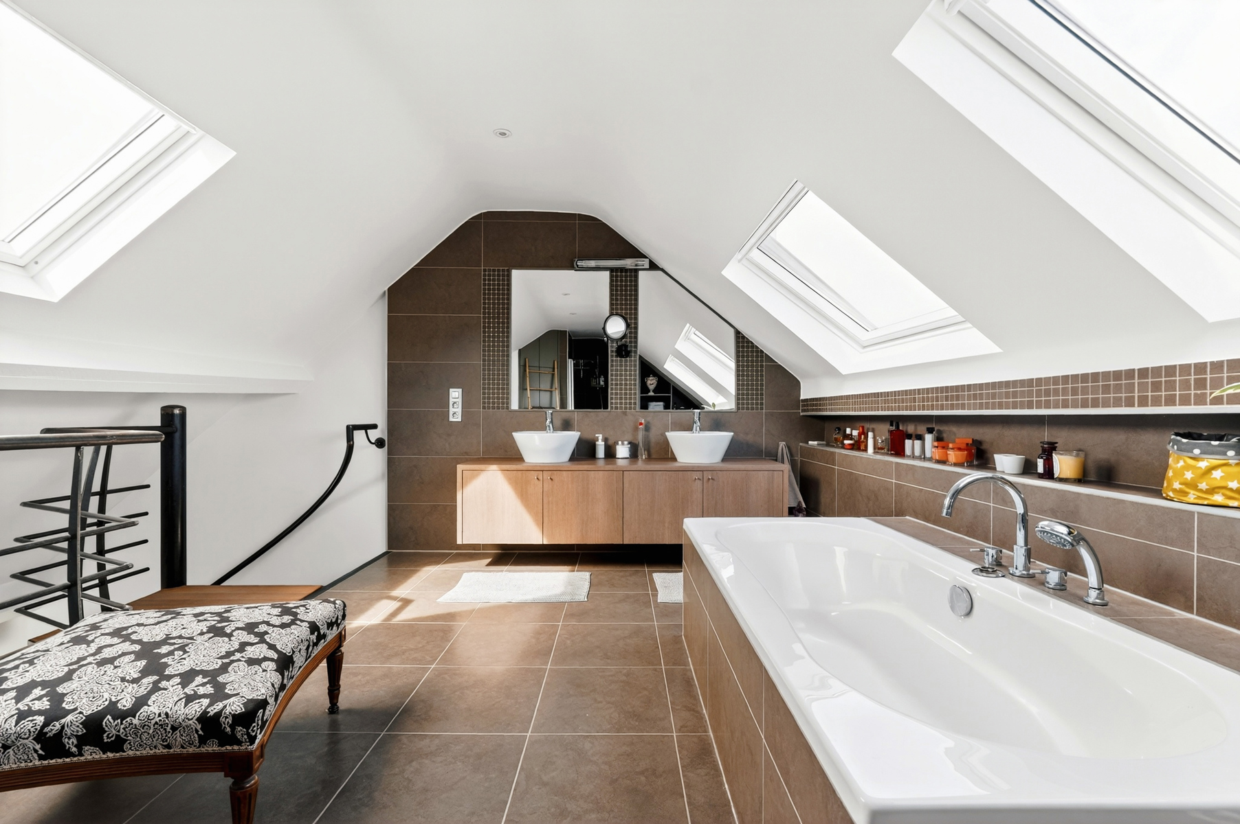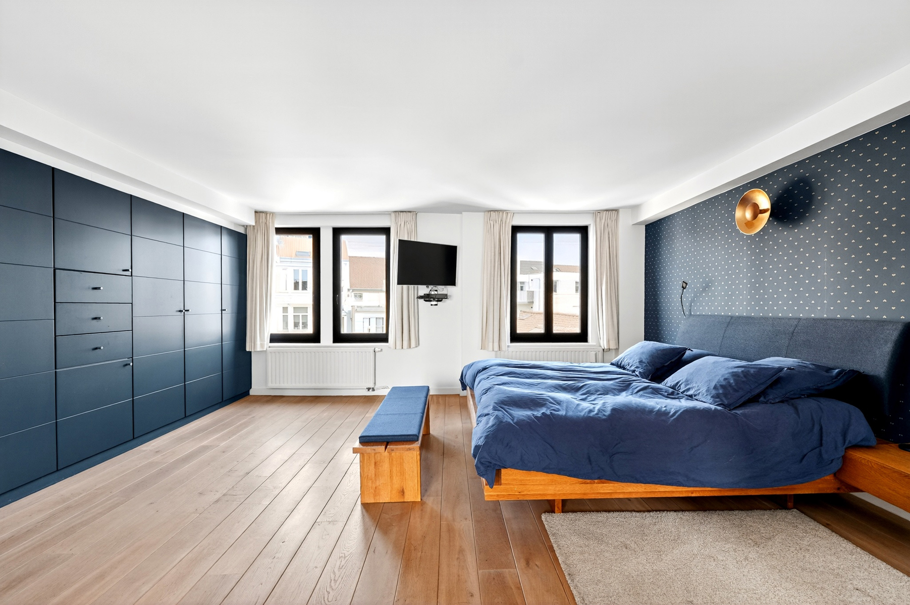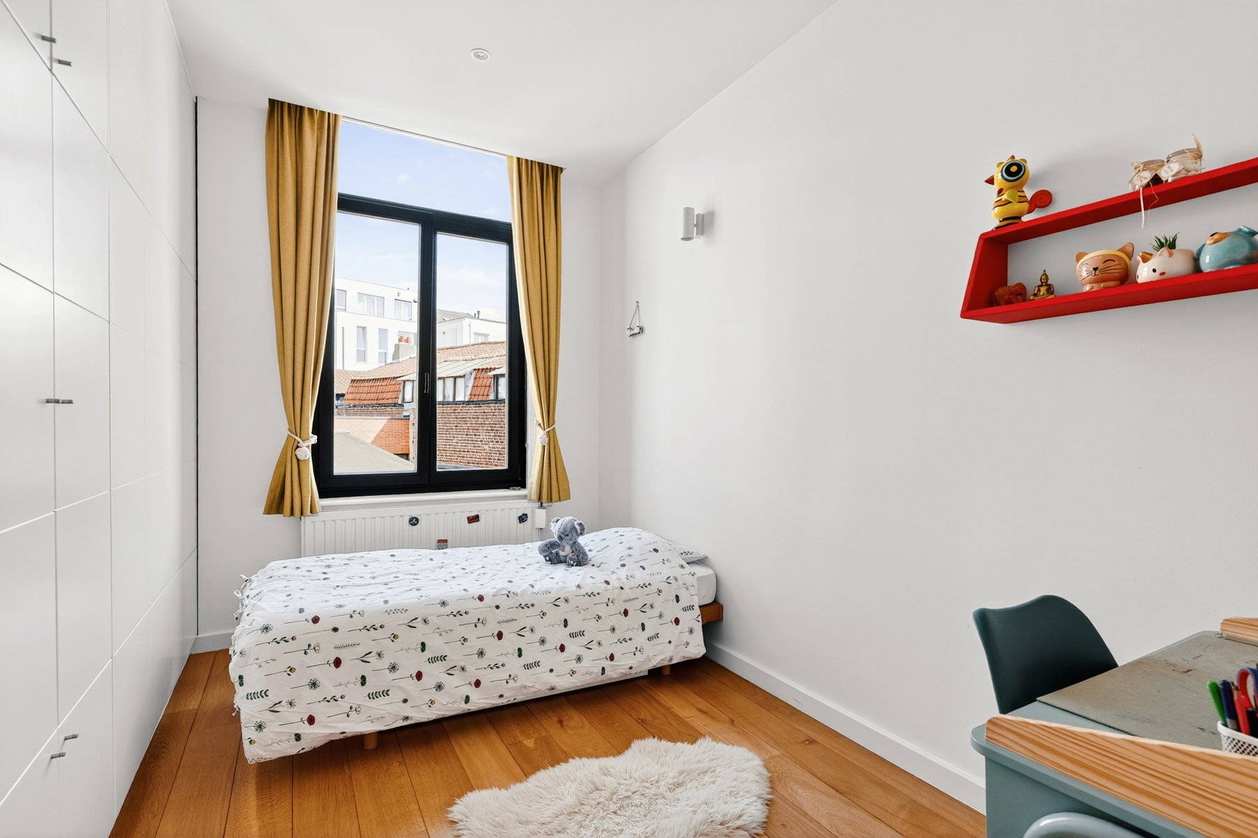 Victoire - Junot exclusively presents this charming 1920s house, fully renovated in a loft spirit, combining impressive volumes, abundant natural light, and absolute discretion. Behind a delightful carriage gate lies a true haven of peace: A spacious entrance hall with cloakroom welcomes you, followed by an office, a guest bedroom with adjoining shower room, a warm family room with optional sauna, and two inviting living rooms with open fireplace, bathed in sunlight from skylights, plus a guest toilet – all opening onto a terrace and a south-facing garden. On the first floor, you will find a superb open-plan kitchen with wood-burning stove, a bright dining room, and two terraces perfect for summer evenings. The second floor offers three beautiful bedrooms and a modern shower room. Finally, the top level is entirely dedicated to the master suite, with ample bespoke storage, a mezzanine bathroom, and a unique cocooning atmosphere. The property is completed by spacious cellars (wine cellar, laundry, storage) and two garage boxes (in option) located in the immediate vicinity. A rare property, hidden from view, designed for lovers of originality and discretion. EPC: E | Electricity compliant | Electric shutters. A house to discover – “To live happily, live hidden.” Located in the heart of Uccle, just steps away from the shops of Parvis St. Pierre, public transport, schools, and Wolvendael Park.