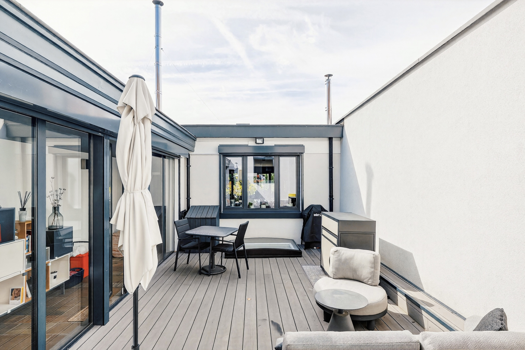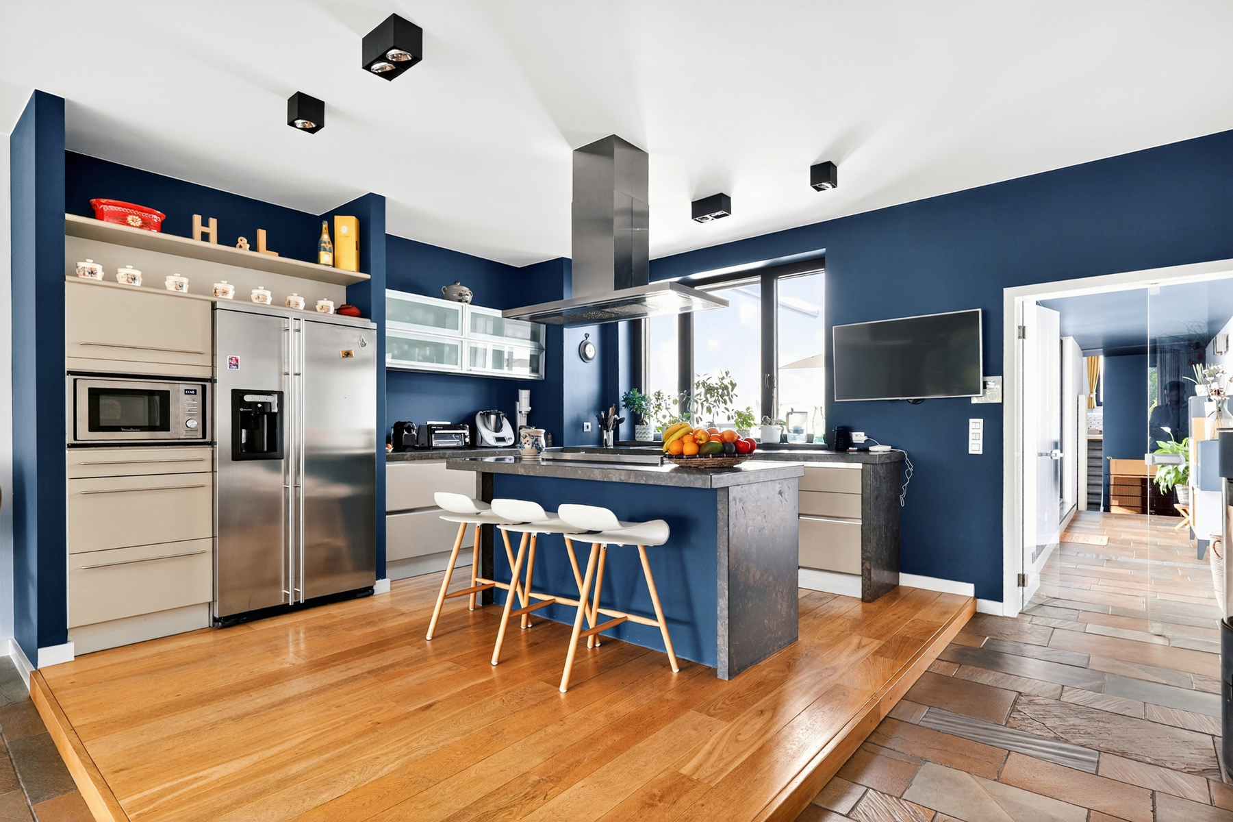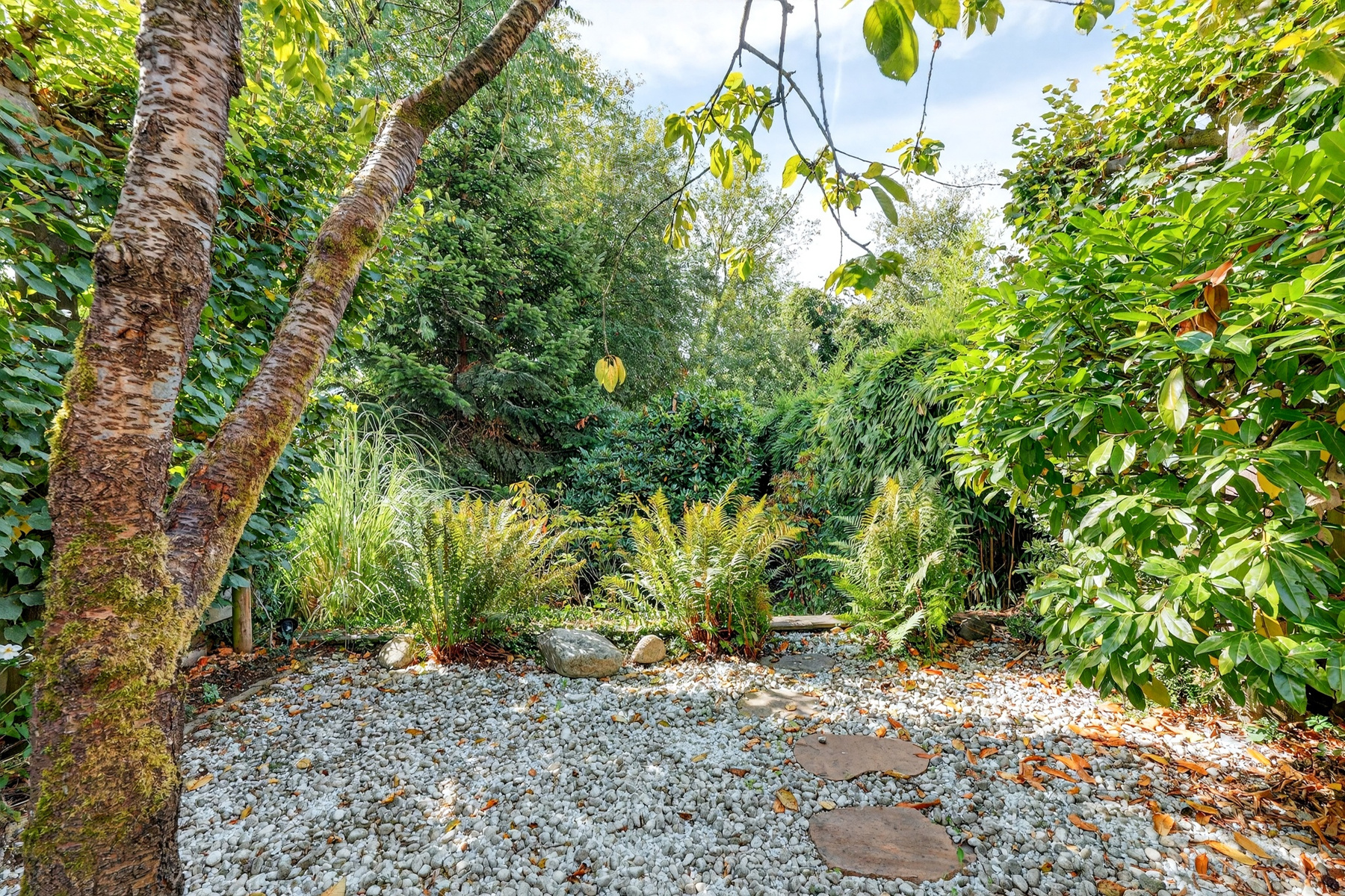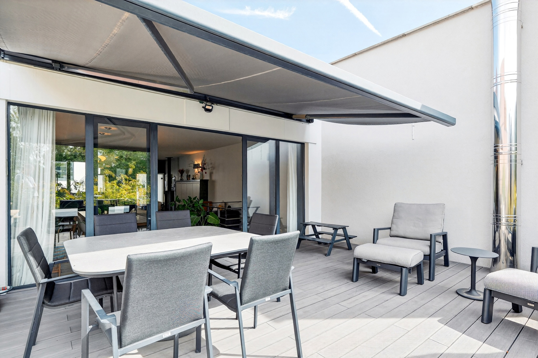 Victoire - Junot exclusively presents this charming 1920s house, fully renovated in a loft spirit, combining impressive volumes, abundant natural light, and absolute discretion. Behind a delightful carriage gate lies a true haven of peace: A spacious entrance hall with cloakroom welcomes you, followed by an office, a guest bedroom with adjoining shower room, a warm family room with optional sauna, and two inviting living rooms with open fireplace, bathed in sunlight from skylights, plus a guest toilet – all opening onto a terrace and a south-facing garden. On the first floor, you will find a superb open-plan kitchen with wood-burning stove, a bright dining room, and two terraces perfect for summer evenings. The second floor offers three beautiful bedrooms and a modern shower room. Finally, the top level is entirely dedicated to the master suite, with ample bespoke storage, a mezzanine bathroom, and a unique cocooning atmosphere. The property is completed by spacious cellars (wine cellar, laundry, storage) and two garage boxes (in option) located in the immediate vicinity. A rare property, hidden from view, designed for lovers of originality and discretion. EPC: E | Electricity compliant | Electric shutters. A house to discover – “To live happily, live hidden.” Located in the heart of Uccle, just steps away from the shops of Parvis St. Pierre, public transport, schools, and Wolvendael Park.