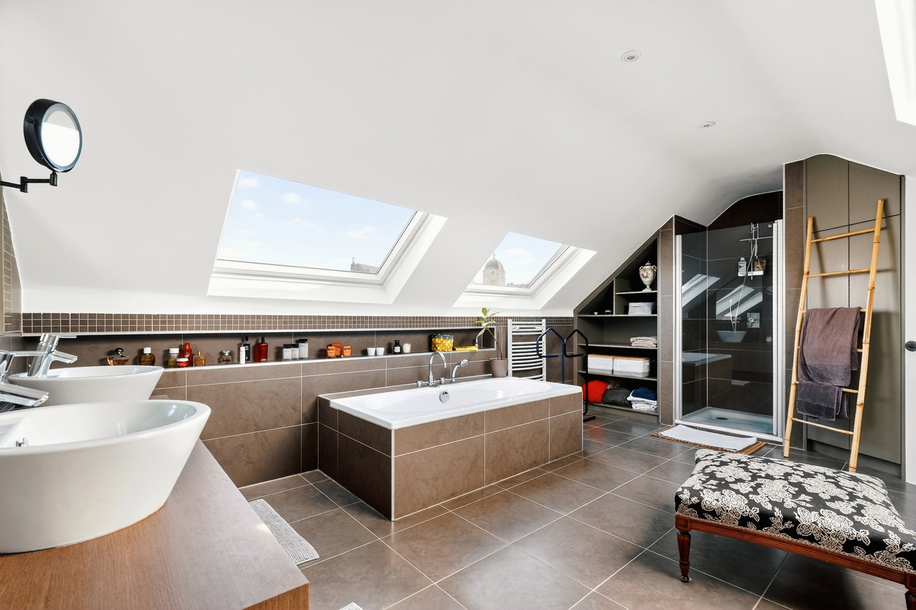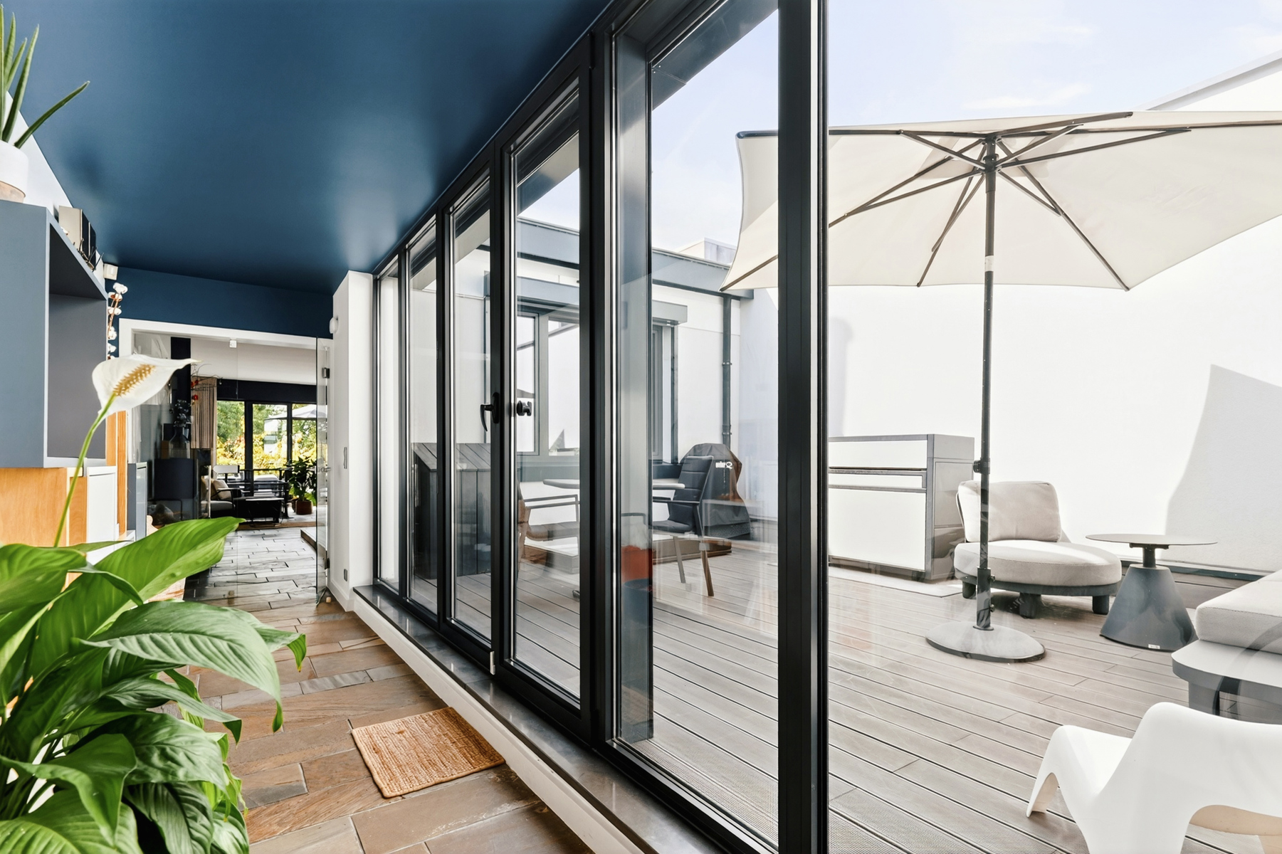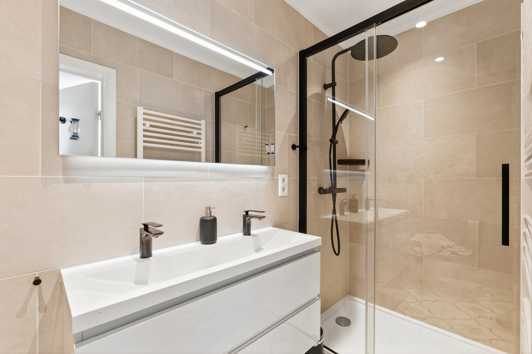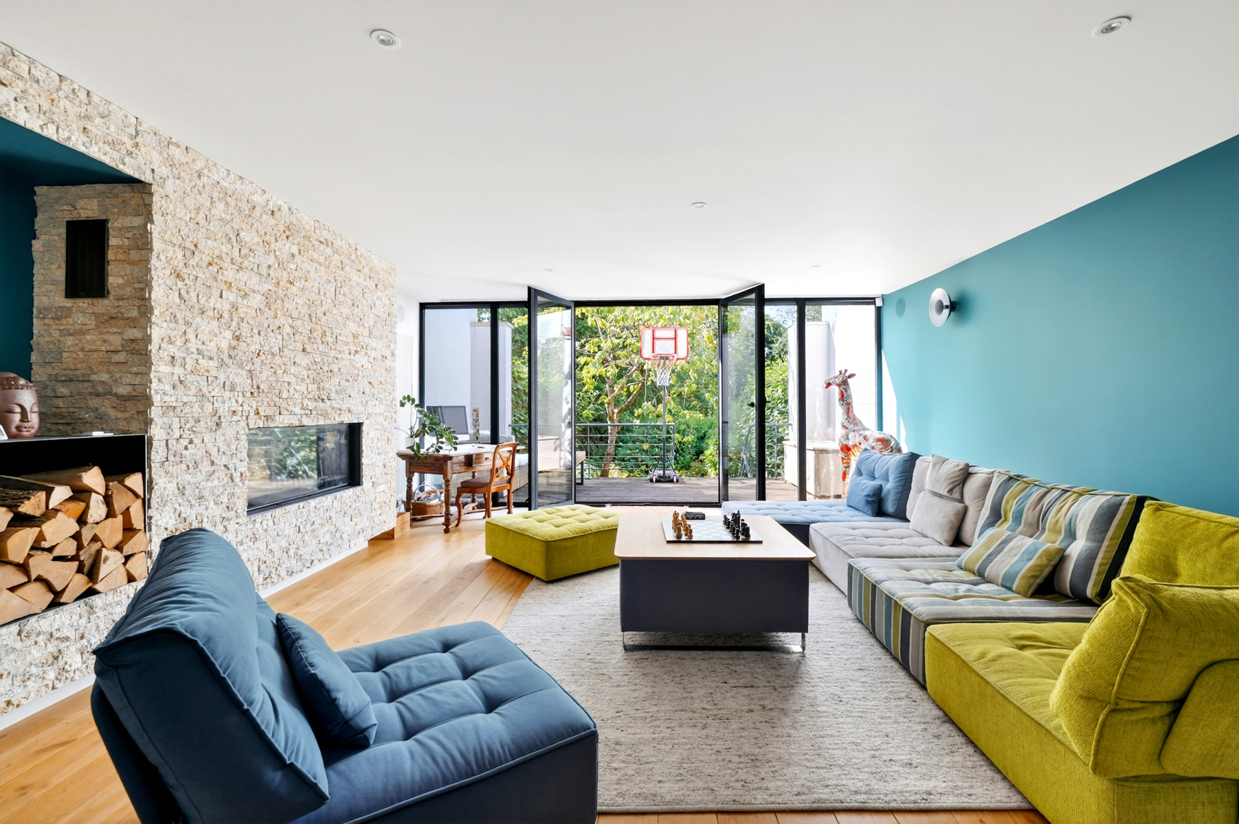 Victoire - Junot exclusively presents this charming 1920s house, fully renovated in a loft spirit, combining impressive volumes, abundant natural light, and absolute discretion. Behind a delightful carriage gate lies a true haven of peace: A spacious entrance hall with cloakroom welcomes you, followed by an office, a guest bedroom with adjoining shower room, a warm family room with optional sauna, and two inviting living rooms with open fireplace, bathed in sunlight from skylights, plus a guest toilet – all opening onto a terrace and a south-facing garden. On the first floor, you will find a superb open-plan kitchen with wood-burning stove, a bright dining room, and two terraces perfect for summer evenings. The second floor offers three beautiful bedrooms and a modern shower room. Finally, the top level is entirely dedicated to the master suite, with ample bespoke storage, a mezzanine bathroom, and a unique cocooning atmosphere. The property is completed by spacious cellars (wine cellar, laundry, storage) and two garage boxes (in option) located in the immediate vicinity. A rare property, hidden from view, designed for lovers of originality and discretion. EPC: E | Electricity compliant | Electric shutters. A house to discover – “To live happily, live hidden.” Located in the heart of Uccle, just steps away from the shops of Parvis St. Pierre, public transport, schools, and Wolvendael Park.